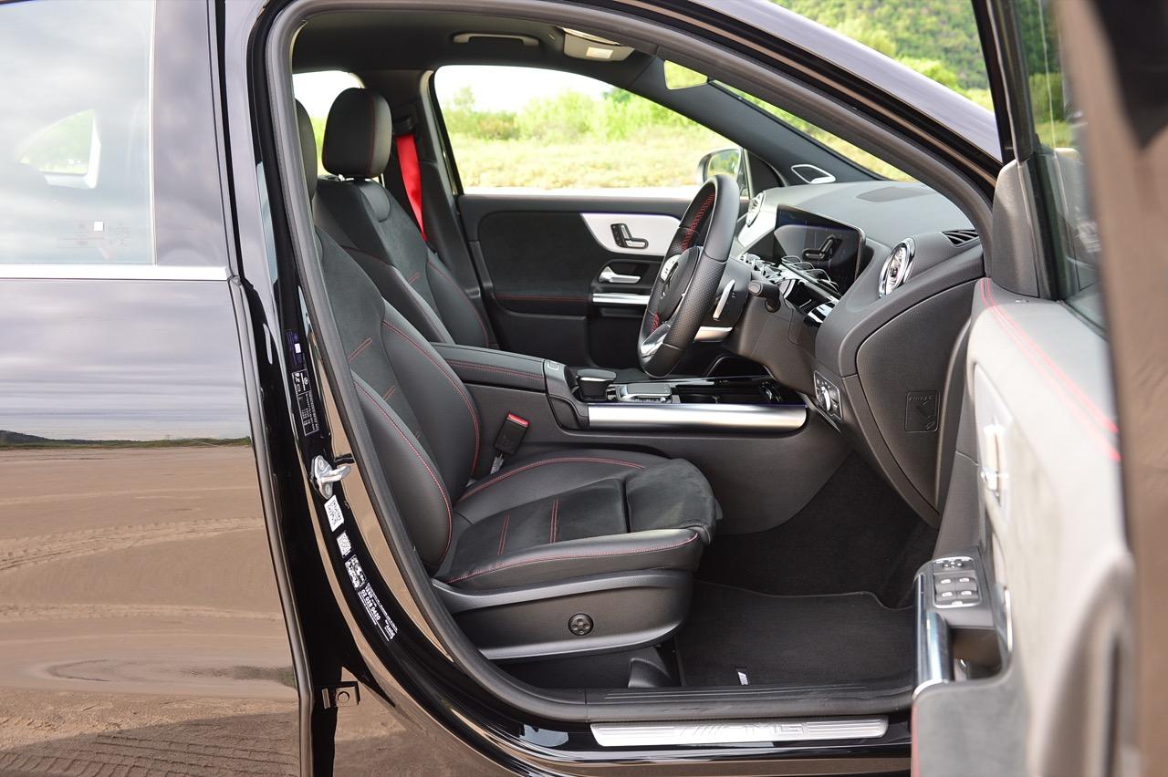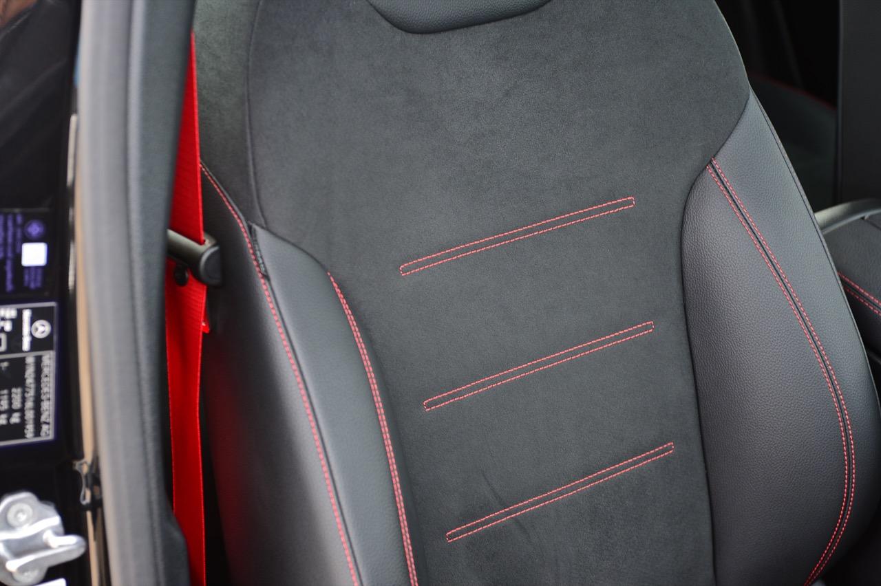 จุดที่ทำได้ดีก็คือตำแหน่งเบาะนั่ง กับรูปแบบของเบาะ AMG Sport seat ออกแบบให้เข้ากับสรีระผู้ขับขี่เพื่อการขับทั้งคลานในเมือง หรือหวดเต็มข้อในสนามแข่ง เบาะปรับไฟฟ้า พร้อมหน่วยความจำบันทึกตำแหน่งท่านั่ง 3 ตำแหน่ง เข็มขัดนิรภัยสีแดงจาก AMG เบาะหลังแบบ 3 ที่นั่งแต่เอาเข้าจริงๆ นั่งสองคนจะสบายและไม่อึดอัดมากกว่าจะนั่งกันไปถึงสามคน