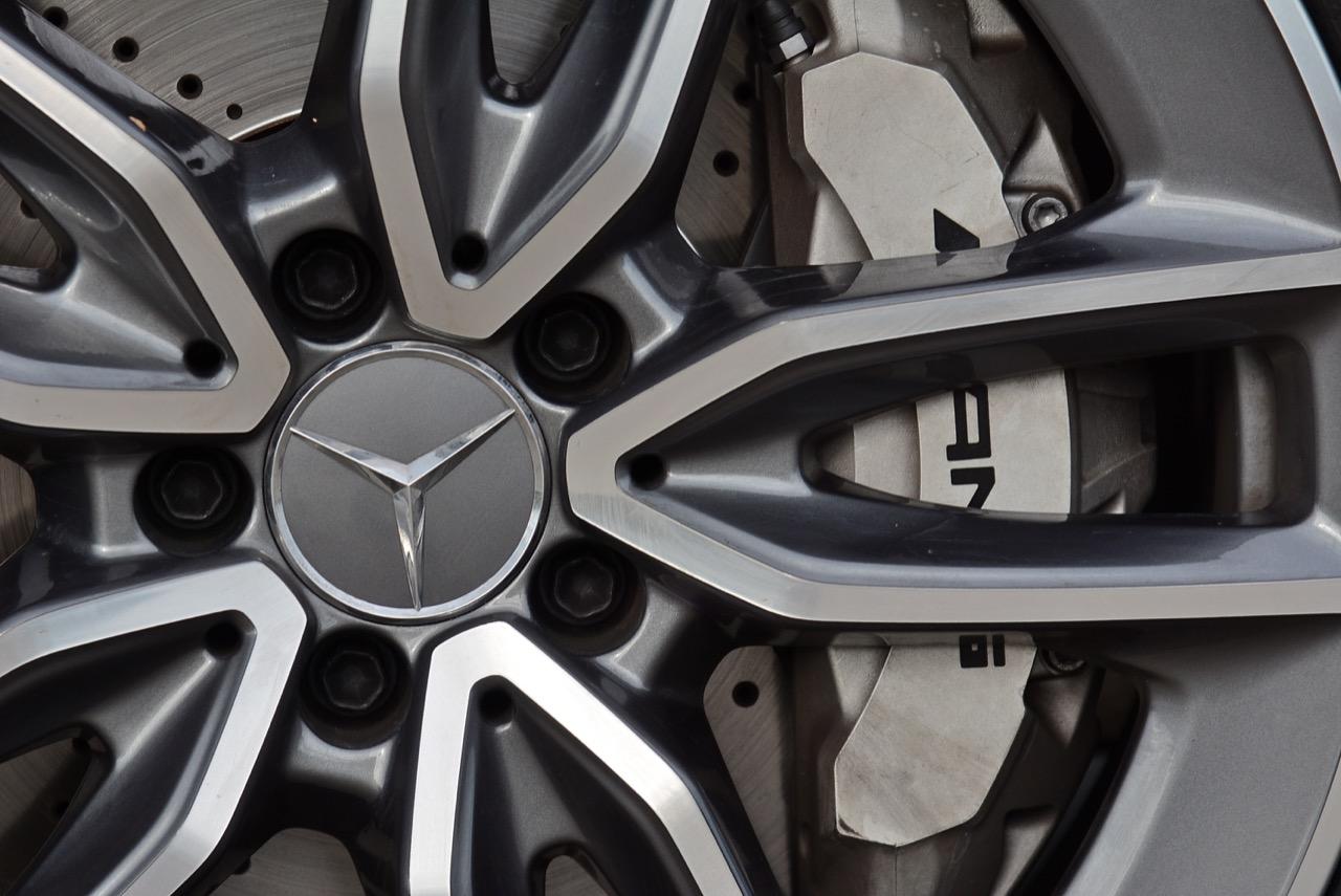 คาลิปเปอร์เบรกตกแต่งด้วยสีเทาพร้อมสัญลักษณ์ AMG