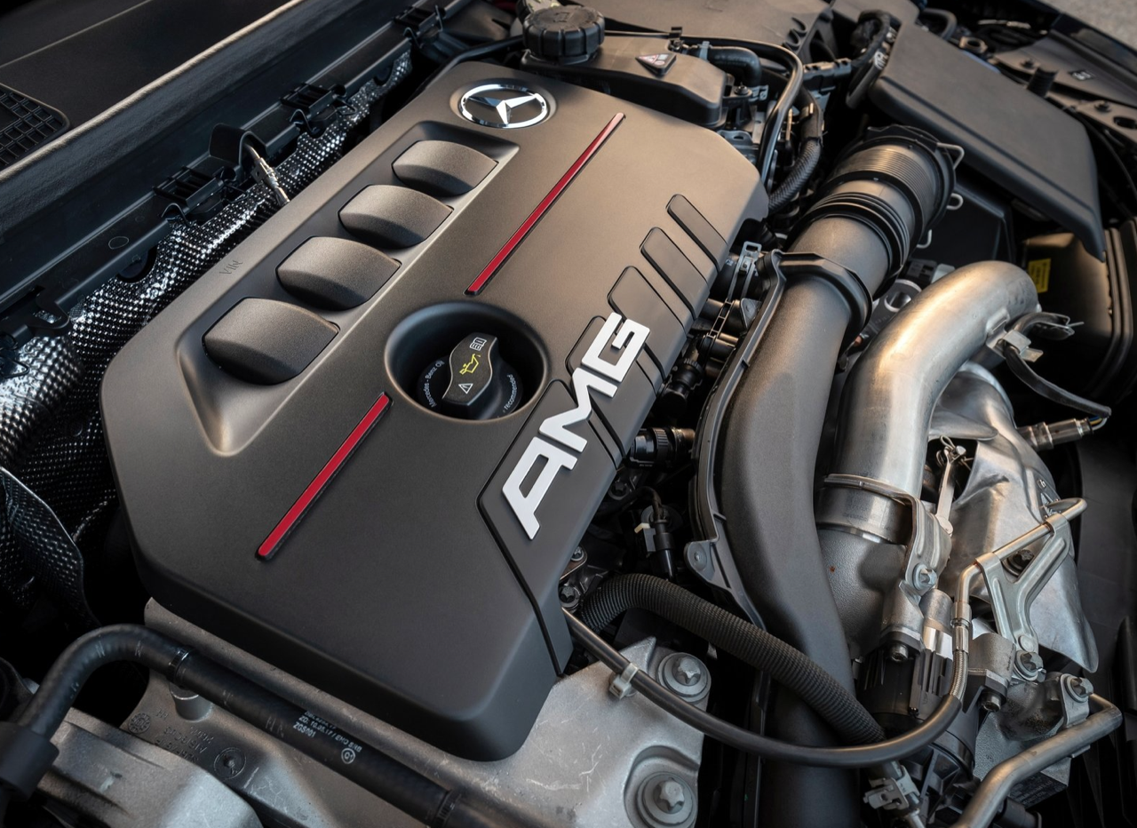 เครื่องยนต์เบนซินแถวเรียง 4 สูบ เทอร์โบชาร์จแปรผัน twin-scroll turbocharger รหัสเครื่องยนต์ M260 ขนาด 2.0 ลิตร พร้อมระบบ CAMTRONIC variable valve control จ่ายเชื้อเพลิงด้วยหัวฉีดแรงดันสูง piezo injectors multi-spark ignition ผลิตกำลังได้ 225 กิโลวัตต์ หรือ 306 แรงม้า กับแรงบิด 400 นิวตันเมตร แจกจ่ายแรงฉุดลากให้กับล้อทั้งสี่ผ่านระบบขับเคลื่อน 4 ล้อ 4MATIC ที่เชื่อมต่อกับเกียร์ทวินคลัตช์ 8 สปีด AMG SPEEDSHIFT DCT 8 Speed dual-clutch transmission โหมดการขับเคลื่อนปรับผ่านปุ่ม DYNAMIC SELECT พร้อมโปรแกรมใหม่ 'Slippery' เริ่มจาก Comfort, Sport, Sport + และ Individual ที่ผู้ขับสามารถปรับตั้งการทำงานและการตอบสนองแบบแยกย่อยของเครื่องยนต์ เกียร์ และพวงมาลัยไฟฟ้า ตัวเลขสมรรถนะ Mercedes-AMG GLA35 4MATIC เร่งจากหยุดนิ่งถึง 100 กม./ชม. ใน 5 วินาที ความเร็วสูงสุดถูกจำกัดด้วยระบบอิเล็กทรอนิกส์เอาไว้ที่ 250 กม./ชม. ไม่มีสตรัทบาร์ค้ำยันเหมือนใน AMG CLA 35