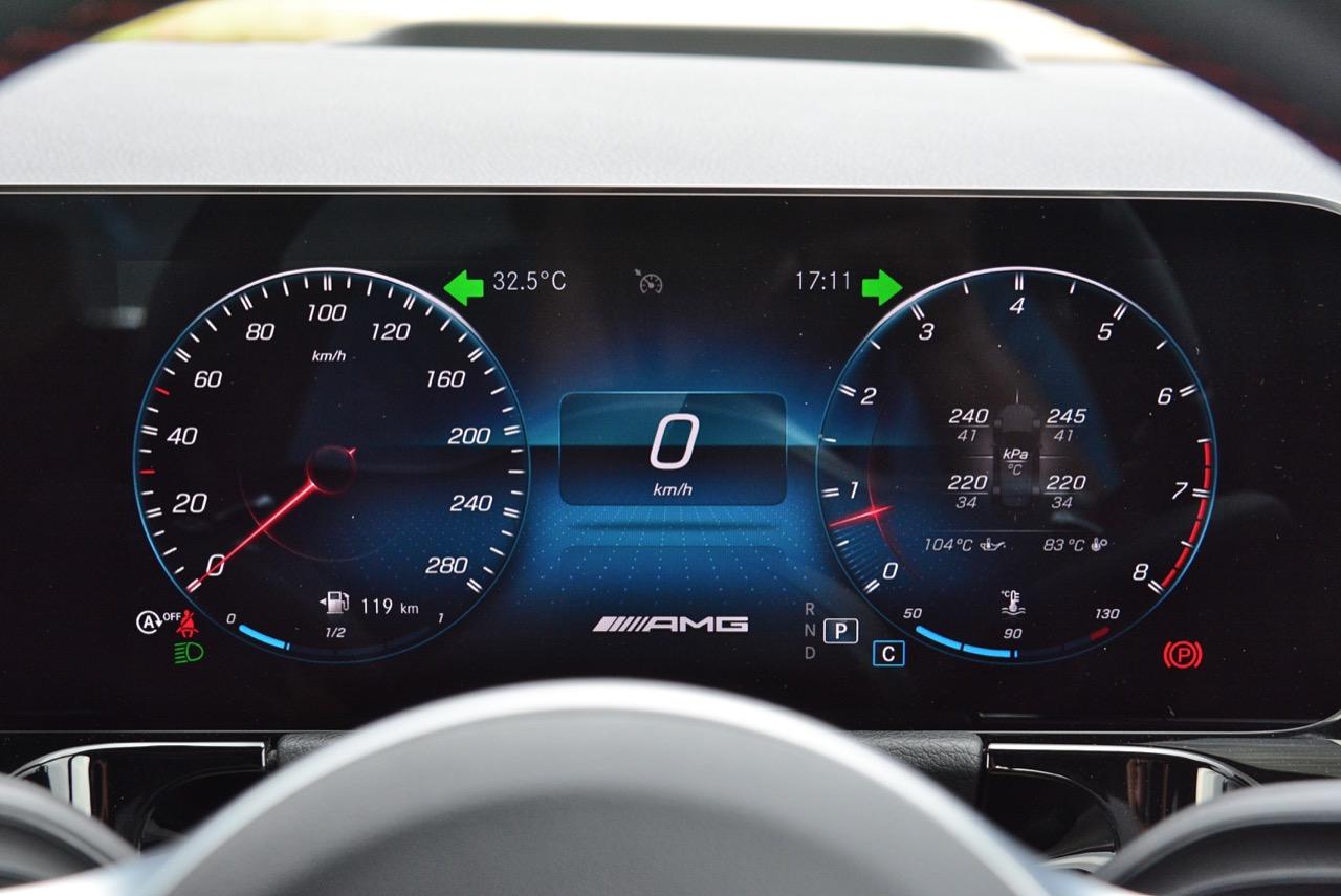 มาตรวัดและจอแสดงผลกลางของ GLA 35 คล้ายกับ A-Class / CLA Class และ GLB-Class โดยเชื่อมต่อติดกันทั้งสองจอภาพ (จอภาพมอนิเตอร์กลางและจอภาพมาตรวัด) จนมีขนาดยาวแบบพาโนรามา จอภาพมาตรวัด TFT LCD ขนาด 10.25 นิ้ว แสดงผลทั้งมาตรวัดที่ปรับเปลี่ยนรูปแบบได้ตามต้องการและเชื่อมต่อเป็นชิ้นเดียวกับจอมอนิเตอร์ส่วนกลางของระบบนำทางและให้ความบันเทิง จอภาพมาตรวัด TFT LCD แสดงผลรูปแบบของมาตรวัดได้อย่างหลากหลาย เช่น Classic /Sport/Super Sport และ Understated