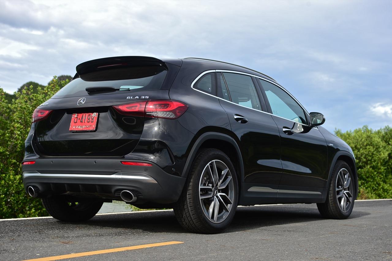AMG GLA35 4Matic แน่นอนว่ามันทรงตัวได้ดีเพราะมีระบบขับเคลื่อนสี่ล้อกับโช้คอัพแบบ Adaptive ที่ปรับแต่งค่าการตอบสนองได้สองระดับ ทั้งแบบสบายๆ และการขับเร็วในโหมด Sport + ซึ่งทำงานได้อย่างสมบูรณ์แบบ ช่วงให้ช่วงล่างจัดการกับสถานการณ์ต่างๆ ได้อย่างเต็มที่ มันเหมือนนักกีฬาตัวเล็กที่แข็งแกร่งและเต็มไปด้วยมัดกล้าม ที่พยายามจัดการทุกอย่างให้อยู่หมัดยกเว้นตอนเบรก ล้อทั้งสี่ถูกทำให้สัมผัสกับผิวถนนเท่าๆ กันทั้งหมด ทำให้ M260 ปลดปล่อยพลังงานออกมาอย่างเต็มที่ ชุดแต่ง AMG ไม่ฉูดฉาดเท่ากับรถรุ่นพี่อย่าง AMG GLA45 ที่ออกขายเมื่อหลายปีก่อน งานตกแต่งทั้งภายนอกและภายในแบบเรียบๆ อาจโดนใจใครบางคนและไม่ถูกใจคนที่ชอบความเต็ม ไดนามิกส์บนทางตรงนั้นดีเยี่ยม การยึดเกาะในโค้งก็ทำได้ดีเพราะมีระบบเฉลี่ยแรงบิดเพื่อทำให้เกิดความสมดุลขณะใช้ความเร็ว อัตราสิ้นเปลืองทำได้ 10.5 กิโลเมตรต่อลิตร ราคา 3,190,000 บาท คุณจะได้รถอเนกประสงค์สไตล์สปอร์ตที่ขับใช้งานได้ดีเลยทีเดียว มันไม่มีแม้แต่ Panoramic Roof เครื่องเสียงงั้นๆ และมีแค่เบาะกับเข็มขัดนิรภัยเท่านั้นที่แสดงให้เห็นถึงความแตกต่างไปจาก GLA รุ่นมาตรฐาน แต่เมื่อไหร่ก็ตามที่กดคันเร่ง AMG GLA35 จะแสดงให้เห็นถึงความพอดีบนความสนุกที่หาได้ยากในรถยนต์ครอสโอเวอร์ไซส์เล็ก.