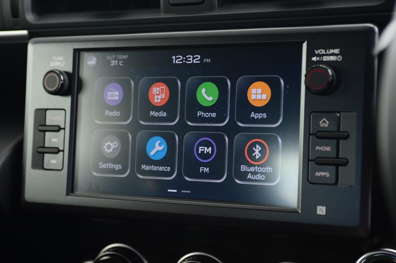พื้นที่ส่วนหน้าของห้องโดยสาร ไม่ว่าจะเป็นเบาะคนขับหรือเบาะผู้โดยสารตอนหน้า ทำให้การเดินทางบนถนนนานหลายชั่วโมงเป็นเรื่องง่าย รองรับด้วยการเชื่อมต่อ Apple CarPlay และ Android Auto แต่ไม่ใช่แบบไร้สาย หน้าจอสัมผัสของระบบ Infotainment ตอบสนองได้ดีกับอินพุต แต่ไม่ใช่หน้าจอกราฟิกที่สวยงามอะไร นอกจากนี้ยังมีก้านของระบบควบคุมความเร็ว Cruise Control ซึ่งเป็นก้านสวิตช์แบบเดียวกับที่ Subaru ใช้มาอย่างน้อยสองทศวรรษแล้ว และควรจะเปลี่ยนเป็นแป้นควบคุมบนพวงมาลัยได้แล้ว