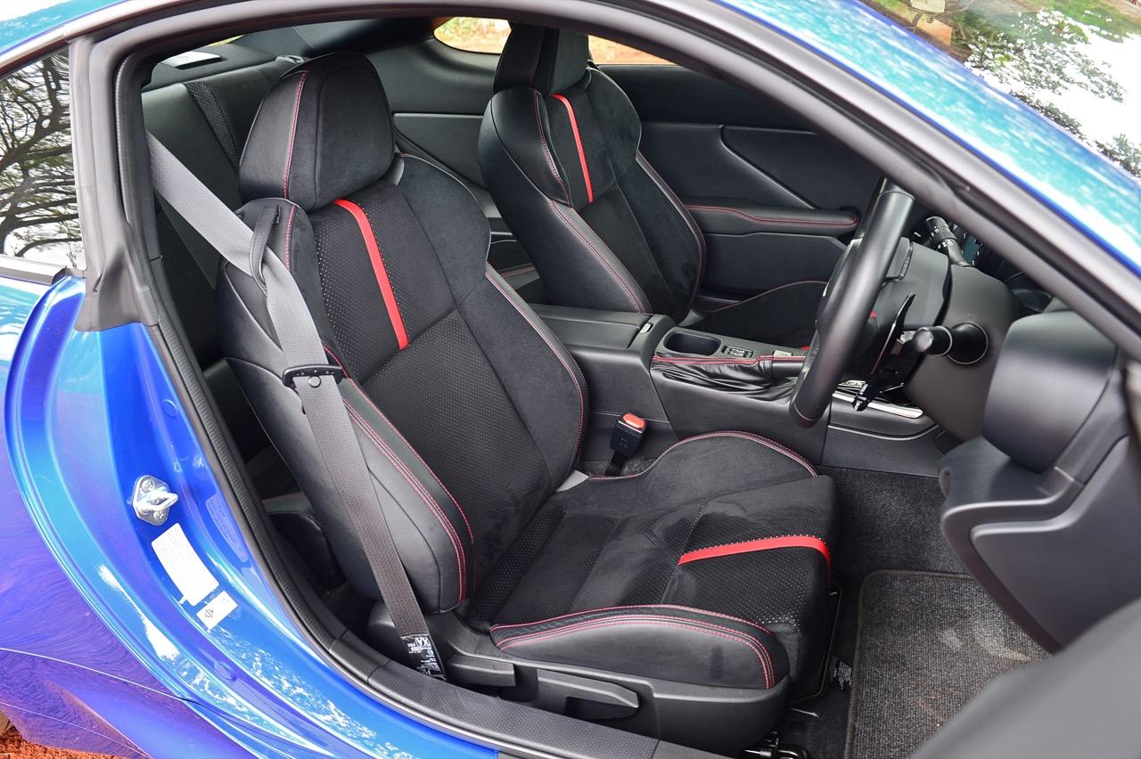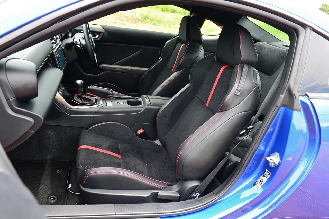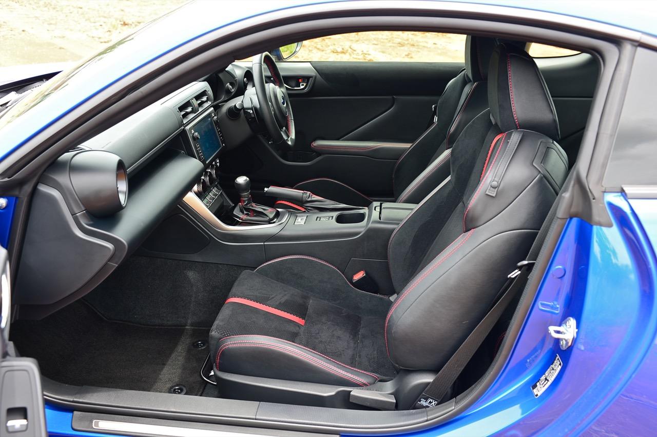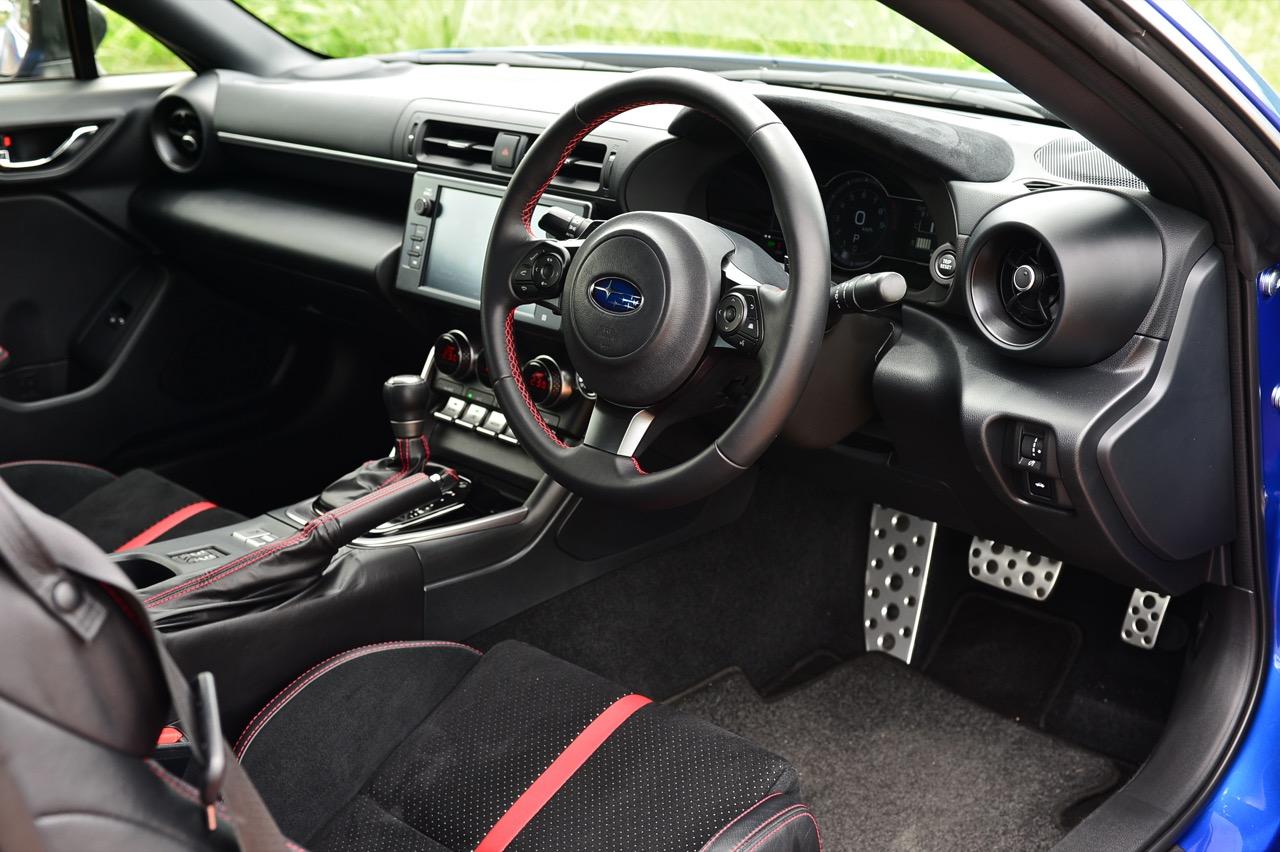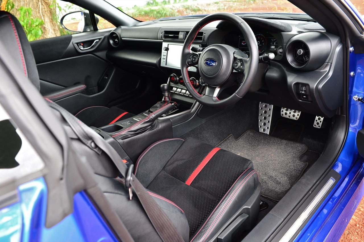 การตกแต่งภายในมีความทันสมัยมากกว่า BRZ รุ่นแรก หน้าจอระบบสัมผัส มีขนาด 8.0 นิ้วแทนที่จะเป็น 7.0 นิ้ว (เป็นการอัปเกรดที่ดี) แผงหน้าปัดมาตรวัด TFT ออกแบบกราฟิกเป็นเส้นตรงทั้งหมด แทนที่จะเป็นส่วนโค้งแบบรถรุ่นเก่า มาตรวัดอยู่ในกรอบในลักษณะบล็อกที่ไม่สง่างาม หรือเรียบง่ายแบบรถสปอร์ต โดยมีความทันสมัยเข้ามาแทนที่ของเดิมที่เริ่มตกยุค เบาะด้านหน้านั่งสบายและรองรับน้ำหนักได้ดี เบาะคนขับปรับแบบแมนนวล 6 ทิศทาง โดยไม่มีเบาะไฟฟ้าให้เลือกแต่อย่างใดทั้งสิ้น เบาะหนังกลับไมโครไฟเบอร์สลับหนังแท้ มีการผสมผสานระหว่างหนังแท้ๆ และหนังกลับที่ยึดเกาะกับเสื้อผ้าคนขับได้ดีมาก แต่ถ้าเหงื่อออกจนชุ่มก็ควรเปลี่ยนเสื้อก่อนลงไปนั่ง
