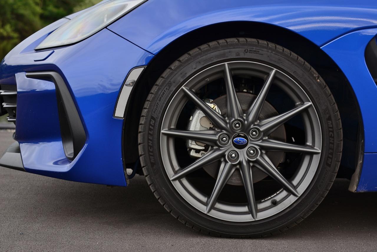 ความสมดุลเมื่อขับเร็ว คือจุดที่ทำให้รถควบคุมได้ง่าย เนื่องจาก BRZ ถูกปรับให้ส่งถ่ายความรู้สึกอย่างตรงไปตรงมา จึงง่ายต่อการรักษาทิศทางโดยเฉพาะการควบคุมบนทางโค้ง ที่ไม่ต้องใช้พวงมาลัยเยอะเกินไป แร็คที่เร็วและคันเร่งที่ตอบสนองได้ดี หมายความว่าการเปลี่ยนทิศทาง จะเกิดขึ้นอย่างรวดเร็วและปราศจากความยุ่งยาก หลังจากผ่านไปสองสามชั่วโมงเมื่อขับออกมาทดสอบทางไกล รถเข้าโค้งได้อย่างราบรื่นและเชื่อมต่อส่วนปลายได้อย่างง่ายดาย เมื่อคนขับไม่ติดลูกบ้ามากจนเกินไป BRZ คันนี้ จะเป็นเครื่องมือการเรียนรู้ที่ยอดเยี่ยม โดยไม่ต้องคำนึงถึงทักษะของการควบคุมมากนัก ถ้ารู้จักใช้คันเร่งและเผื่อระยะเบรก ทั้งมือใหม่และมือเก๋าจะได้รับความสนุกจากรถคันนี้อย่างแน่นอน ล้อขนาด 18 นิ้วหุ้มด้วยยาง Michelin Pilot Sport 4 ขนาด 215/40 R18 ทำหน้าที่สอดรับกับสภาพเส้นทางที่เปลี่ยนไปมาจากถนนปูนไปเป็นทางลาดยาง Pilot Sport 4 มีกริบที่ดีในวันที่มีแดดจัดและรีดน้ำได้อย่างมีประสิทธิภาพเมื่อความเร็วในขณะที่ขับฝ่าสายฝนไม่สูงมากจนเกินไป การยึดเกาะที่ดีของยาง ทำให้ต้องเติมคันเร่งเพิ่มขึ้นอีกนิดหากต้องการจะทำให้ท้ายสาดออกด้านข้าง นอกเหนือไปจากการปิดระบบช่วยทรงตัว