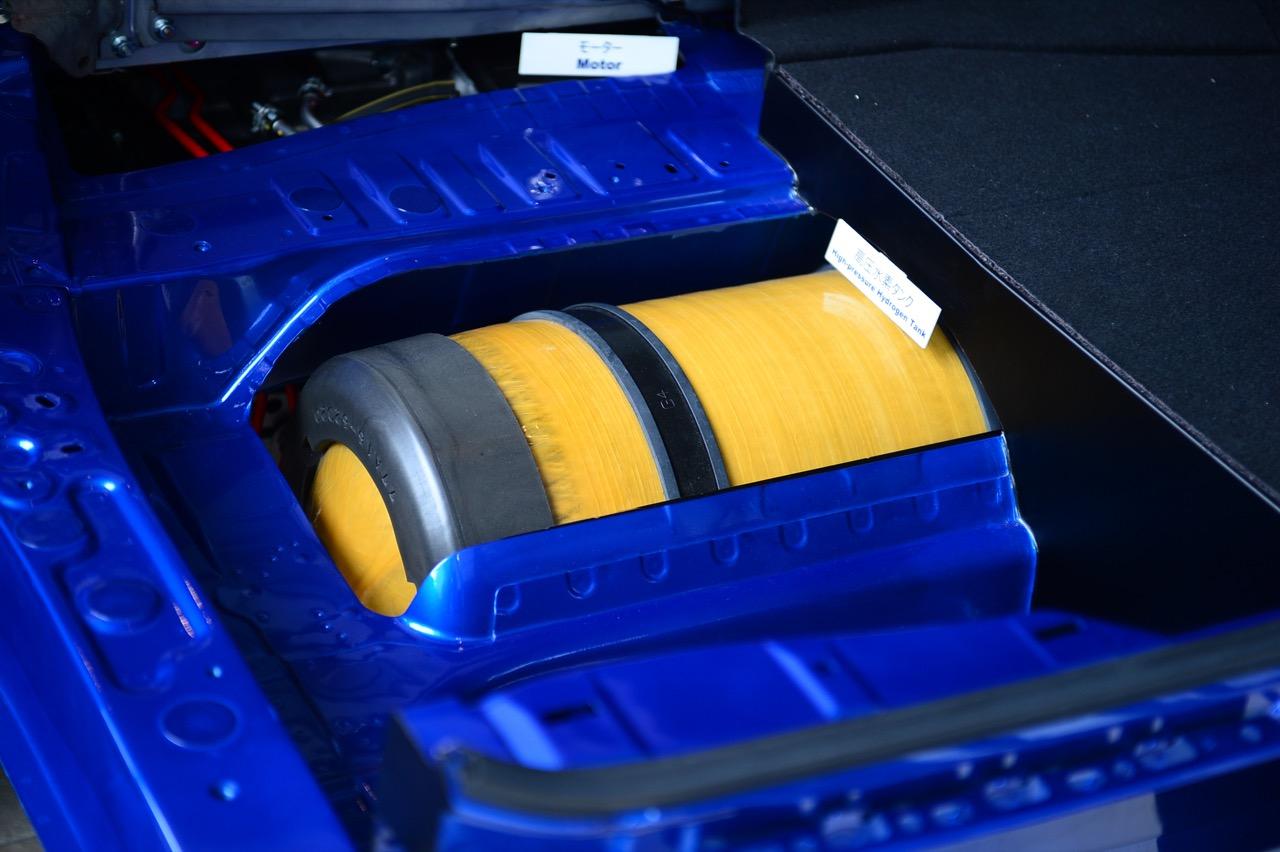 2 ไฮโดรเจนถูกเก็บในถังแรงดันสูง 700 บาร์ ถังเชื้อเพลิงผลิตจากคาร์บอนไฟเบอร์ที่มีความแข็งแกร่งและมีน้ำหนักเบา ชั้นในของถังเชื้อเพลิงไฮโดรเจน บุด้วย polyamide resin ช่วยป้องกันการรั่วไหลของไฮโดรเจนก่อนที่จะส่งไปยังเซลล์เชื้อเพลิงที่ติดตั้งอยู่ด้านหน้า
