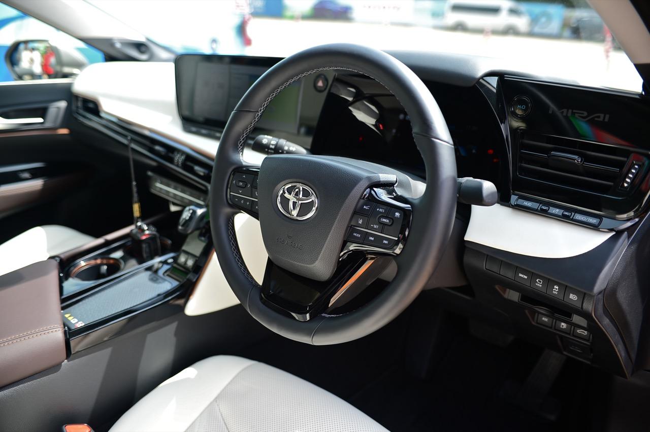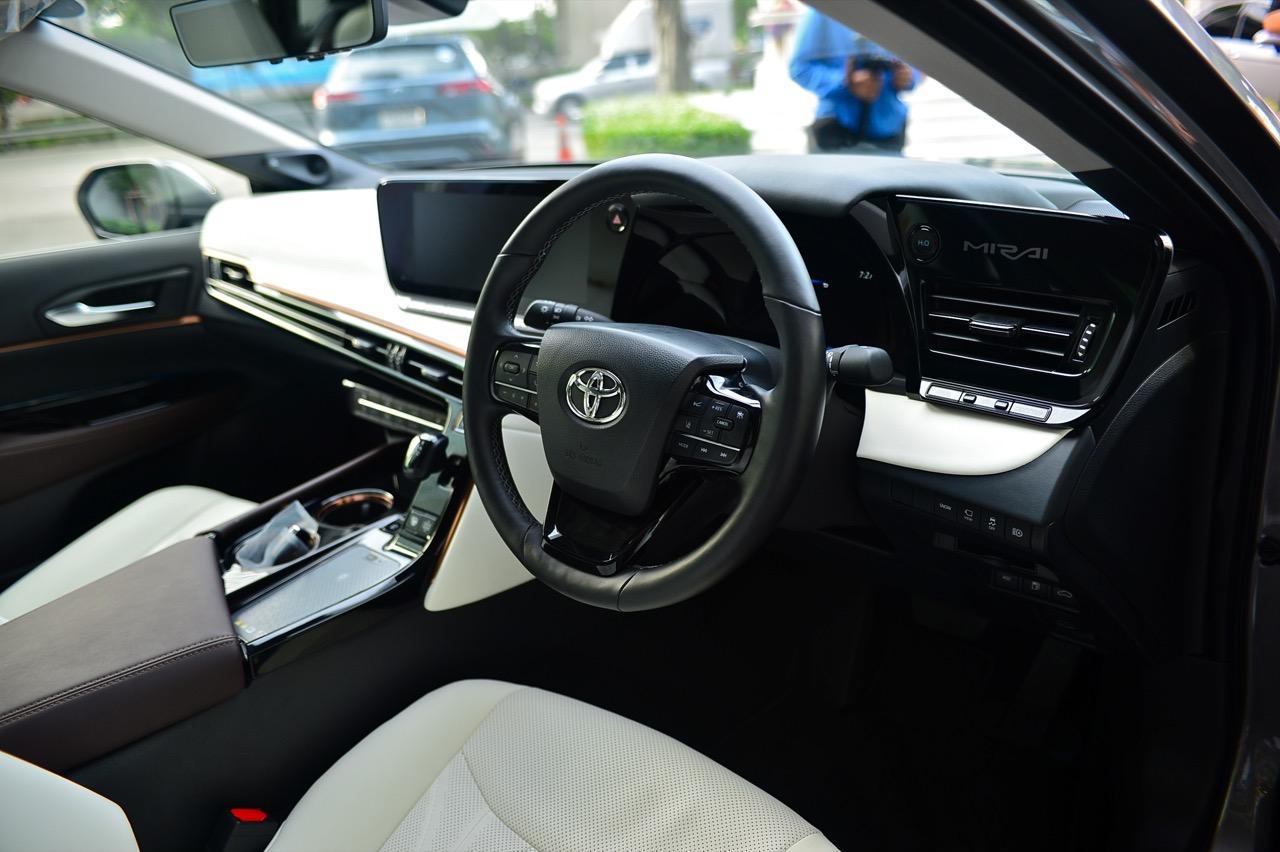 MIRAI ในภาษาญี่ปุ่นแปลความตรงตัวก็คือคำว่า อนาคต นั่นคือความหมายที่ดีของยานพาหนะในอนาคตและจะเข้ามาแทนที่ยานยนต์ในปัจจุบันซึ่งก่อมลพิษมหาศาล! เป็นพัฒนาการอีกก้าวของ Toyota ในการสานต่อความสำเร็จของ MIRAI รุ่นแรก ตัวถังยาวขึ้น เซลล์เชื้อเพลิงที่ติดตั้งบริเวณพื้นรถโดยใช้ไฮโดรเจนทำปฏิกิริยาทางเคมีกับออกซิเจน เพื่อสร้างกระแสไฟฟ้าป้อนให้กับมอเตอร์ขับเคลื่อน น้ำที่จะถูกปล่อยออกมาจากท่อระบายท้ายถูกนำไปหล่อเย็นให้กับเซลล์เชื้อเพลิงแล้วค่อยปล่อยทิ้งออกมานอกรถ เป็นของเสียเพียงอย่างเดียวที่ออกมาจาก MIRAI มันมีปุ่มกดเพื่อปล่อยน้ำทิ้งเองได้หากไม่ต้องการให้น้ำไหลนองพื้น