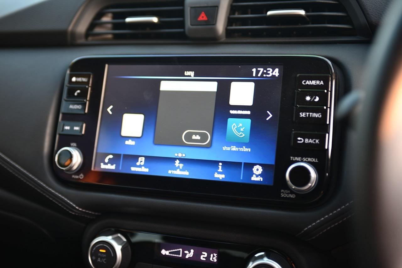 เทคโนโลยีของ NissanConnect บนหน้าจอแสดงผลใหม่ ระบบข้อมูลและความบันเทิง NissanConnect (ในรุ่น V และ VL) มาพร้อมหน้าจอสัมผัสขนาด 8 นิ้ว พร้อมช่องเชื่อมต่อ Bluetooth, USB และ AUX IN สำหรับอุปกรณ์ต่อพ่วง พร้อมลำโพง 6 จุด และระบบเชื่อมต่อโทรศัพท์สมาร์ทโฟน Apple CarPlay