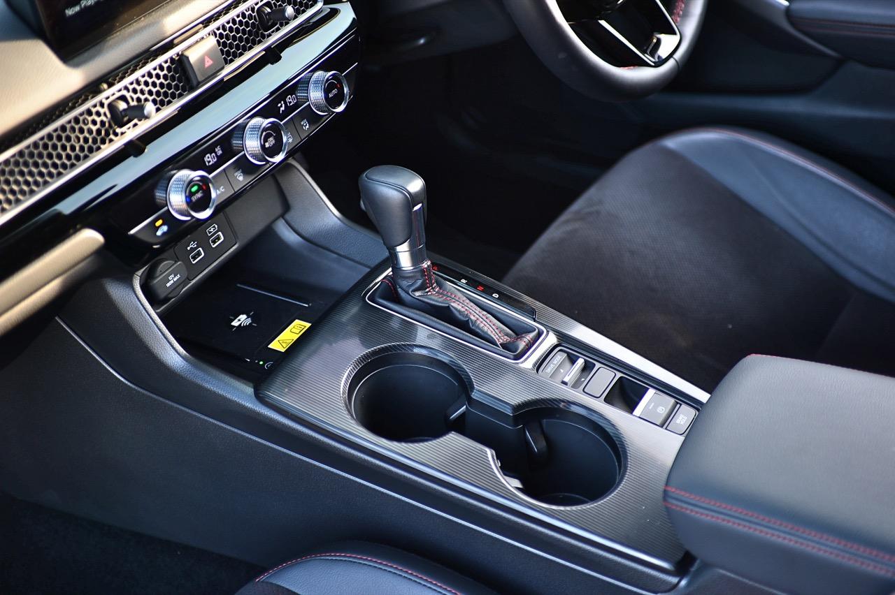 ความเปลี่ยนแปลงที่เห็นได้อย่างชัดเจนจากการทดสอบก็คือ เครื่องยนต์ไฮบริด 2.0 ลิตร ที่มีมอเตอร์อยู่ในระบบเกียร์ E-CVT (Electrical Continuously Variable Transmission) ทำงานได้ดีขึ้น ดีกว่าเครื่อง 1.5 เทอร์โบอย่างชัดเจน ทั้งอัตราเร่งและการบริหารเชื้อเพลิง แม้จะใช้ความเร็วสูงอย่างต่อเนื่อง ระบบส่งกำลังแบบ CVT ใน Civic e:HEV ได้รับการปรับตั้งใหม่หมด เพื่อปรับให้เกียร์ที่มีมอเตอร์เสริมแรงตอบสนองได้เร็วและเทแรงบิดได้ดีกว่าเดิม มีการลดอาการย้วยของเกียร์แบบสายพานพูเลย์ สมรรถนะด้านอัตราทดที่แปรผันได้ สอดรับกับแรงม้าและแรงบิดของเครื่องยนต์ที่เพิ่มขึ้นเล็กน้อย เกียร์ E-CVT หรือเกียร์อัตราทดต่อเนื่องแปรผันใน Civic e:HEV ยังเพิ่มความสะดวกในการใช้งานด้วยการติดตั้งแป้นเปลี่ยนตำแหน่งเกียร์ Paddle Shift มาให้หลังพวงมาลัย Paddle ใน Civic e:HEV กลายเป็นระบบ regenerative braking ที่ปรับการหน่วงได้หลายระดับเพื่อชาร์จกลับพลังงานไฟฟ้า