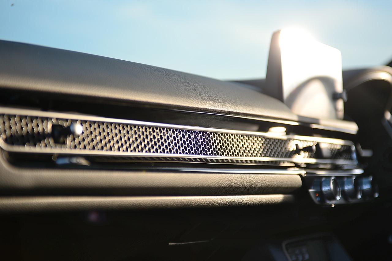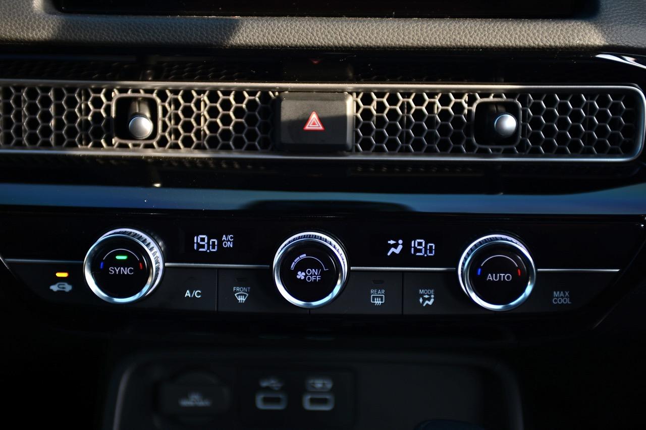 Honda ใช้ปุ่มปรับช่องแอร์แบบใหม่ ทำออกมาเป็นก้านพลาสติกสำหรับปรับทิศทางของลมแอร์ วัสดุคาดกลางคอนโซลดีไซน์แบบรังผึ้งทำจากพลาสติกเกรดดี จุดที่สวยงามและคล้ายกับรถรุ่นพี่อย่าง Accord ก็คือ ปุ่มปรับอุณหภูมิแบบดิจิทัลแยกโซน ปุ่มปรับจะมีการเรืองแสงสีขาวอยู่ภายใน การปรับตั้งง่ายๆ แค่หมุนไปตามความต้องการ ทั้งปรับทิศทางของลมแอร์ ปรับอุณหภูมิแยกซ้ายขวา กับสวิตช์สั่งงานอยู่ด้านล่าง ติดตั้งมาในตำแหน่งที่สามารถเอื้อมมือไปปรับได้อย่างสะดวก