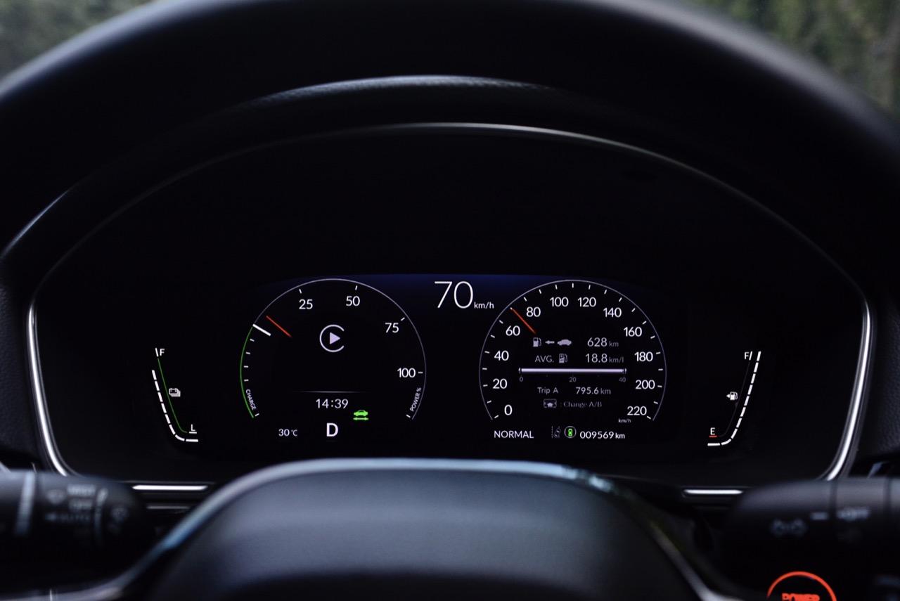 ส่วนการสร้างเสียงจำลองในโหมดสปอร์ตเพื่อสร้างความเร้าใจก็ทำได้ดี แต่มันเบาเกินไป อยากให้ Honda ออกแบบซอฟต์แวร์ของเสียงจำลองจากเครื่องยนต์ให้สามารถปรับความดังได้ นั่นจะดีมากเลยทีเดียว! การทำงานของเครื่องยนต์เบนซิน 2.0 ลิตร e:HEV ที่เร้าใจกว่า เมื่อเทียบกับเครื่องเบนซินตัวเล็กความจุ 1.5 ลิตร เครื่องยนต์ไฮบริดรุ่นใหม่มีรอบสูงใช้ได้ เมื่อขับแบบลากรอบ เสียงเครื่องยนต์เบนซินไฮบริด 4 สูบ ไม่มีระบบอัดอากาศ จะครางเบาๆ การตอบสนองของเครื่องยนต์ถือว่าอยู่ในเกณฑ์ดีมาก รวมถึงอัตราสิ้นเปลืองก็ยังโดดเด่นแม้จะขยี้คันเร่งมาตลอดทางก็ไม่ได้กินจุมากมายอะไรเนื่องจากการปรับจูนมาจากโรงงานเพื่อทำให้เครื่องยนต์ไฮบริดตัวนี้กินเชื้อเพลิงเท่าที่จำเป็น เชื้อเพลิงแบบ E10/E20 หรือโซฮอล์ 91 ก็เพียงพอต่อความต้องการไม่จำเป็นต้องดิ้นรนไปเติม แต่เวลาทดสอบทางไกล ผมชอบเติมโซฮอล์ 95 เพื่อให้ค่าออกเทนของเชื้อเพลิงเหมาะสมกับประสิทธิภาพของเครื่องยนต์