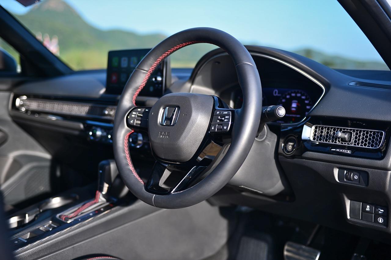 พวงมาลัยสามก้านแบบใหม่ มีทรงที่เพรียวบางน่าจับมากกว่าเดิม มาพร้อมกับหนังที่หุ้มรอบวงและเย็บเดินตะเข็บด้วยด้ายแดงเหมือนกับเบาะและแผงประตู พวงมาลัยยังมีแป้นเปลี่ยนเกียร์ติดมาให้ใช้งานเหมือนเดิม แต่เปลี่ยนรูปแบบของตัวแป้น Paddle Shift ใหม่ ก้านวงด้านขวา ใช้ปรับตั้งระบบปรับความเร็วอัตโนมัติ Honda Adaptive Cruise Control with Low-Speed Follow ส่วนก้านวงด้านขวาใช้ปรับโหมดการเลือกเล่นในระบบอินโฟเทนเมนต์ ส่วนซุ้มคันเกียร์มีช่องวางแก้วน้ำมาให้สองตำแหน่ง คันเกียร์แบบใหม่หุ้มด้วยถุงหนังสีดำเย็บตะเข็บด้วยด้ายแดง พนักเท้าแขนที่เปิดออกแล้วเป็นกล่องเก็บของเล็กๆ แผงประตูแบบใหม่บริเวณตอนหน้าทั้งฝั่งคนขับและผู้โดยสารติดตั้งแถบไฟ LED เรืองแสงสีแดงในตอนกลางคืน