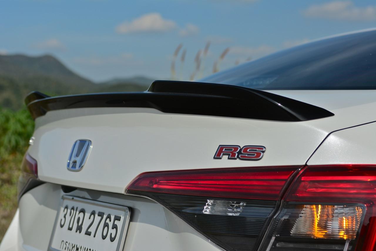 ทรงของไฟท้าย LED ขนาดใหญ่ ขอบของฝาท้ายติดตั้งสปอยเลอร์ที่มีลักษณะคล้ายกับครีบรีดอากาศ กันชนหลังมีพลาสติกมัลติรีเฟคเตอร์ฝั่งละข้าง ท่อระบายไอเสียแบบแยกหม้อพักสองใบทั้งฝั่งซ้ายและขวา ปลายท่อทรงรีทำจากโลหะชุบสีเงิน เสาท้ายที่ค่อนข้างลาดเอนมีองศาที่ใกล้เคียงกับเสาท้ายของรถรุ่นพี่อย่าง Accord สัญลักษณ์ RS บริเวณมุมขวาของฝาท้าย จุดเด่นของบั้นท้ายก็คือไฟท้าย LED แบบใหม่ที่ใหญ่ขึ้นมากกับชิ้นงานพลาสติกสีดำของครีบรีดอากาศและเสาอากาศครีบปลาฉลาม