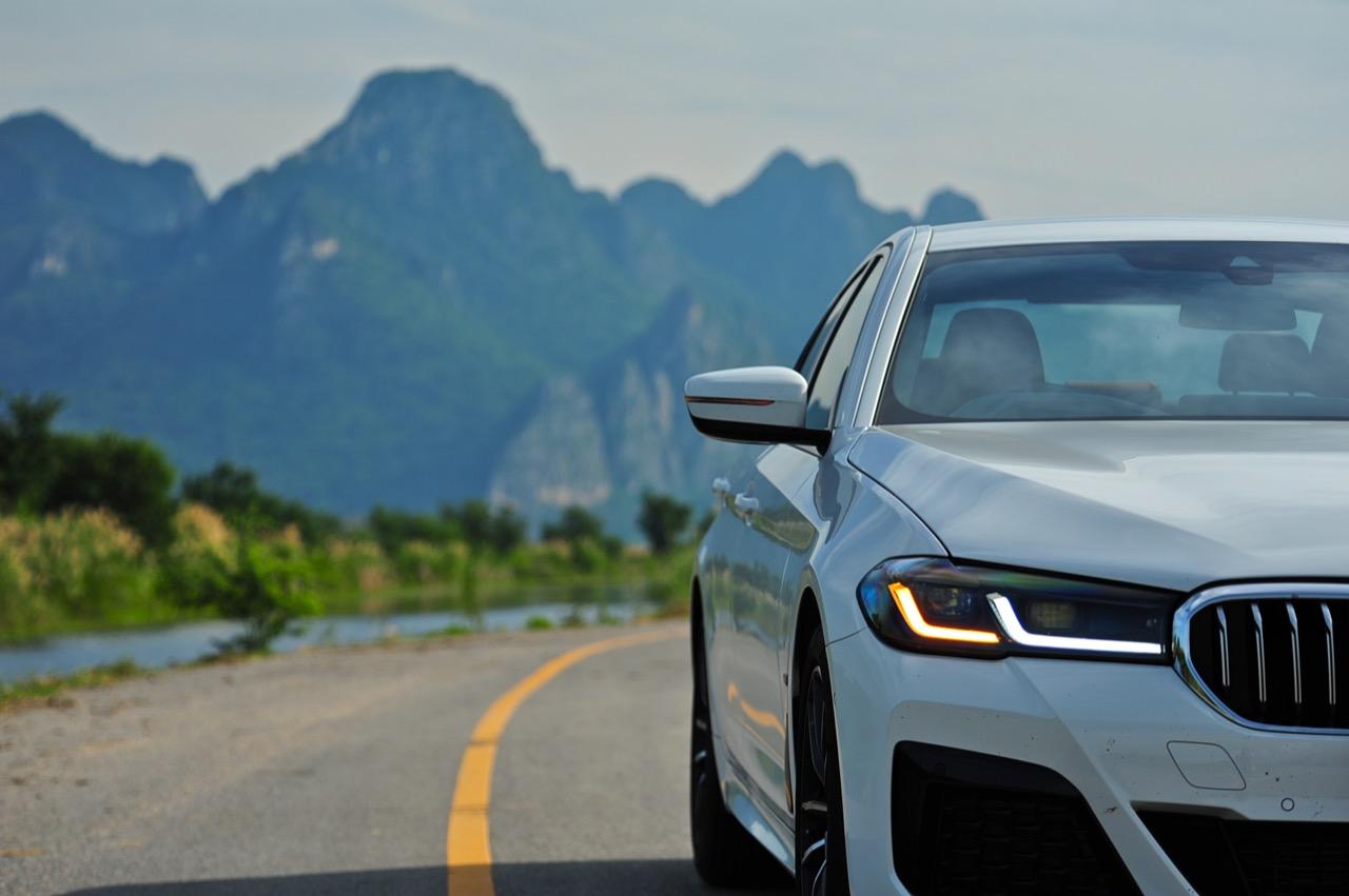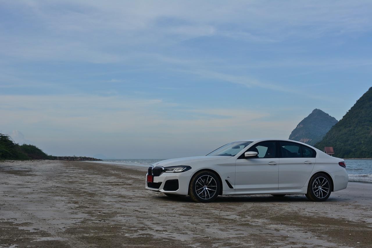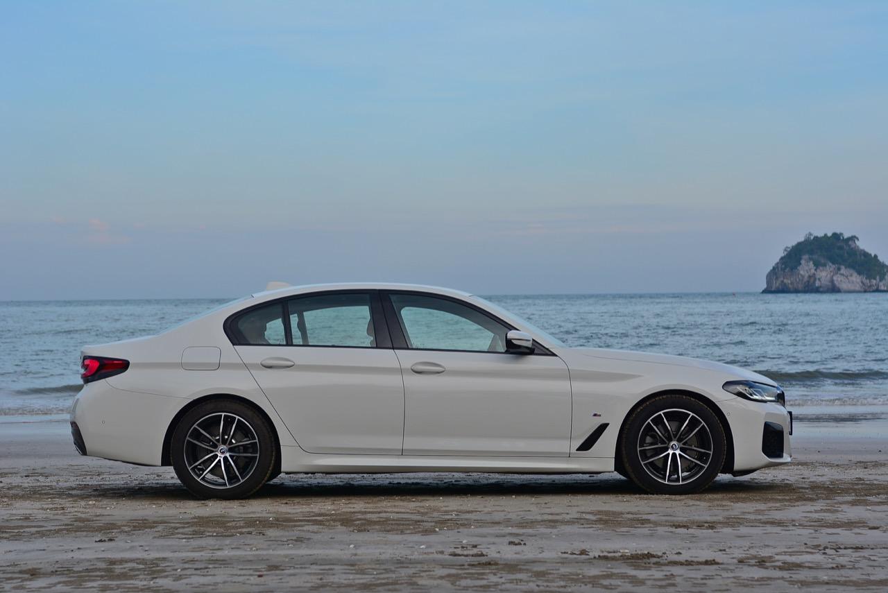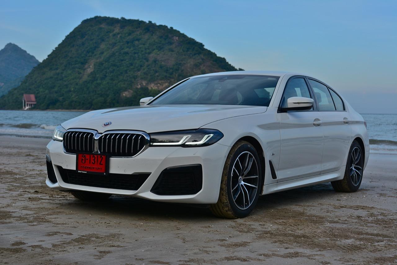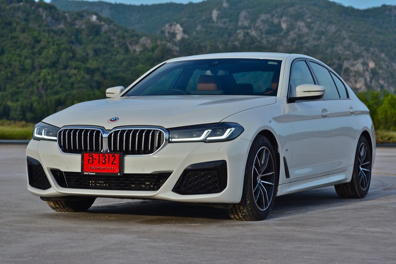 รถรุ่นปรับโฉมใหม่ หรือ LCI อย่าง Series-5 G30 เวอร์ชันไมเนอร์เชนจ์ ประจำปี 2021 รถทดสอบในอาทิตย์นี้คือซาลูนหรู 4 ประตู รุ่น New Series-5 520d M Sport ประกอบในประเทศ ราคาเปิดออกมาที่ 3,539,000 บาท เมื่อลองส่องดูทั่วทั้งคันก็จะพบว่าหน้าตาของ BMW 5-Series รุ่นปรับโฉมมีความสวยงามลงตัว รูปลักษณ์แตกต่างจากรุ่นที่แล้วไม่มากนัก งานออกแบบด้านหน้าใหม่เข้ามาเพิ่มเติมความเข้มข้นของ New Series-5 ให้เฉียบคมและดูดีขึ้นมาอีกนิด การปรับให้น้ำหนักส่วนเกินถูกตัดออกไป เกิดขึ้นจากแนวคิด BMW Efficient Lightweight เน้นการใช้วัสดุน้ำหนักเบาอย่างอลูมิเนียมและเหล็กกล้าที่มีความทนทานสูงแต่น้ำหนักเบามาใช้เป็นเปลือกตัวถังและแชสซี New Series-5 รุ่น 520d จึงมีน้ำหนักเบากว่ารุ่นก่อน (520d F10) 115 กิโลกรัม ตัวถังถูกออกแบบให้มีจุดศูนย์ถ่วงที่ต่ำ กระจายน้ำหนักอย่างสมดุล 50/50 และมีแรงเสียดทานอากาศต่ำที่สุดในรถระดับเดียวกัน