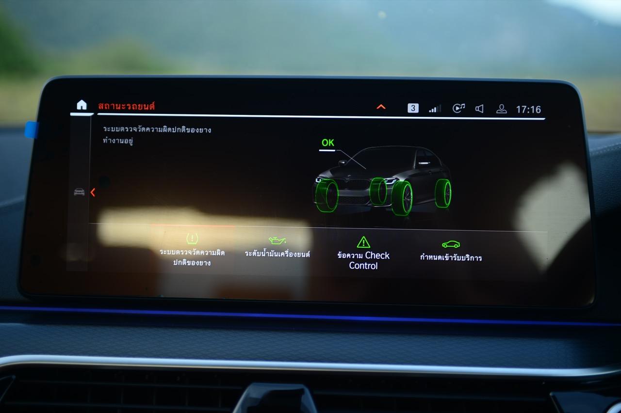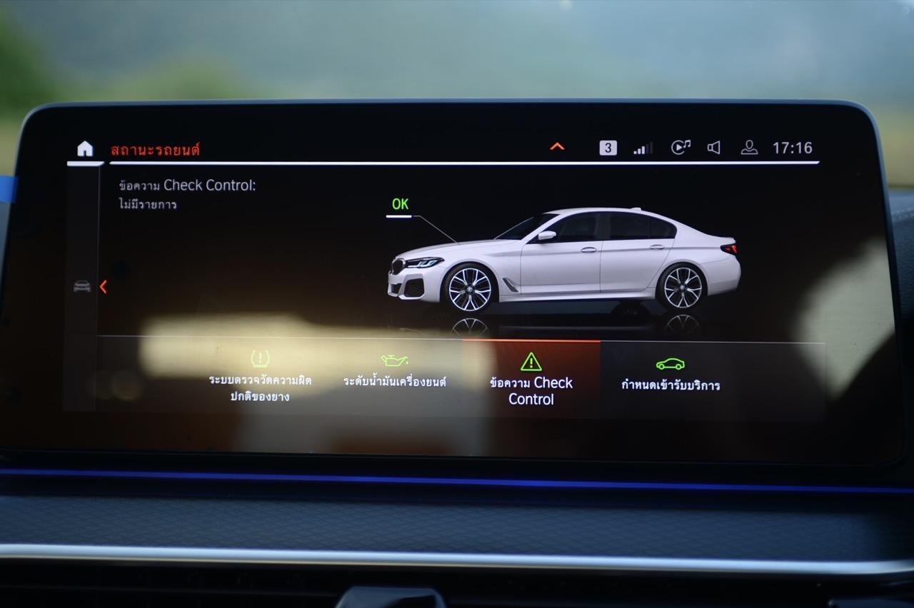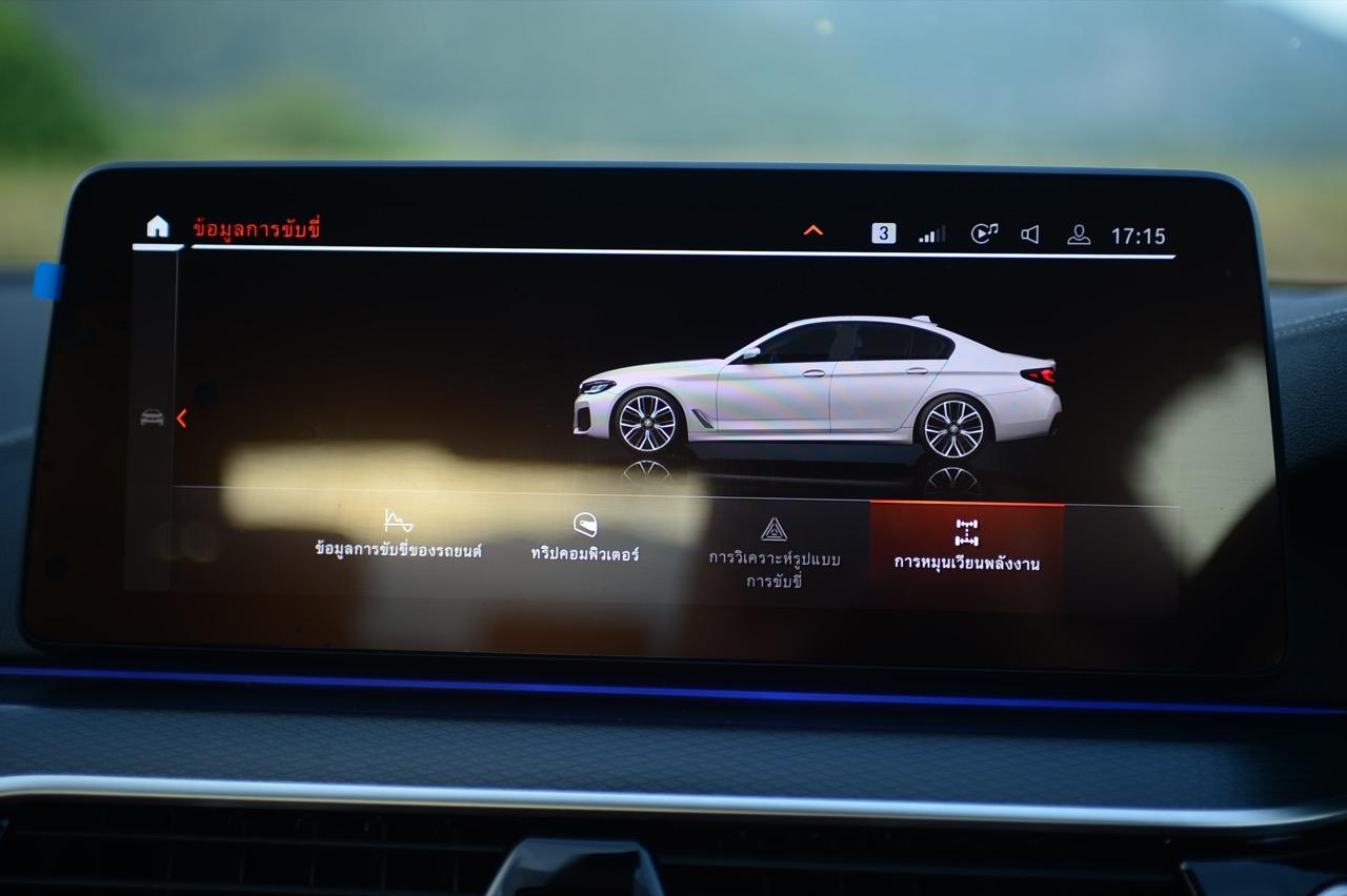 งานตกแต่งภายในก็ดีเช่นกัน เมื่อเทียบกับคู่แข่งด้านออปชัน Series-5 520d M Sport LCI กินขาด ของที่ใส่มาให้ความรู้สึกเหมือนกำลังอยู่ในเทศกาล BMW Festival of 5-Series มีการเพิ่มหน้าจอมอนิเตอร์กลางแบบไวด์สกรีน ขนาดใหญ่ 12.3 นิ้ว เครื่องปรับอากาศมาพร้อมปุ่มปรับสภาพอากาศที่ใช้งานง่าย ความสมดุลระหว่างสวิตช์เกียร์แบบใหม่นั้นจัดการได้ค่อนข้างดี ที่ชอบก็คือ ประตูดูด BMW soft close automatic doors เครื่องเสียง Haman Kardon แม้จะไม่มี Panoramic Roof แต่ก็ไม่ได้ทำให้การตัดสินใจซื้อลดน้อยถอยลง BMW ตอกย้ำพื้นฐานของการนั่งขับที่ดีเยี่ยมเหมือนเดิม ส่วนฟังก์ชันควบคุมและสั่งงานด้วยท่าทางเป็นลูกเล่นเก่า iDrive ก็เช่นกัน การปรับปรุงทำให้ตอนนี้มันดีและง่ายจนไม่อยากเอื้อมหรือยื่นนิ้วมือไปแตะจอภาพ การตั้งค่าระบบสาระบันเทิงผ่านอุปกรณ์ iDrive นั้นง่ายมาก ใช้ไปไม่นานคุณจะติดใจ และแทบไม่อยากเปลี่ยนไปใช้รถยี่ห้ออื่นที่ไม่มีอุปกรณ์ iDrive