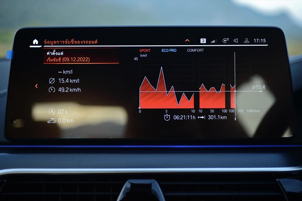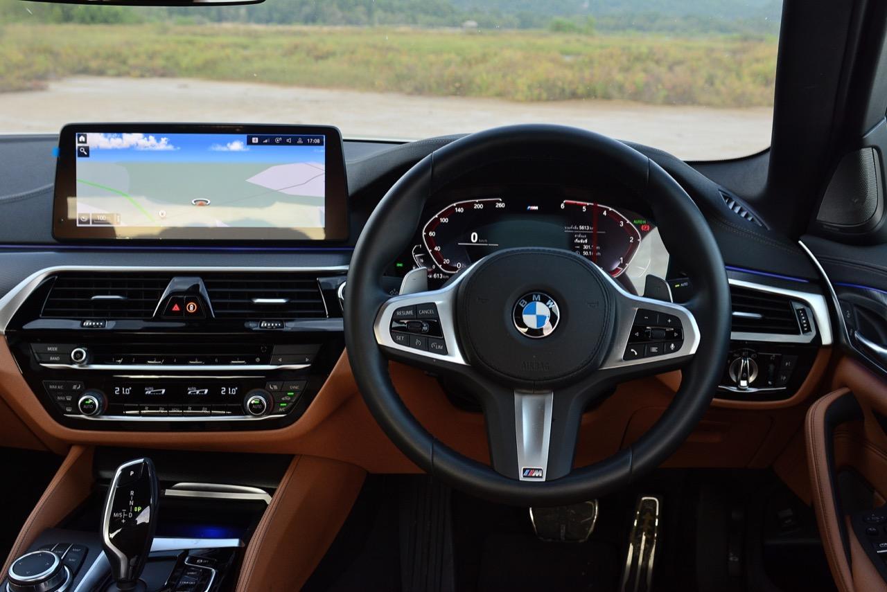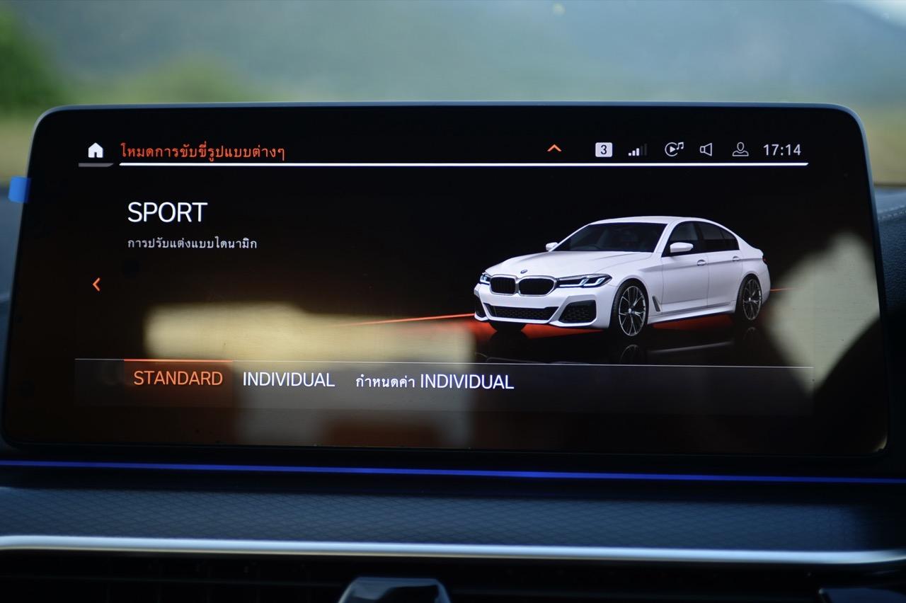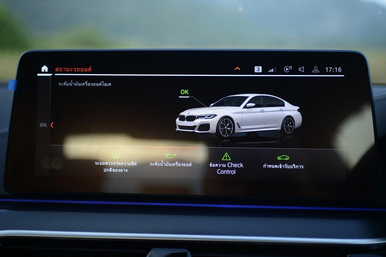 งานตกแต่งภายในก็ดีเช่นกัน เมื่อเทียบกับคู่แข่งด้านออปชัน Series-5 520d M Sport LCI กินขาด ของที่ใส่มาให้ความรู้สึกเหมือนกำลังอยู่ในเทศกาล BMW Festival of 5-Series มีการเพิ่มหน้าจอมอนิเตอร์กลางแบบไวด์สกรีน ขนาดใหญ่ 12.3 นิ้ว เครื่องปรับอากาศมาพร้อมปุ่มปรับสภาพอากาศที่ใช้งานง่าย ความสมดุลระหว่างสวิตช์เกียร์แบบใหม่นั้นจัดการได้ค่อนข้างดี ที่ชอบก็คือ ประตูดูด BMW soft close automatic doors เครื่องเสียง Haman Kardon แม้จะไม่มี Panoramic Roof แต่ก็ไม่ได้ทำให้การตัดสินใจซื้อลดน้อยถอยลง BMW ตอกย้ำพื้นฐานของการนั่งขับที่ดีเยี่ยมเหมือนเดิม ส่วนฟังก์ชันควบคุมและสั่งงานด้วยท่าทางเป็นลูกเล่นเก่า iDrive ก็เช่นกัน การปรับปรุงทำให้ตอนนี้มันดีและง่ายจนไม่อยากเอื้อมหรือยื่นนิ้วมือไปแตะจอภาพ การตั้งค่าระบบสาระบันเทิงผ่านอุปกรณ์ iDrive นั้นง่ายมาก ใช้ไปไม่นานคุณจะติดใจ และแทบไม่อยากเปลี่ยนไปใช้รถยี่ห้ออื่นที่ไม่มีอุปกรณ์ iDrive