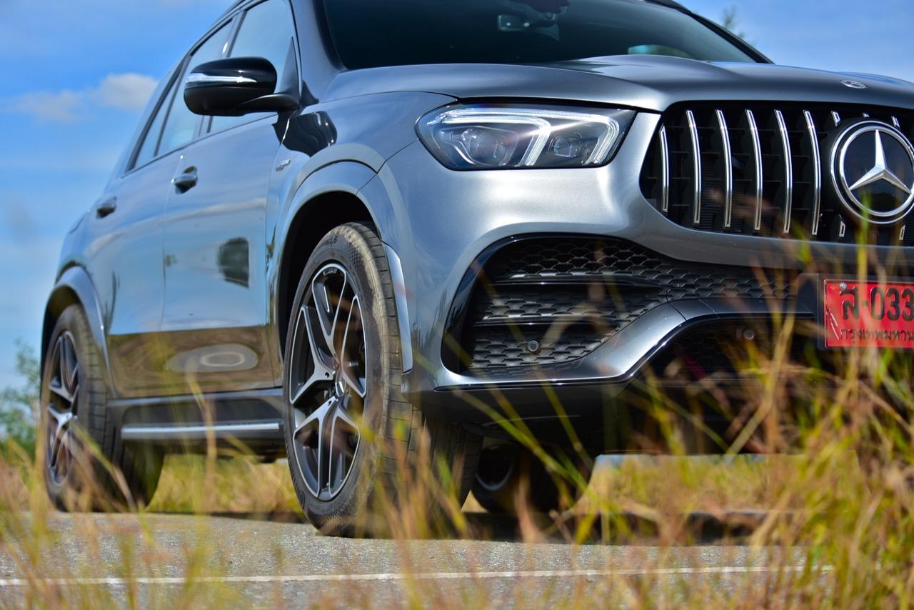 ระบบไฮบริด 48 โวลต์ พร้อมกับกันสะเทือน Airmatic แบบถุงลมที่มุมทั้งสี่พร้อมกลไกไฟฟ้าในการปรับตั้งค่าการตอบสนอง เหล็กกันโคลงแบบแอคทีฟที่ช่วยลดอาการโคลงตัว (ควรใช้โหมดสปอร์ต) โรเตอร์หรือจานเบรกหน้าที่มีขนาดใหญ่ขึ้น ระบบขับเคลื่อนสี่ล้อ 4MATIC + ปรับแต่งพิเศษ รองรับการส่งกำลังไปยังเพลาหน้า-หลัง ล้อขนาด 21 นิ้ว ล้อหลังยัดยางเส้นเขื่องขนาด 315/40ZR21 แต่ถึงแม้จะมีการเพิ่มเติมไดนามิกอย่างเต็มข้อ GLE 53 ก็ไม่ใช่รถสปอร์ตตัวเตี้ย มันคือ SUV พันธุ์แท้ที่สืบทอดเอกลักษณ์มาจาก GLK ด้วยเรือนร่างที่ใหญ่โต และสัดส่วนความสูงสไตล์เอสยูวี (ที่ปรับให้เตี้ยลงได้บ้างแต่ไม่มากนัก) คุณไม่สามารถเข้าโค้งแบบเดียวกับที่เคยทำใน AMG GT R หรือแม้แต่ CLS 53 แต่ GLE 53 สามารถไหลผ่านการจราจรที่คับคั่งได้อย่างหมดจด ด้วยการควบคุมที่ให้ความรู้สึกถึงพลังและความคล่องแคล่วว่องไวของชุดบังคับเลี้ยว