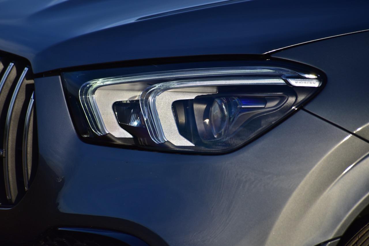 GLE 53 แตกต่างจาก CLS 53 ตรงที่มีกระจังหน้าแบบระแนงแนวตั้ง Panamericana และดูดุดันกว่าเอสยูวีรุ่นอื่นๆ ของ AMG เนื่องจากมีตราดาวสีเงินขนาดใหญ่ ลักษณะที่ตะแกรงยื่นออกมาราวกับปลาใหญ่กำลังจะกลืนเหยื่อ งานดีไซน์เสริมขอบด้านบนตัวถังที่หนาและบึกบึนของ GLE เส้นสายที่เป็นเอกลักษณ์ของโมเดลคล้ายกับ GLS ไฟหน้าระบบอัตโนมัติ Multibeam LED ทำหน้าที่ให้ความกระจ่างเมื่อขับบนถนนที่ปราศจากแสงไฟ กำลังส่องสว่างไกลกว่า 550-600 เมตร Multibeam LED ช่วยเพิ่มความปลอดภัยเมื่อขับในตอนกลางคืน เป็นระบบส่องสว่างที่มีประสิทธิภาพสูงมาก