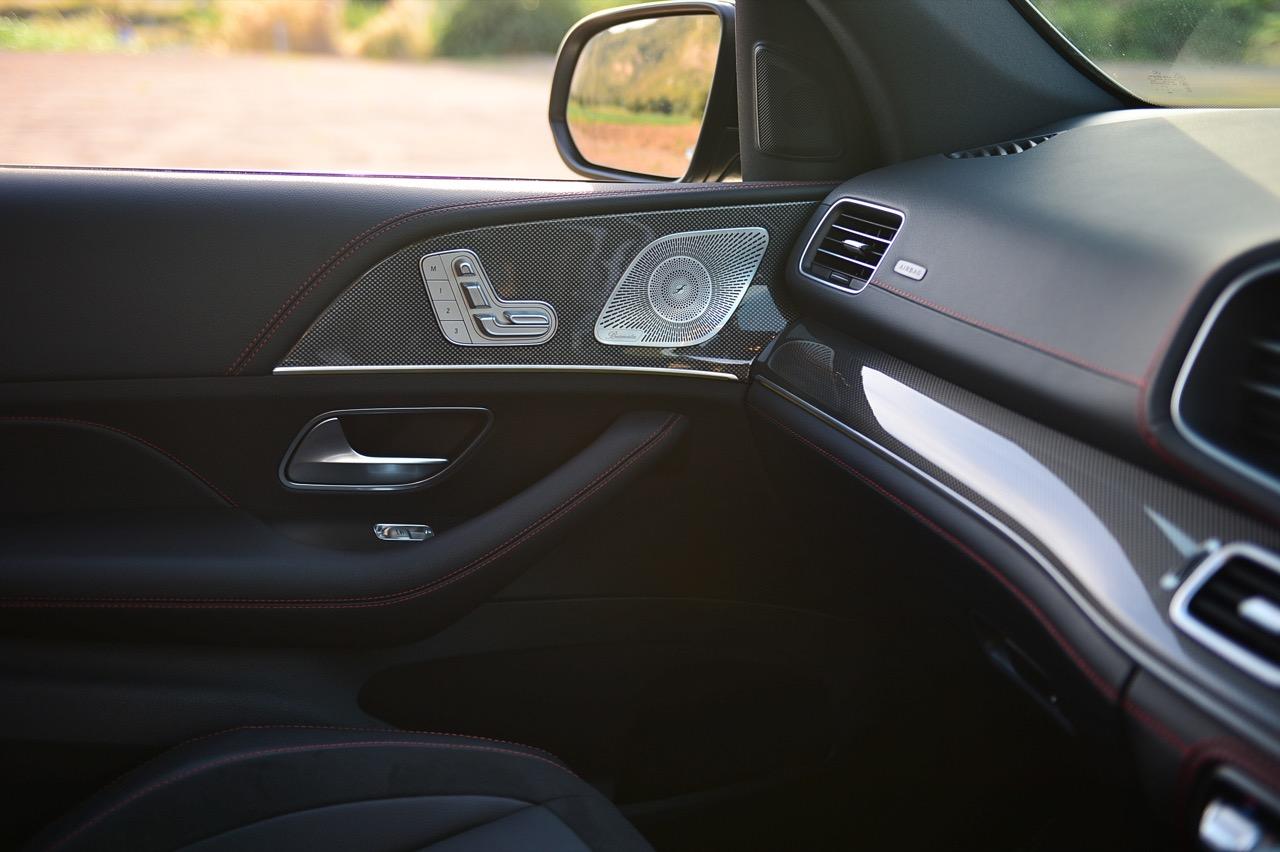 AMG GLE 53 4MATIC+ มีงานตกแต่งภายในที่แตกต่างในด้านของรายละเอียด วัสดุที่ใช้ตกแต่งภายในของรถรุ่นนี้ถูกเน้นหนักไปด้านอารมณ์พร้อมกับความหรูหราในสไตล์ของแบรนด์ตราดาว เบาะ AMG ปรับไฟฟ้าพร้อมหน่วยความจำ แผงคาร์บอนไฟเบอร์และงานอัลลอยสีเงินยวงประดับประดาอยู่บนแดชบอร์ด พวงมาลัย AMG ทรงสามก้านหุ้มด้วยหนังสองแบบมีรอบวงที่อวบอ้วนจับได้กระชับมือดีมาก แสดงให้เห็นถึงความตั้งใจในการเอาชนะคู่แข่ง เครื่องเสียง Burmester High-End 3D Surround-Sound system ติดตั้งลำโพง 13 ตำแหน่ง กำลังขับ 590 วัตต์ ให้เสียงเพลงที่เล่นผ่าน USB / iPod/ bluetooth มีความคมชัดสมจริงและเต็มไปด้วยมิติของเสียงเบส เสียงกลางและความจัดจ้านของเสียงแหลมเป็นชุดเครื่องเสียง Burmester ที่ทำกรวยลำโพงได้สวยงามสมราคาค่าตัว 5.9 ล้าน