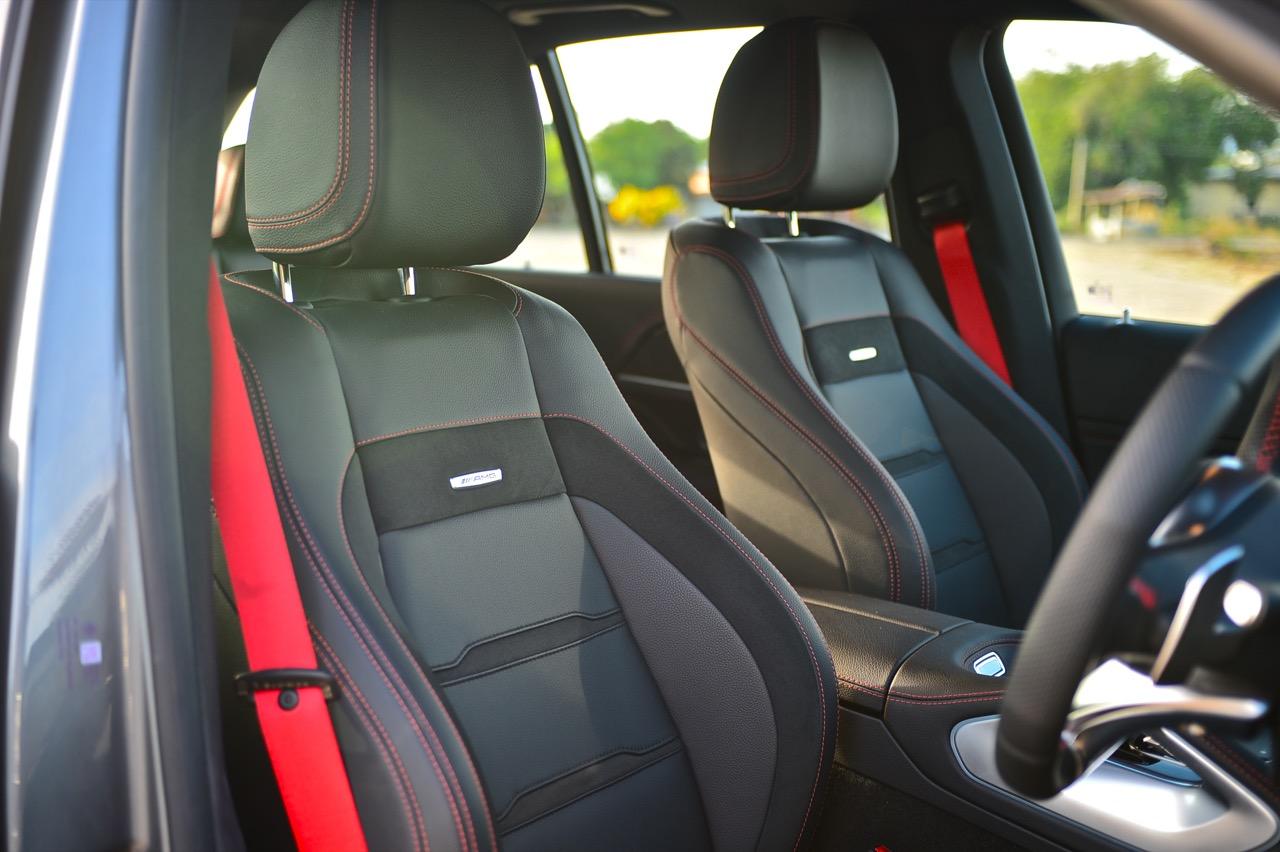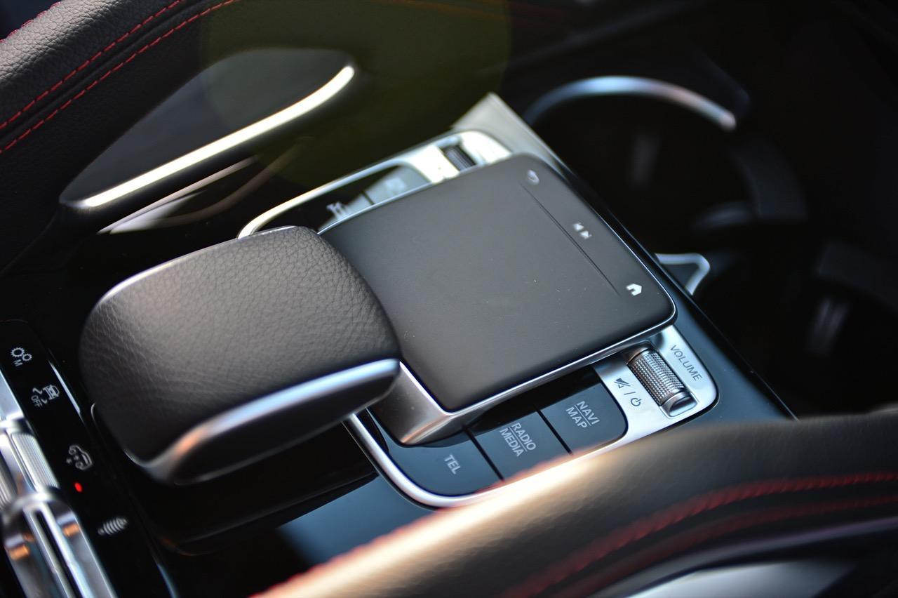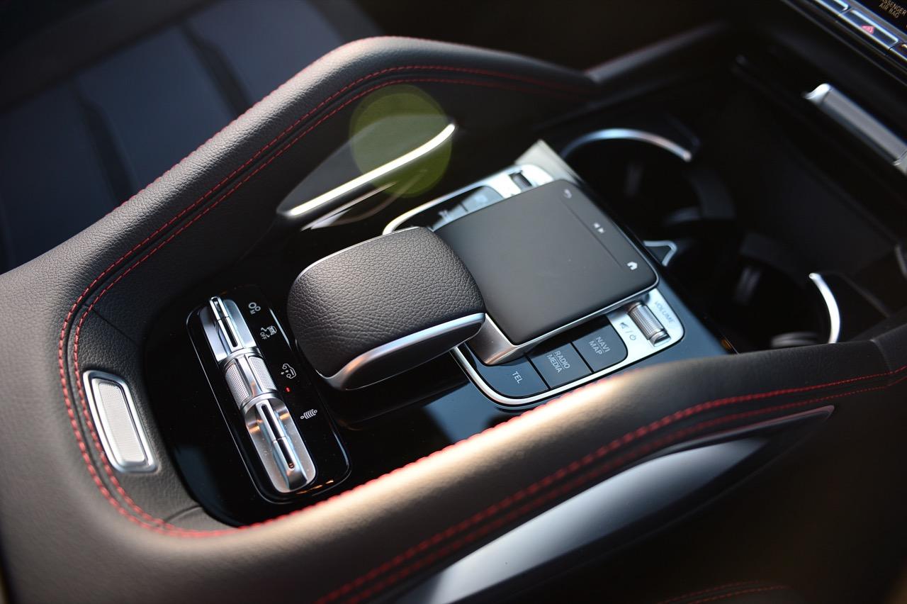 GLE 53 เพิ่มหนังและหนังกลับเป็นพิเศษทั่วทั้งห้องโดยสาร พวงมาลัยเฉพาะของ AMG พร้อมสมรรถนะที่ฝังอยู่ในระบบอินโฟเทนเมนต์ MBUX ใหม่ จับคู่กับแทร็กแพดแบบ Apple แทนปุ่มหมุนและปุ่มตัวเลขที่หมุนออก ผู้ใช้สามารถแตะ เลื่อน จีบนิ้ว และเลื่อน เหมือนกับอินพุตที่สั่งการสมาร์ทโฟนของคุณ และแม้ว่าปุ่มหมุนแบบหมุนจะเป็นวิธีที่เราชอบในการควบคุมอินเทอร์เฟซ (แต่ก็ยังเป็นเช่นนั้น) แทร็กแพดใหม่นี้ใช้งานง่ายพอที่จะใช้งานได้ทันที ผมชอบ iDrive ของ BMW ที่มีแถวของปุ่มทางลัดที่ตั้งโปรแกรมได้แปดปุ่ม แต่การเรียนรู้ MBUX ใหม่ และเมนูวางในแนวนอนพร้อมปุ่มขนาดใหญ่ มันคล้ายกับอินเทอร์เฟซของ Lexus ที่ใช้แทร็กแพดเช่นกัน แต่ MBUX นั้นซับซ้อนน้อยกว่า หน้าจอไม่โอเวอร์โหลด และระดับความไวในการป้อนข้อมูลนั้นลื่นไหลและสม่ำเสมอกว่า