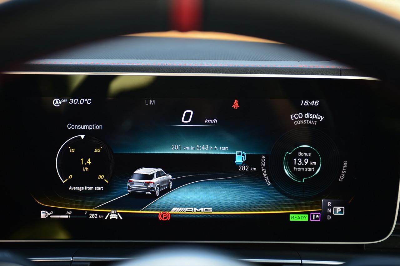 เช่นเดียวกับสปอร์ตซาลูนสายหล่ออย่าง CLS 53 4Matic + ระบบไฮบริดเสริม 48 โวลต์ มีจุดเด่นหลายประการ มันให้พลังงานแก่อุปกรณ์อิเล็กทรอนิกส์ของรถ ทำหน้าที่เป็นทั้งมอเตอร์สตาร์ตและไดชาร์จ ช่วยให้สามารถตัดการเชื่อมต่อจากชุดเกียร์ขณะเคลื่อนที่ด้วยความเร็ว ส่งพลังงานให้กับคอมแอร์ไฟฟ้าเมื่อ Auto Start/Stop ทำงาน รวมถึงการเพิ่มกำลังอีก 21 แรงม้า กับแรงบิด 250 นิวตันเมตร (184 ปอนด์-ฟุต) เทอร์โบไฟฟ้า ทำหน้าที่เป็นตัวกลางในการกำจัดอาการเทอร์โบแล็กในรอบต่ำ Mercedes-AMG แจงตัวเลขอัตราเร่งจาก 0-100 กม./ชม. ของ AMG GLE 53 ในเวลาเพียง 5.3 วินาที เร็วกว่า GLE 43 หนึ่งวินาทีเต็ม (อย่าลืมน้ำหนักรถที่ 2.3 ตัน) มันไม่ได้เร็วไปกว่า BMW X5 xDerive 45e แต่ฟีลลิ่งนั้น เหนือชั้นกว่าเอสยูวีตราใบพัดในด้านความดุดันและความโหด!
