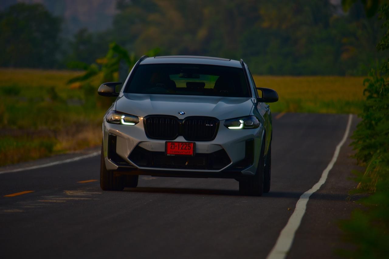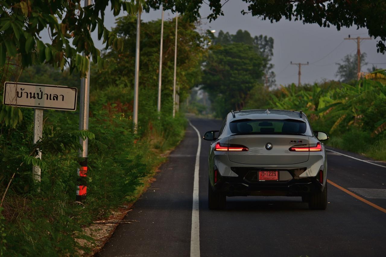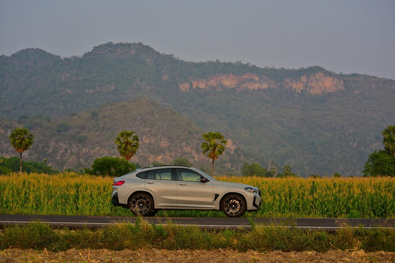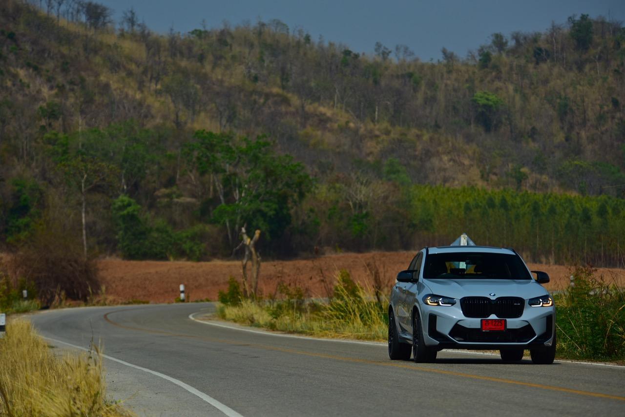 หากคุณภาพของผิวถนนอยู่ในระดับที่น่าพอใจ X4 M รุ่นนี้ จะวิ่งได้อย่างเนียนก้น หลังจากวิ่งอยู่ใน กทม. สามสี่วันก็ถึงเวลาที่จะเอาสุดหล่อเอสยูวีคันนี้ ออกไปยังเส้นทางทดสอบที่ผมเลือกใช้ สำหรับรถ M มันจะต้องมีทั้งทางคดเคี้ยวและทางตรงยาว ถนนไฮเวย์จากสุพรรณบุรี มุ่งหน้าไปอำเภอหันคาในจังหวัดชัยนาท ต่อด้วยอำเภอบ้านไร่ในอุทัยธานี คือส่วนผสมที่มีความหลากหลายของเส้นทางทดสอบในวันนี้ แชสซีที่ตึงแน่นตึบ กลายเป็นองค์ประกอบสำคัญของ X4 M Competition M ทุกองคาพยพของรถ รองรับการจัดการด้านการทำความเร็วได้อย่างน่าประหลาดใจ มันเป็น Coupe SAV ที่พยายามซ่อนจุดศูนย์ถ่วงสูงได้เป็นอย่างดี ในขณะที่เชื่อมมุมหนึ่งกับอีกมุมหนึ่งของโค้งได้อย่างน่าประทับใจ การบังคับเลี้ยวแบบปรับค่าการตอบสนองได้ของ BMW มีความตรงไปตรงมา แม่นยำและมีระยะการให้ตัวของพวงมาลัย (ระยะฟรีตรงกลาง) น้อยมาก