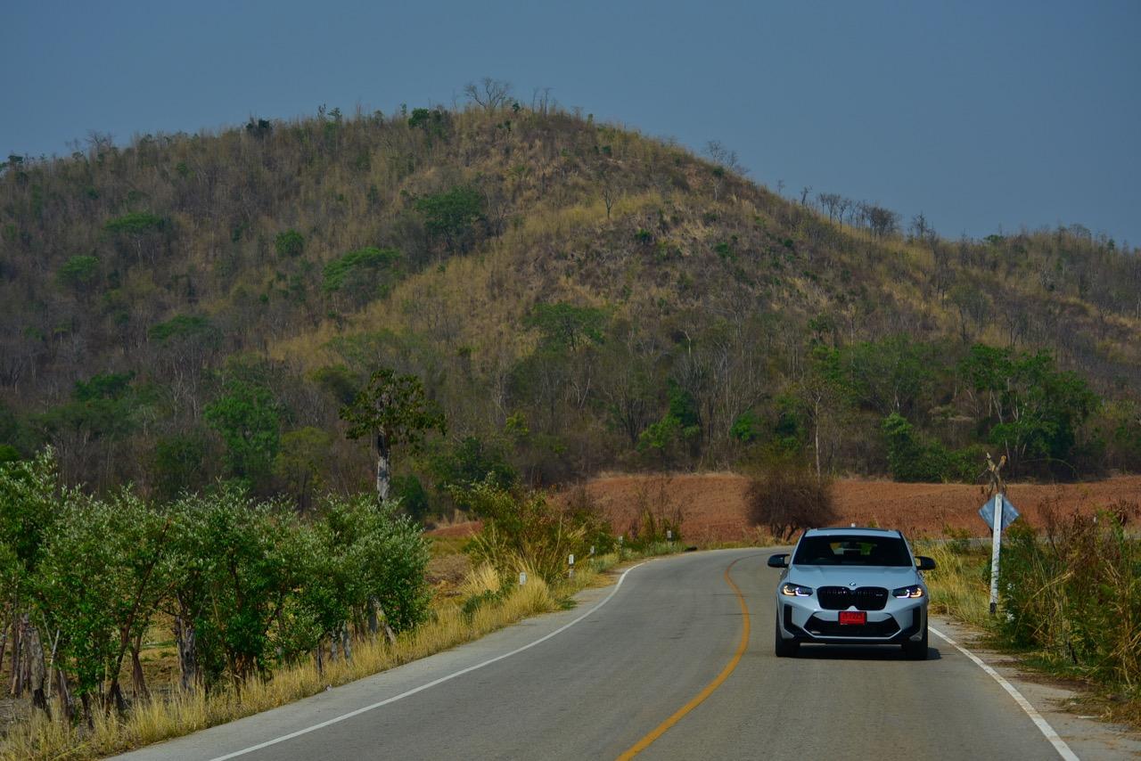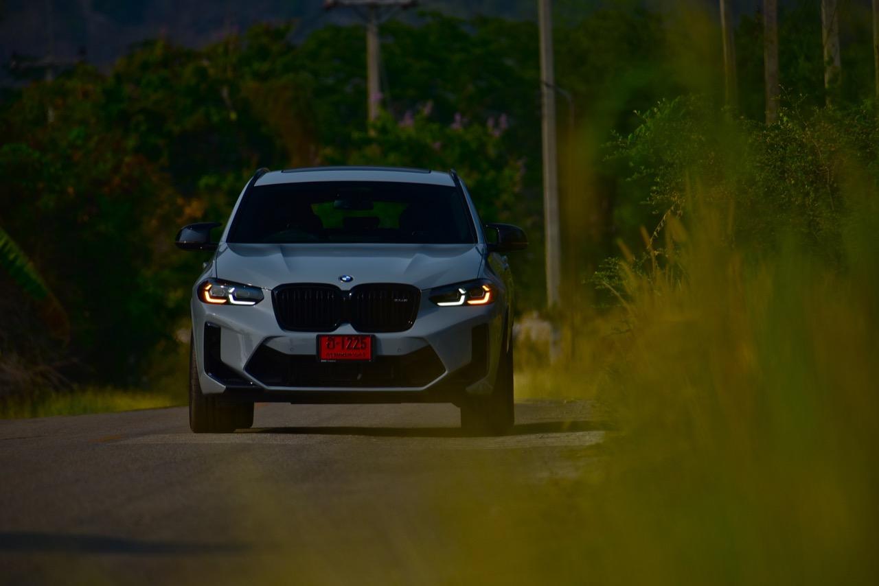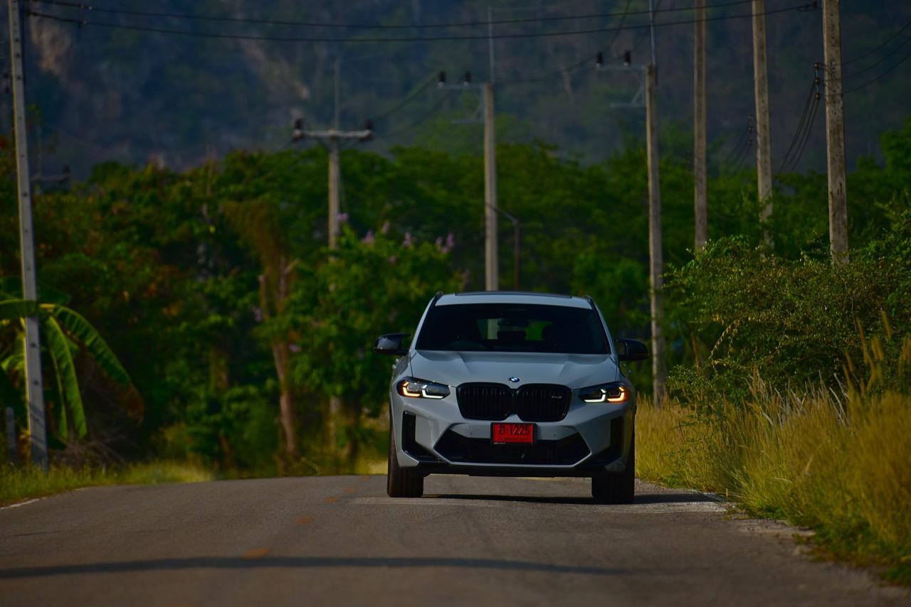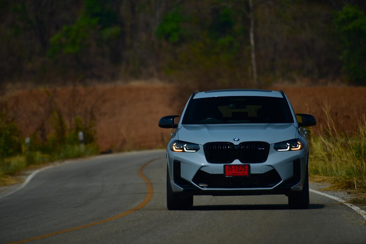 หากคุณภาพของผิวถนนอยู่ในระดับที่น่าพอใจ X4 M รุ่นนี้ จะวิ่งได้อย่างเนียนก้น หลังจากวิ่งอยู่ใน กทม. สามสี่วันก็ถึงเวลาที่จะเอาสุดหล่อเอสยูวีคันนี้ ออกไปยังเส้นทางทดสอบที่ผมเลือกใช้ สำหรับรถ M มันจะต้องมีทั้งทางคดเคี้ยวและทางตรงยาว ถนนไฮเวย์จากสุพรรณบุรี มุ่งหน้าไปอำเภอหันคาในจังหวัดชัยนาท ต่อด้วยอำเภอบ้านไร่ในอุทัยธานี คือส่วนผสมที่มีความหลากหลายของเส้นทางทดสอบในวันนี้ แชสซีที่ตึงแน่นตึบ กลายเป็นองค์ประกอบสำคัญของ X4 M Competition M ทุกองคาพยพของรถ รองรับการจัดการด้านการทำความเร็วได้อย่างน่าประหลาดใจ มันเป็น Coupe SAV ที่พยายามซ่อนจุดศูนย์ถ่วงสูงได้เป็นอย่างดี ในขณะที่เชื่อมมุมหนึ่งกับอีกมุมหนึ่งของโค้งได้อย่างน่าประทับใจ การบังคับเลี้ยวแบบปรับค่าการตอบสนองได้ของ BMW มีความตรงไปตรงมา แม่นยำและมีระยะการให้ตัวของพวงมาลัย (ระยะฟรีตรงกลาง) น้อยมาก