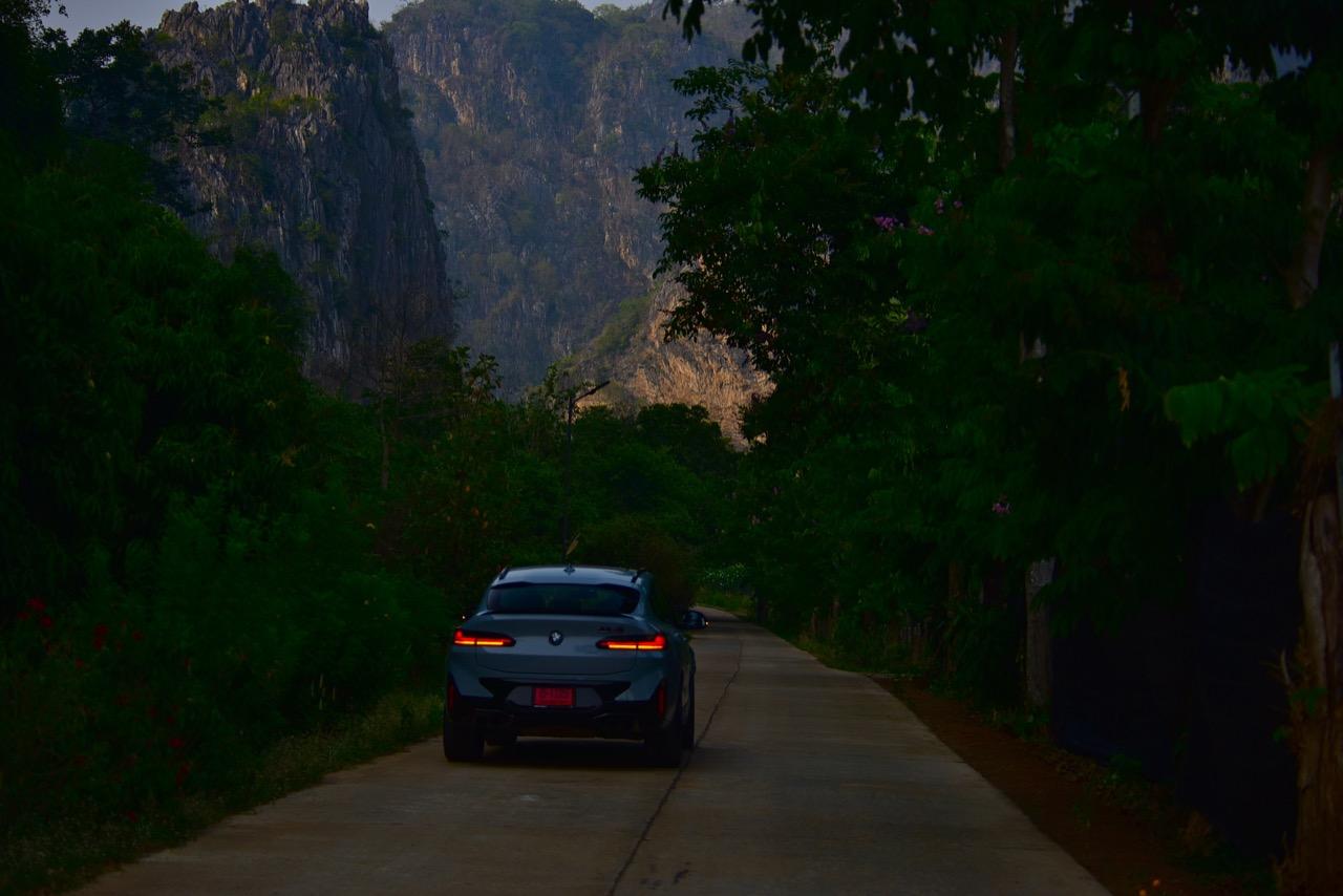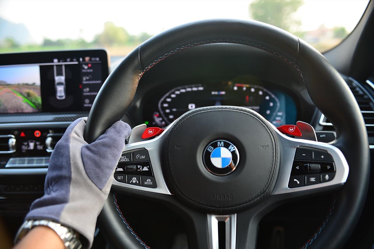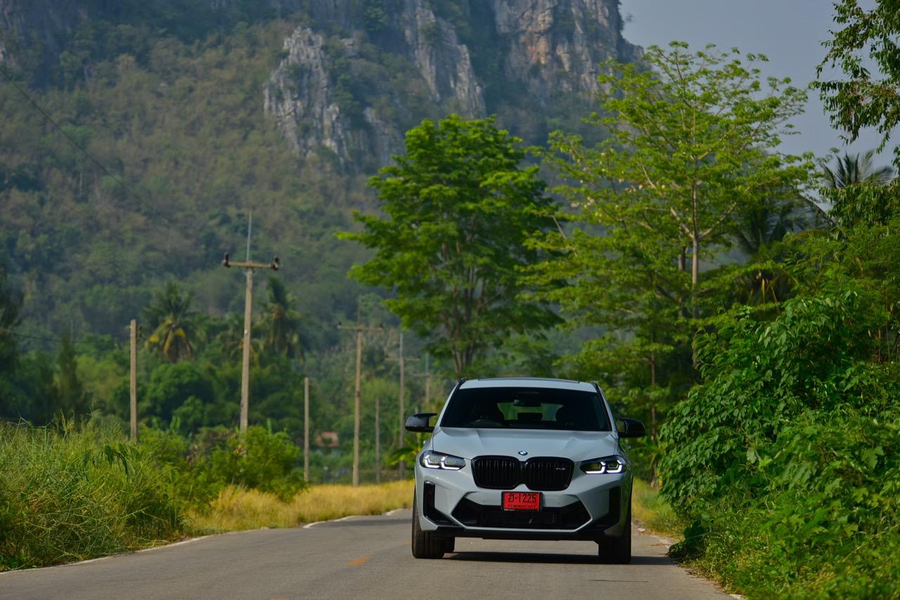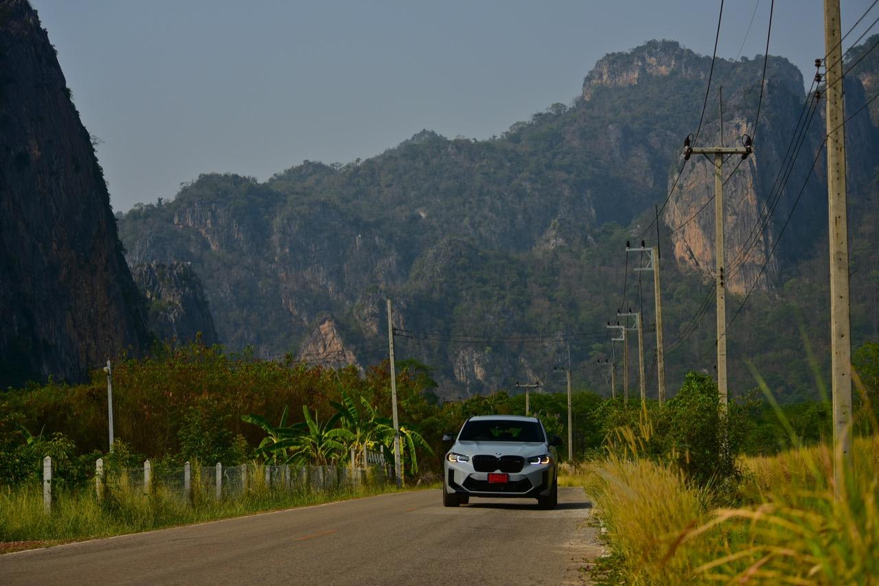 หากคุณภาพของผิวถนนอยู่ในระดับที่น่าพอใจ X4 M รุ่นนี้ จะวิ่งได้อย่างเนียนก้น หลังจากวิ่งอยู่ใน กทม. สามสี่วันก็ถึงเวลาที่จะเอาสุดหล่อเอสยูวีคันนี้ ออกไปยังเส้นทางทดสอบที่ผมเลือกใช้ สำหรับรถ M มันจะต้องมีทั้งทางคดเคี้ยวและทางตรงยาว ถนนไฮเวย์จากสุพรรณบุรี มุ่งหน้าไปอำเภอหันคาในจังหวัดชัยนาท ต่อด้วยอำเภอบ้านไร่ในอุทัยธานี คือส่วนผสมที่มีความหลากหลายของเส้นทางทดสอบในวันนี้ แชสซีที่ตึงแน่นตึบ กลายเป็นองค์ประกอบสำคัญของ X4 M Competition M ทุกองคาพยพของรถ รองรับการจัดการด้านการทำความเร็วได้อย่างน่าประหลาดใจ มันเป็น Coupe SAV ที่พยายามซ่อนจุดศูนย์ถ่วงสูงได้เป็นอย่างดี ในขณะที่เชื่อมมุมหนึ่งกับอีกมุมหนึ่งของโค้งได้อย่างน่าประทับใจ การบังคับเลี้ยวแบบปรับค่าการตอบสนองได้ของ BMW มีความตรงไปตรงมา แม่นยำและมีระยะการให้ตัวของพวงมาลัย (ระยะฟรีตรงกลาง) น้อยมาก