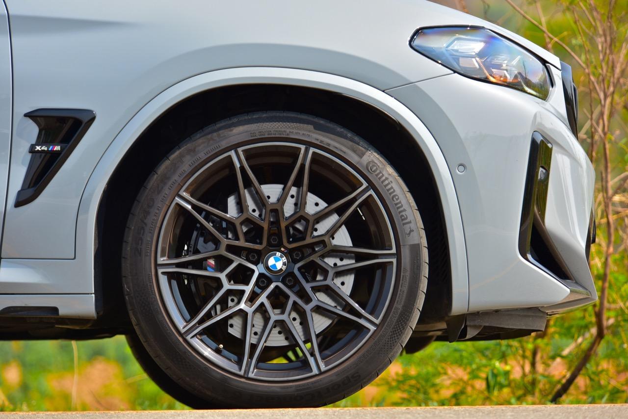 ล้อและยางเป็นส่วนสำคัญของไดนามิกในรถยนต์สมรรถนะสูง BMW X4 M Competition ก็ไม่มีข้อยกเว้น ล้อ M ขนาด 21 นิ้ว พร้อมยางสมรรถนะสูงแบบ non-runflat ขนาด 255/40ZR21 ที่ด้านหน้า และ 265/40ZR21 ที่ด้านหลัง ล้อ M ฟอร์จ Star-Spoke Jet Black Style 892M รุ่นใหม่ ลดน้ำหนักได้มากกว่า 2 กิโลกรัมต่อล้อ