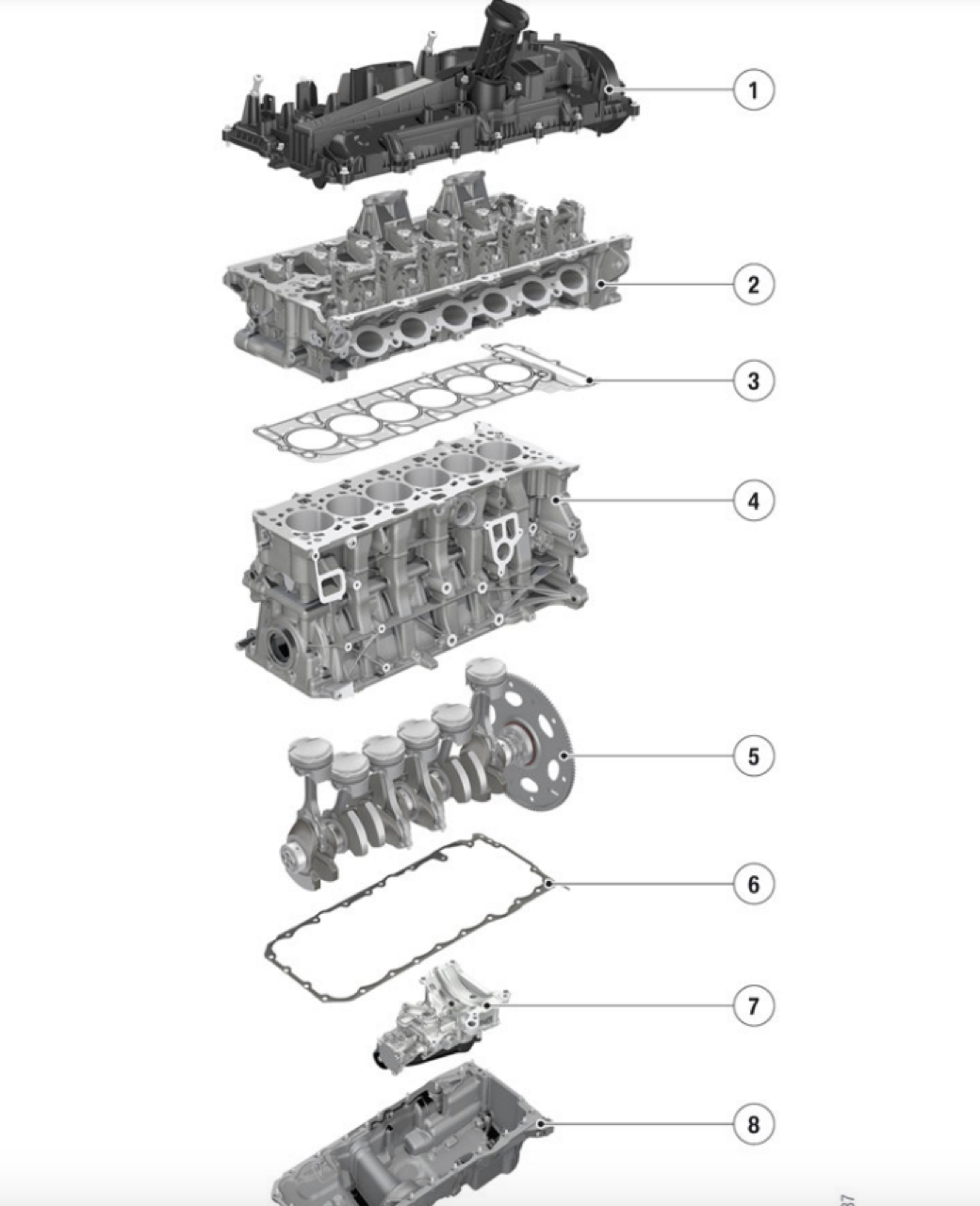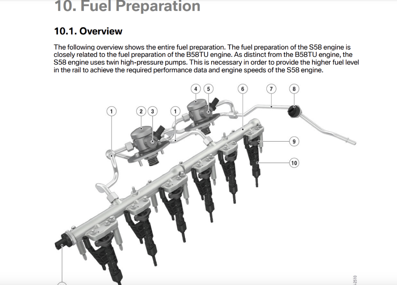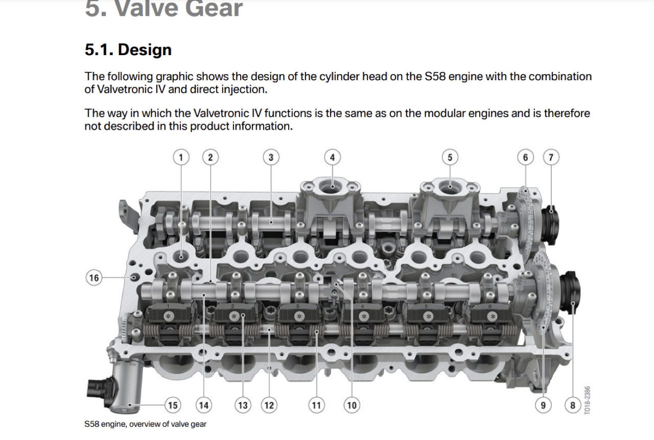 เทคโนโลยีการพิมพ์ 3 มิติ ทำให้น้ำหนักของแกนฝาสูบลดลง โครงท่อน้ำหล่อเย็น ได้รับการปรับปรุงในแง่ของการจัดการอุณหภูมิ เทคโนโลยีระบบอัดอากาศ M TwinPower Turbo ประกอบด้วยเทอร์โบชาร์จเจอร์แบบ mono-scroll สองตัว จ่ายอากาศอัดไปยังกระบอกสูบ 1-3 และ 4-6 ตามลำดับ เอาต์พุตของย่านกำลัง ได้รับการปรับปรุงเพิ่มเติม โดยใช้คอมเพรสเซอร์และการระบายความร้อนด้วยอากาศวงจรอุณหภูมิต่ำ การกำหนดเส้นทางอากาศเข้าที่ปรับแต่งให้เหมาะสมต่อการไหล ช่วยให้มั่นใจได้ถึงการสูญเสียแรงดันที่ลดลง ในขณะที่มลพิษถูกควบคุมด้วยระบบไฟฟ้า ทำปฏิกิริยาอย่างรวดเร็ว ช่วยเพิ่มการตอบสนอง วาล์วระบายที่เปิดออกอย่างรวดเร็ว รองรับประสิทธิภาพของแคตตาไลติกคอนเวอร์เตอร์ซึ่งวางตำแหน่งใกล้กับเครื่องยนต์ แรงดันระบบฉีดเชื้อเพลิงสูงสุด 5,076 psi ระบบไดเรคอินเจคชั่น มีความแม่นยำสูง สามารถเตรียมส่วนผสมเชื้อเพลิงได้อย่างมีประสิทธิภาพ การทำให้เชื้อเพลิงฉีดพ่นเป็นละอองอย่างละเอียดในห้องเผาไหม้ ให้การตอบสนองที่ดีขึ้น โดยเฉพาะอย่างยิ่ง ภายใต้ภาระการเร่งความเร็วอย่างเต็ม และในย่านความเร็วสูง ระบบควบคุมวาล์วแปรผัน VALVETRONIC และระบบปรับเพลาลูกเบี้ยวแบบแปรผันต่อเนื่อง double VANOS มีการปรับค่าการทำงานให้สอดคล้องกับรอบเครื่องยนต์ได้ดีกว่าเดิม