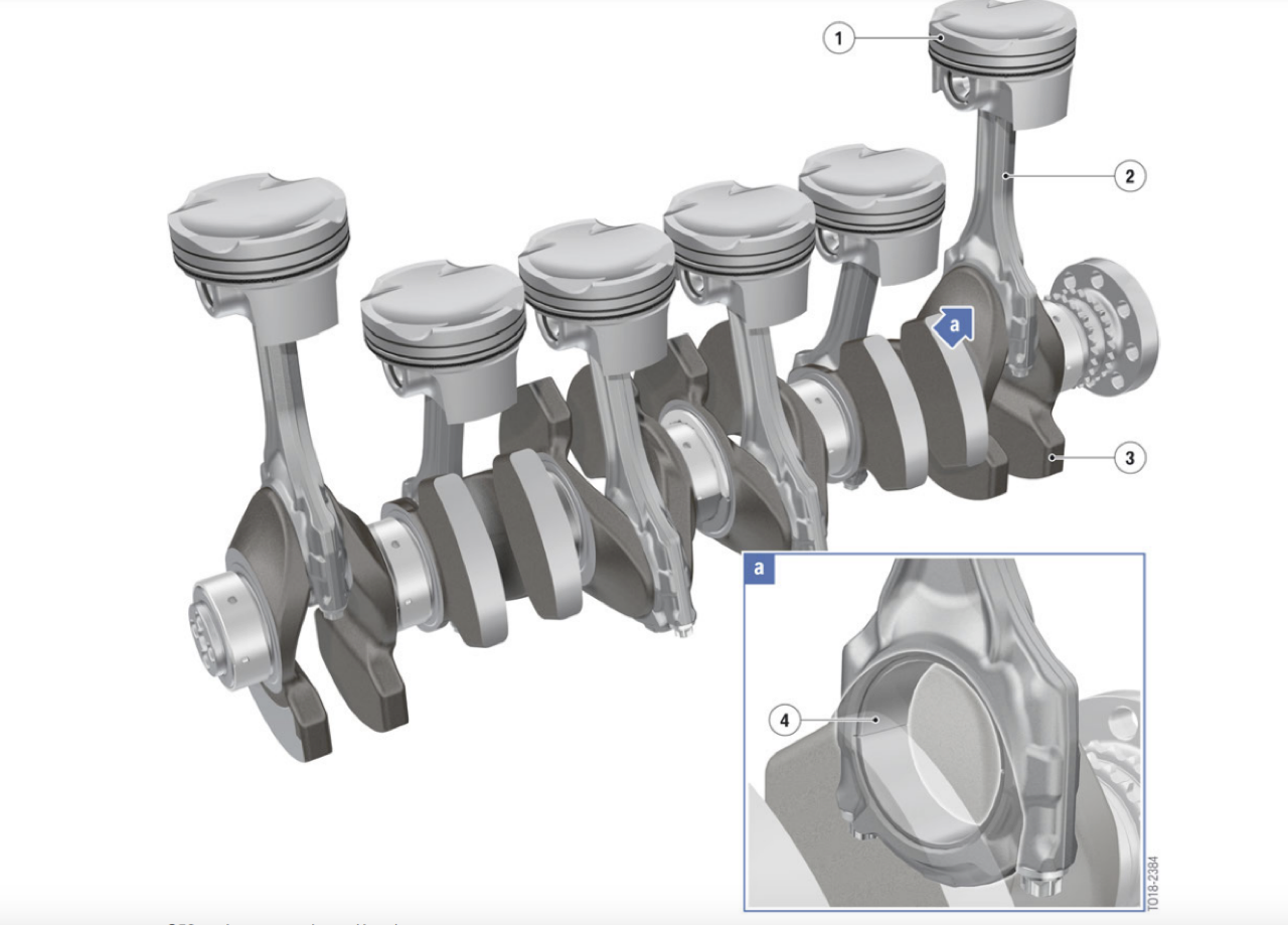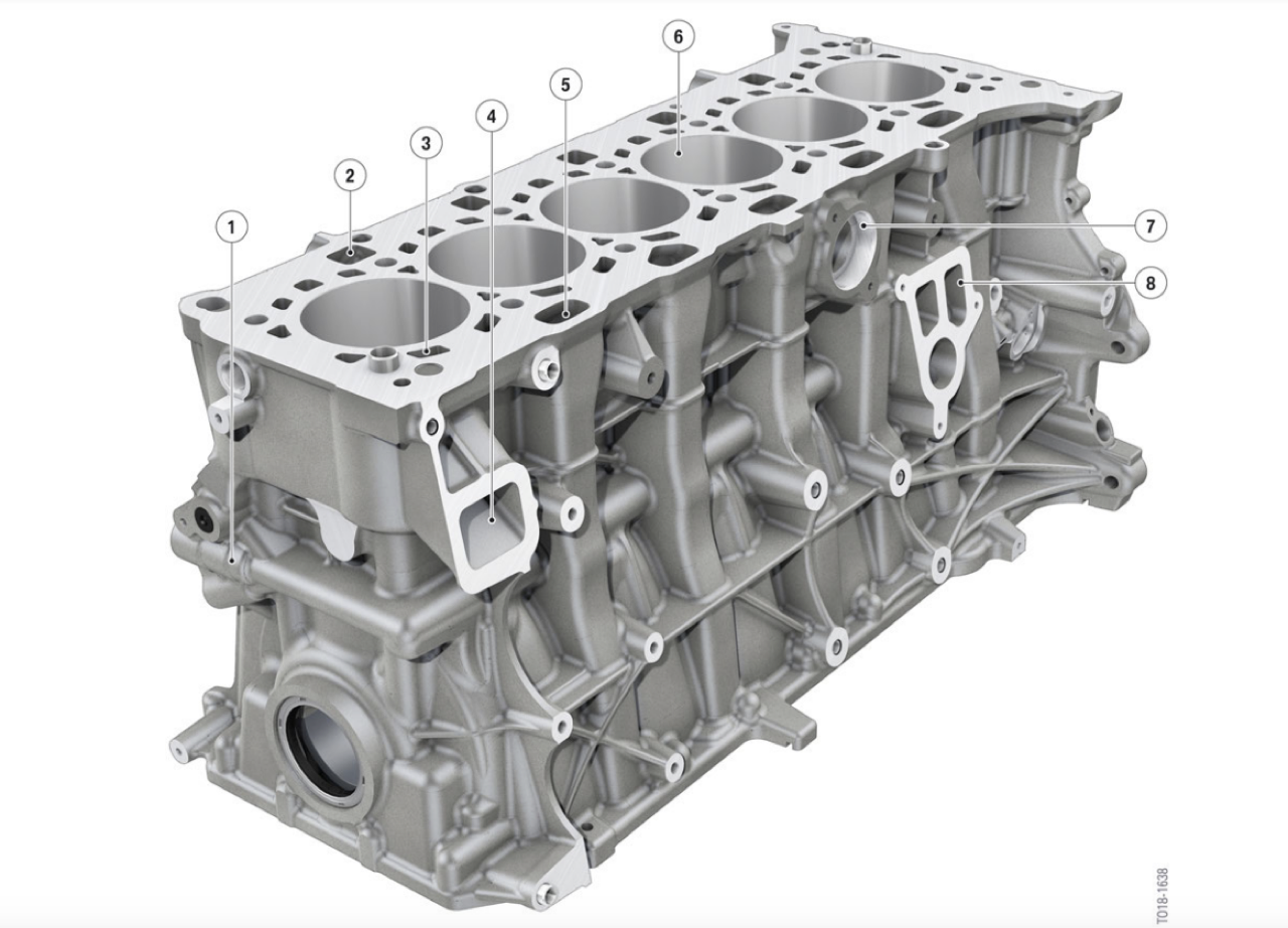 เครื่องยนต์ 6 สูบแถวเรียง ใช้เพลาข้อเหวี่ยงน้ำหนักเบาหล่อขึ้นรูป การออกแบบผนังกระบอกสูบและท่อทางเดินของระบบหล่อเย็นที่เน้นความแข็งแกร่งทนทาน เพลาข้อเหวี่ยงและก้านสูบ เลือกวัสดุที่ทนต่อแรงบิดแรงเค้น ช่วยให้สามารถส่งค่าแรงบิดที่สูงขึ้นได้ เพลาข้อเหวี่ยงน้ำหนักเบา ด้วยมวลการหมุนที่ลดลง ส่งผลดีต่อความสามารถในการหมุนของเครื่องยนต์ ห้องข้อเหวี่ยง ออกแบบให้มีความแข็งแรงมากยิ่งขึ้น เนื่องจากมีแรงดันจากการเผาไหม้สูง เพื่อกำลังขับเคลื่อนที่เหมาะสม การเคลือบโลหะที่ผนังกระบอกสูบ ใช้การพ่นด้วยลวดอาร์ค ช่วยลดน้ำหนักและลดการสูญเสียแรงที่เกิดจากการเสียดทาน ในขณะที่ฝาสูบมีแกนที่ผลิตโดยระบบพิมพ์ 3 มิติ กระบวนการผลิตแบบเติมแต่ง สามารถสร้างรูปทรงเรขาคณิตที่ซับซ้อน และไม่สามารถทำได้โดยใช้วิธีการหล่อโลหะทั่วไป