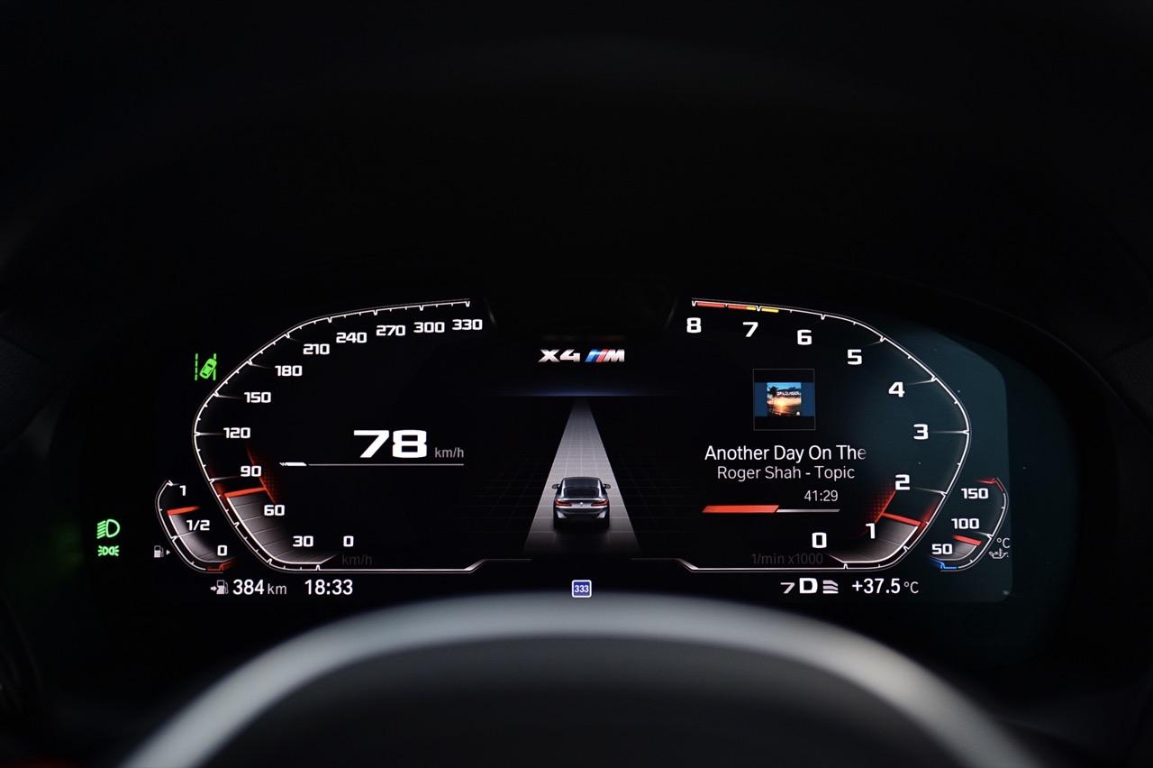 เครื่องยนต์ S58 ที่ได้รับการปรับปรุง ซึ่งเป็นเครื่องเดียวกับที่ประจำการอยู่ใน M3 G80 และ M4 G82 แสดงคุณสมบัติของการปลดปล่อยพลังงานกับแรงบิดที่น่าอัศจรรย์ คุณจะพบกับพลังกระชากที่รุนแรงต่อเนื่องเมื่อกดคันเร่งลงจนสุด ความยืดหยุ่นโดยรวมทำให้ M Car รุ่นนี้ มีศักยภาพหรือความสามารถในการขับเคลื่อนระดับสูง เมื่อโหมด Road ถูกเปลี่ยนไปเป็น Sport บนถนนโล่งๆ เครื่องยนต์หกสูบเรียงเทอร์โบชาร์จคู่ ทำงานอย่างขยันขันแข็ง ให้แรงบิดช่วงกลางขนาดมโหฬารไปจนสุดปลายรอบ เครื่อง S58 หมุนด้วยความกระตือรือร้นจนถึงขีดแดงหรือเรดไลน์ ที่ 7,200 รอบต่อนาที จากคันเร่งที่ตอบสนองอย่างว่องไว ทุกส่วนของรถ ถูกปรับตั้งมาเป็นอย่างดี ทำให้ฟีลลิ่งที่ได้รับนั้นนับว่าสุดยอด BMW X4 M Competition หนัก 2 ตัน ทำเวลา 0–100 กม./ชม. เพียง 3.9 วินาที เมื่อเปรียบเทียบกับ Macan GTS ที่ปรับโฉมไปเมื่อเร็วๆ นี้ ซึ่งใช้เครื่องยนต์เบนซิน V6 เทอร์โบคู่ ขนาด 324 กิโลวัตต์ ความจุ 2.9 ลิตร ของ Porsche มีอัตราเร่งอย่างเป็นทางการ 0–100 กม./ชม. ที่ 4.3 วินาที สำหรับความเร็วสูงสุดของ X4 M Competition ถูกจำกัดไว้ที่ 250 กม./ชม. เมื่อควักเพิ่มกับออปชัน BMW M Driver’s Package ระบบจะปลดล็อกความเร็วให้ทะยานไปได้ถึง 285 กม./ชม.