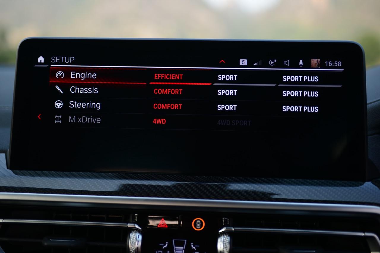 เมื่อเปิดใช้งานโหมด M Dynamic แทนการตั้งค่า DSC โดยเปิดใช้งานการตั้งค่า M xDrive - 4WD Sport จะส่งผลให้มีการกระจายกำลังที่มุ่งสู่ล้อหลังมากยิ่งขึ้น ทำให้สามารถควบคุมการดริฟต์ได้หากมีฝีไม้ลายมือมากพอ แรงบิดในการขับเคลื่อนจะกระจายอย่างต่อเนื่อง และแปรผันเต็มที่ระหว่างล้อหน้าและล้อหลัง โดยคลัตช์หลายแผ่น ที่ควบคุมด้วยระบบอิเล็กทรอนิกส์ของกล่องเกียร์ จากนั้นตามด้วย Active M Differential เฟืองท้ายที่สอดรับกับการทำงานของระบบขับเคลื่อนสี่ล้อ ทำให้มั่นใจได้ถึงแรงยึดเกาะ ความคล่องตัว และเสถียรภาพในการขับที่ต้องใช้ความเร็วสูงต่อเนื่อง โดยเฉพาะอย่างยิ่ง ในการใช้งานแบบสปอร์ตหรือบนถนนที่มีระดับการยึดเกาะที่แตกต่างกัน การแทรกแซงของระบบควบคุมเสถียรภาพ DSC จะทำงานเท่าที่จำเป็นในสถานการณ์ที่รุนแรงเท่านั้นที่ระบบรักษาเสถียรภาพของตัวรถจะเข้ามายุ่มย่ามเพื่อดึงรถให้กลับเข้ามาอยู่ในเส้นทาง