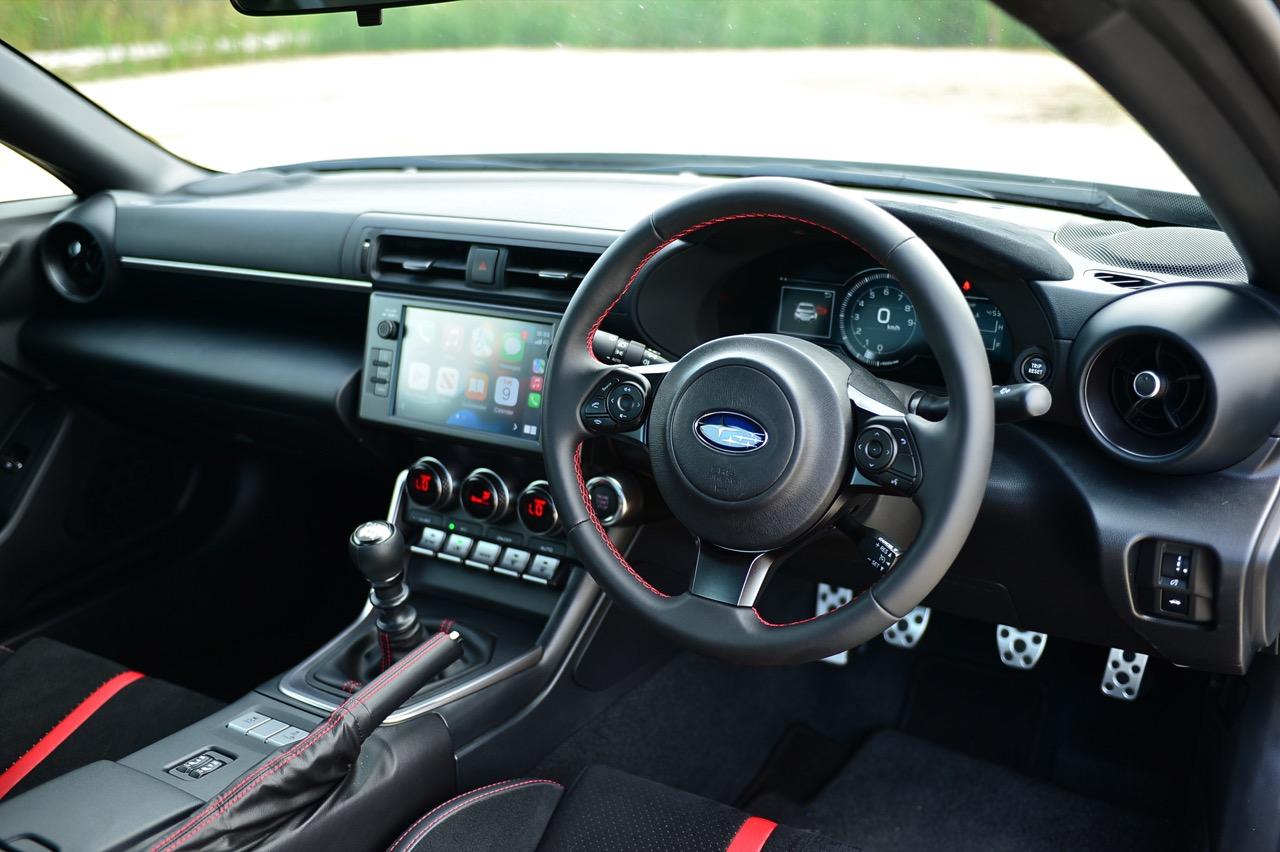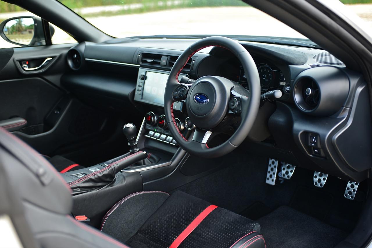 BRZ จะทำให้คุณรู้สึกดีเมื่อเอาออกไปขับทางไกล เพราะไม่ต้องมานั่งเหยียบคลัตช์ยัดเกียร์กันบ่อยครั้งเหมือนขับในเมือง คันเกียร์อยู่ในตำแหน่งที่เหมาะสม จับถนัดมือและให้ความรู้สึกย้อนไปถึงรถสปอร์ตในยุค 80 สัดส่วนภายนอกนั้นสมบูรณ์แบบ การจัดวางภายในก็ดี แม้จะเล็กแต่ตำแหน่งที่นั่งก็เหมาะสมกับการควบคุมอย่างที่สุด เบาะปรับมือเหมาะสมการเป็นทั้งรถบ้านและรถสนาม ไม่มีโหมดเพื่อปรับตั้งการทำงานของเครื่องยนต์และการตอบสนองของเกียร์เหมือนรุ่นเกียร์อัตโนมัติที่มีปุ่มปรับโหมดมาให้ ระบบช่วยบังคับเลี้ยวแบบอิเล็กทรอนิกส์ติดอยู่กับล้อขนาดเล็ก ให้ความรู้สึกสบายจากยางหน้าที่ไม่กว้างมากจนเกินไป แต่เสียงยางก็ทำให้รู้สึกรำคาญได้เหมือนกัน พวงมาลัยสามก้านแบบสปอร์ตมีขนาดที่เล็กจนรู้สึกได้ ถ้าคุณเคยชินกับพวงมาลัยของรถคูเป้ฝั่งยุโรป คุณจะรู้สึกว่า พวงมาลัยใหม่ของ BRZ 2022 นั้นใหญ่กว่ารถโกคาร์ทนิดเดียว ด้วยพวงมาลัยที่เล็ก ทำให้การควบคุมโดยเฉพาะองศาของการหมุนมีความฉับไวมากเป็นพิเศษ ขยับนิดเดียว หน้ารถก็ไปตามทิศทางที่ต้องการ แต่ในย่านความเร็วสูง พวงมาลัยที่เล็กกะทัดรัดทำให้ต้องระวังในเรื่องของการเปลี่ยนทิศทางเร็วๆ อยู่เหมือนกัน