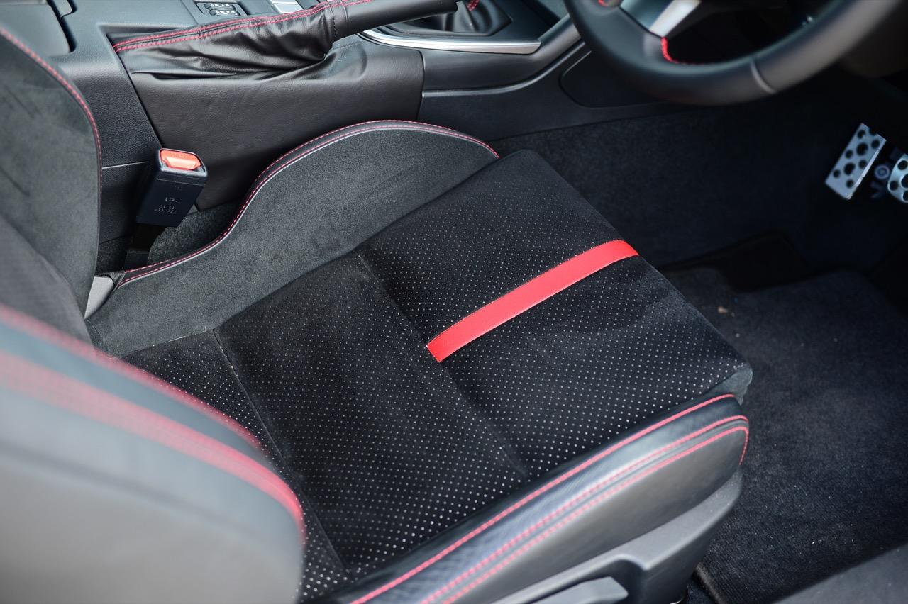 ・เบาะนั่งแบบสปอร์ตที่เข้ารูปพร้อมหมอนหนุนด้านข้างที่มั่นคงจะสื่อสารการเคลื่อนไหวของรถได้อย่างแม่นยำในขณะที่ลดความเมื่อยล้าของผู้ขับขี่