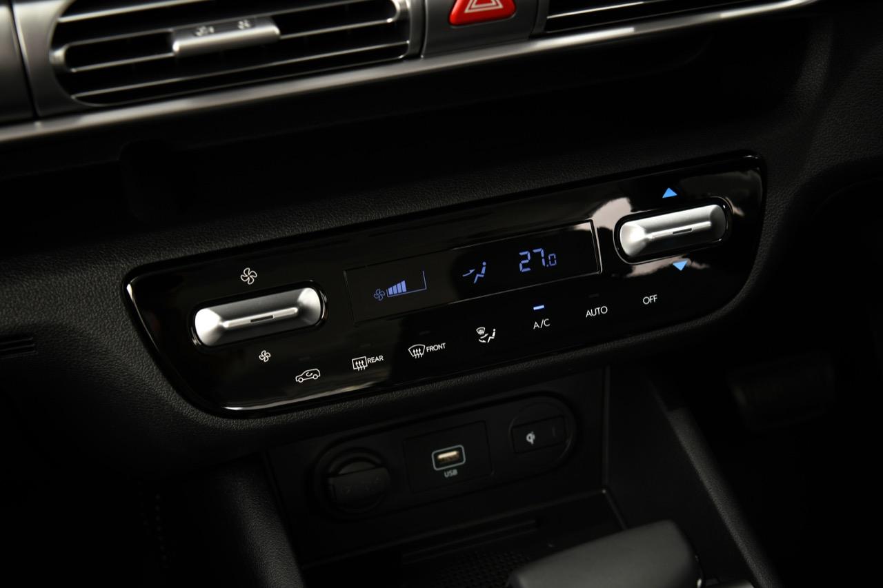 แดชบอร์ดคอนโซนกินพื้นที่เยอะพอสมควรเนื่องจากด้านหน้าที่ออกแบบให้สั้นและเทลาดเพื่อความลู่ลม กึ่งกลางของแดชบอร์ดตกแต่งด้วยพลาสติกสีเงิน ช่องแอร์ทรงเหลี่ยม ชุดควบคุมอุณหภูมิแบบดิจิตอล ช่องเชื่อมต่อ USB Type A ที่ชาร์จโทรศัพท์แบบ Wireless Charger มีพัดลมระบายความร้อนช่วยลดอุณหภูมิของโทรศัพท์ขณะชาร์จ แดชบอร์ดและคอนโซลทำจากพลาสติกฉีดขึ้นรูปสีดำ ช่องแอร์บนเพดานพร้อมสวิชท์ปรับความแรงของพัดลมแอร์โซนหลัง
