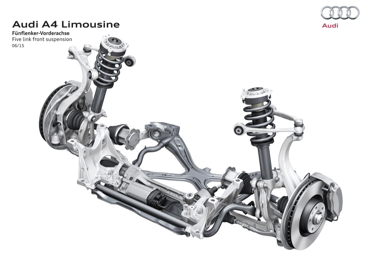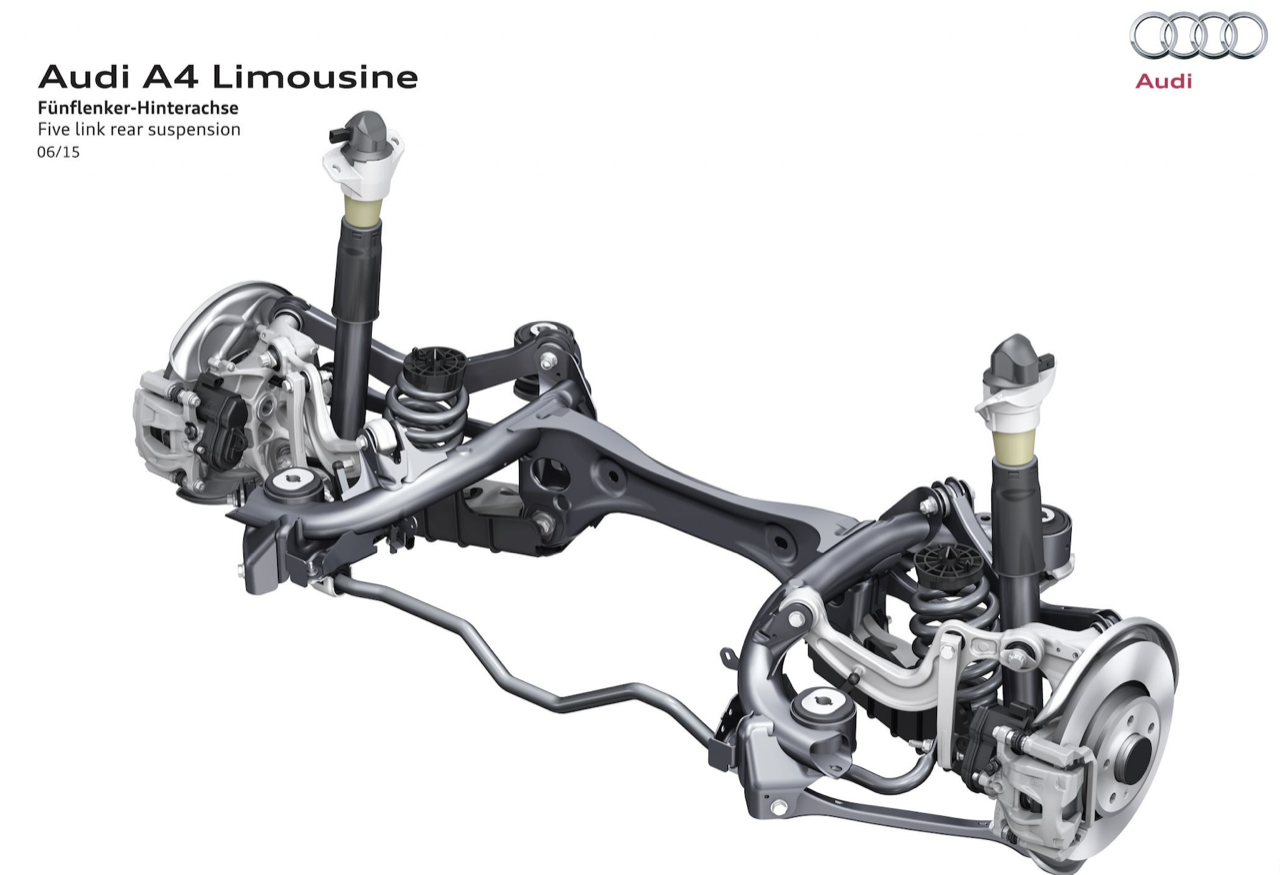 เทอร์โบแบบ Twin Scroll อัดอากาศด้วยแรงดัน 0.8 บาร์ น้อยกว่าเทอร์โบของ A4 Avant รุ่น 45 TFSI ที่มีแรงดัน 1.4 บาร์อยู่พอสมควร กลไกของระบบวาล์วแปรผัน Audi valvelift system คอยปรับเปลี่ยนองศาของการเปิดวาล์วได้มากถึง 60 องศา ส่วนวาล์วไอเสียแปรผันได้ 30 องศา ระบบเพลาราวลิ้นของเครื่องยนต์ตัวนี้จะคอยปรับเปลี่ยนองศาของวาล์วไอเสียให้มีความสัมพันธ์กับรอบเครื่องยนต์เป็นหลัก โดยปรับระยะของการเปิดวาล์วเพื่อระบายไอเสียออกจากห้องเผาไหม้ได้อย่างรวดเร็ว ระบบส่งกำลังหรือเกียร์ของ A4 40TFSI เป็นเกียร์ออโต้คลัตช์คู่แบบ 7 สปีด S-Tronic ช่วงล่างหน้าแบบดับเบิ้ลวิชโบนปีกนกคู่ ด้านหลังมัลติลิงก์