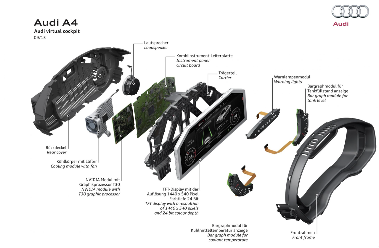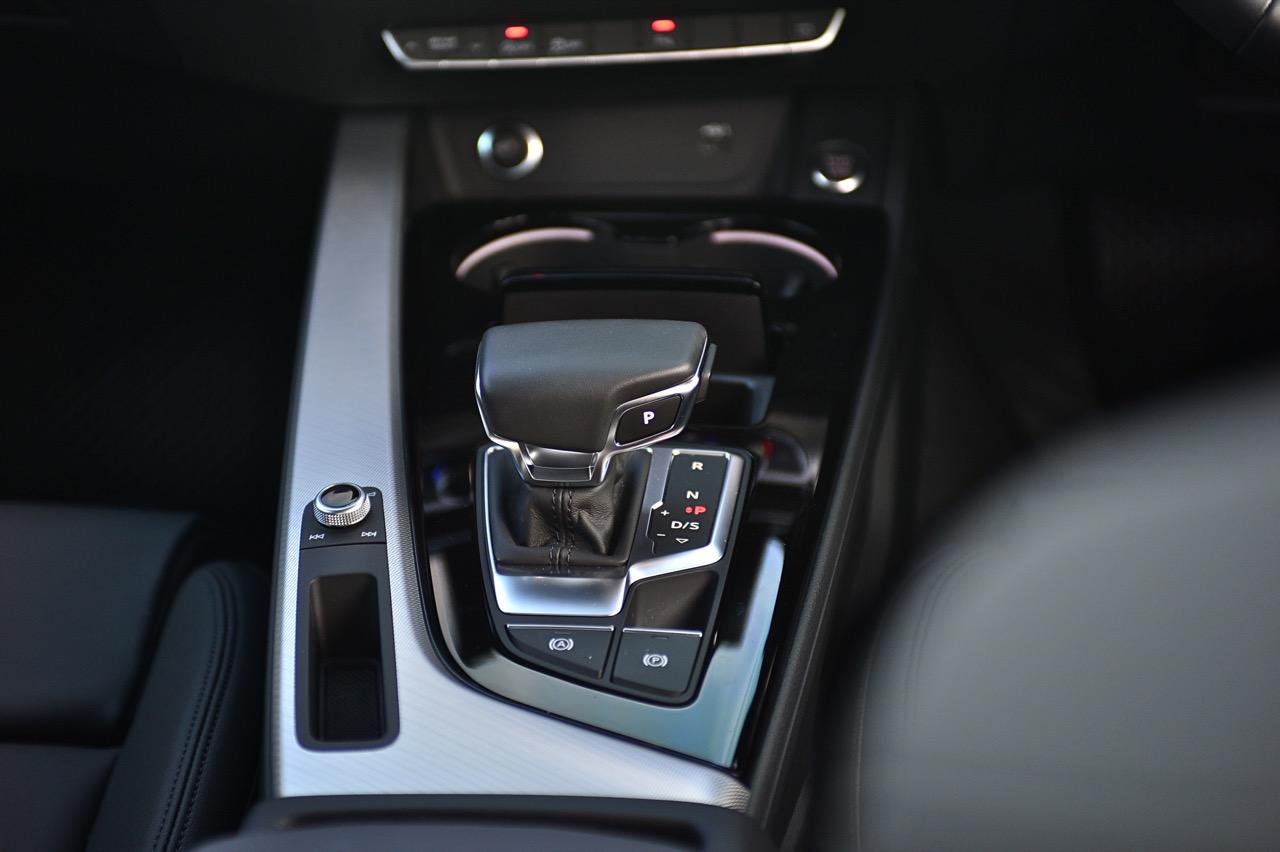 คันเกียร์และซุ้มเกียร์ อยู่ในตำแหน่งที่ดีเพื่อความสะดวกในการใช้งาน จอกลาง รองรับการทำงานทั้งในส่วนของระบบมัลติมีเดีย เชื่อมต่อโทรศัพท์ วิทยุ หรือเล่นแอพยอดนิยม MMI Radio plus พร้อมหน้าจอแบบสัมผัส (MMI touch) ระบบเครื่องเสียงของ Audi รุ่นนี้เป็นแบบธรรมดาแต่ลองฟังแล้วให้มิติของเสียงเพลงครบถ้วน ลำโพงทั้งใหญ่และเล็กมาให้ถึง 10 ตัว หัวเกียร์รูปทรงประหลาดคล้ายคันเร่งของเรือเร็ว เป็นหัวเกียร์ทรงเหลี่ยมทำจากอัลลอยพร้อมกับหุ้มด้วยหนังแท้ ช่องวางแก้วน้ำออกแบบได้ดี