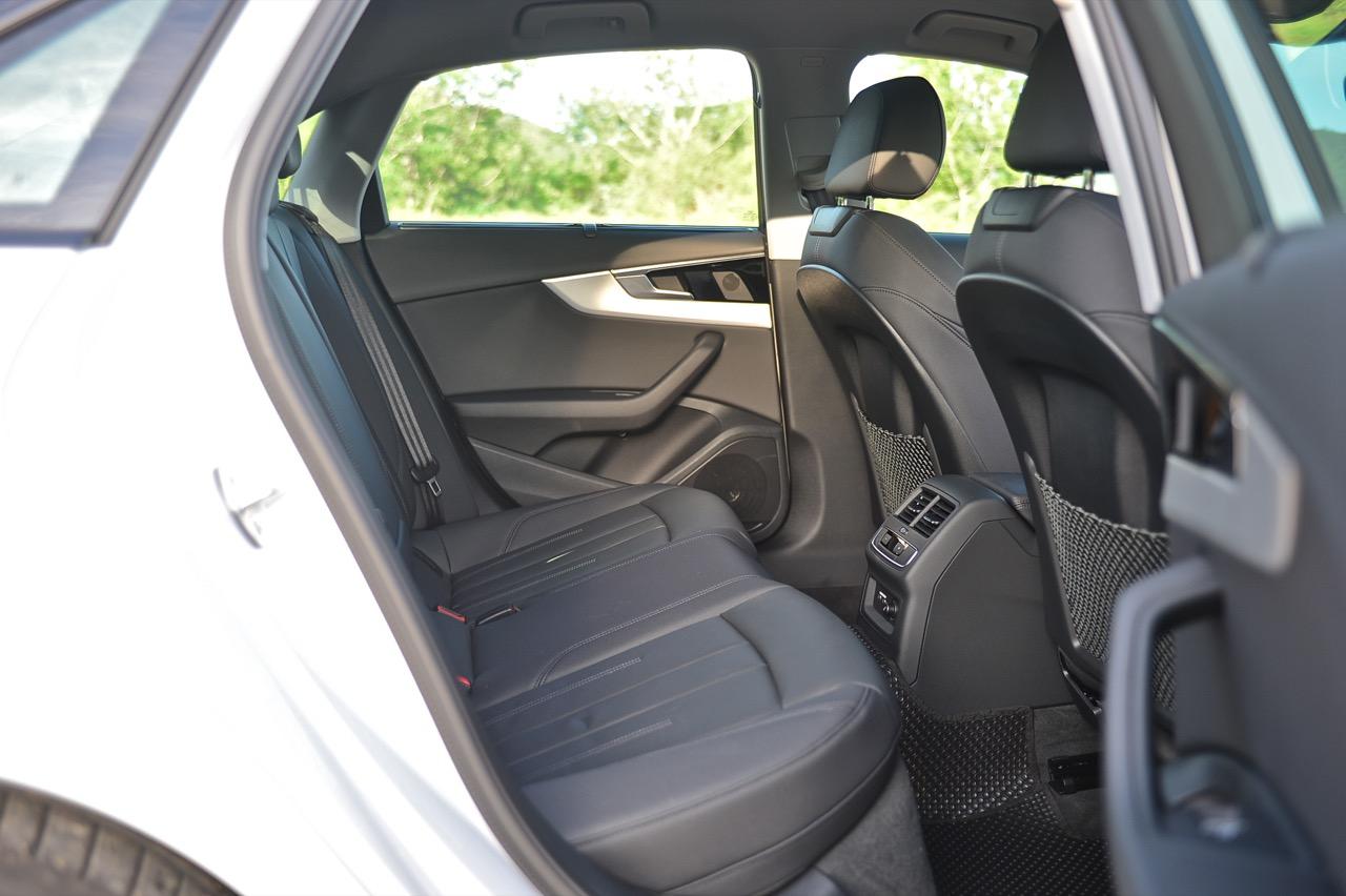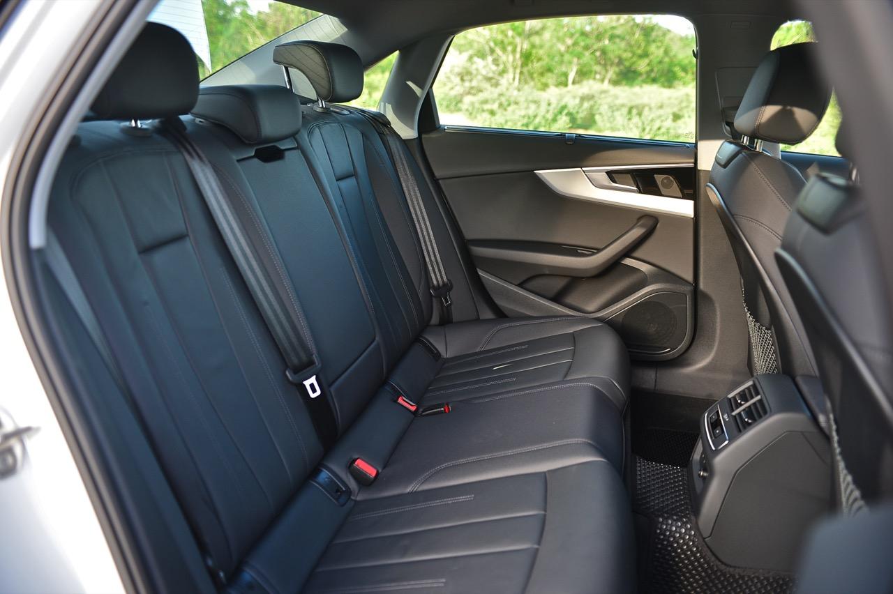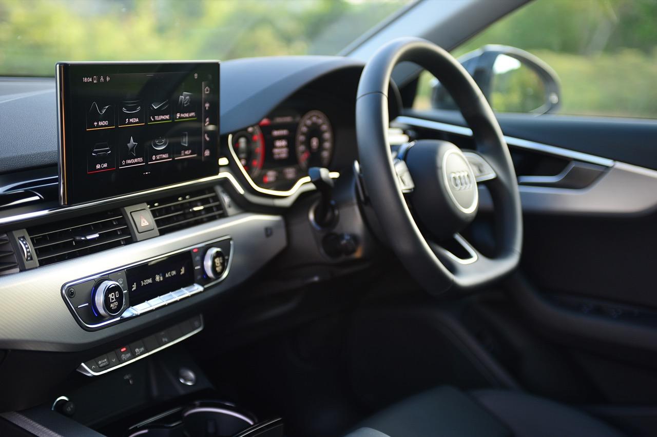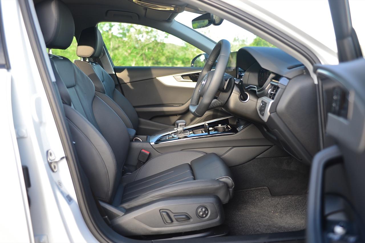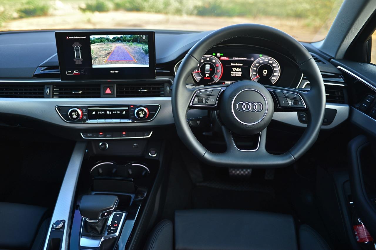 ภายในของ A4 Facelift มีการปรับปรุงเพื่อยกระดับความทันสมัย กราฟิกของระบบสาระบันเทิงที่ได้รับการปรับเปลี่ยนนั้นเหมือนกับพี่น้องสี่ห่วงยุคใหม่ปี 2023 เมนูใช้งานแยกย่อย จัดวางอย่างมีเหตุผล จอภาพมาตรวัด ขนาด 12.3 นิ้ว เวอร์ชันล่าสุด ปรับเปลี่ยนการแสดงผลได้อย่างหลากหลาย คุณภาพของวัสดุที่สัมผัสได้และงานประกอบทั่วทั้งห้องโดยสารนั้นอยู่ในระดับสูงอย่างน่าพึงพอใจเมื่อเทียบกับราคา 2.6 ล้าน A4 รุ่นปรับปรุง Connect กับฟังก์ชั่นออนไลน์ที่นิยมใช้งานกันในยุคนี้ แดชบอร์ดคอนโซลเน้นเหลี่ยมมุมที่ลงตัว ตัดขอบด้วยพลาสติกสีดำเงากับชิ้นงานอัลลอยสีเงิน ชุดควบคุมระบบปรับอากาศที่คุ้นเคย พร้อมระบบแอร์แบบสามโซน (รวมช่องแอร์และการปรับตั้งอุณหภูมิของเบาะผู้โดยสารตอนหลัง S Line iCon Black จัดเบาะไฟฟ้าคู่หน้าแบบสปอร์ต เบาะคนขับมีหน่วยความจำเพื่อเพิ่มความสะดวกในการใช้งาน เบาะหลังแบบสามที่นั่งแต่นั่งสองคนจะสบายตัวมากกว่า พื้นที่เหนือศีรษะและพื้นที่วางขาของเบาะหลังมีพอเพียง สำหรับช่องเชื่อมต่อ USB ให้มาทั้ง Type A และ C
