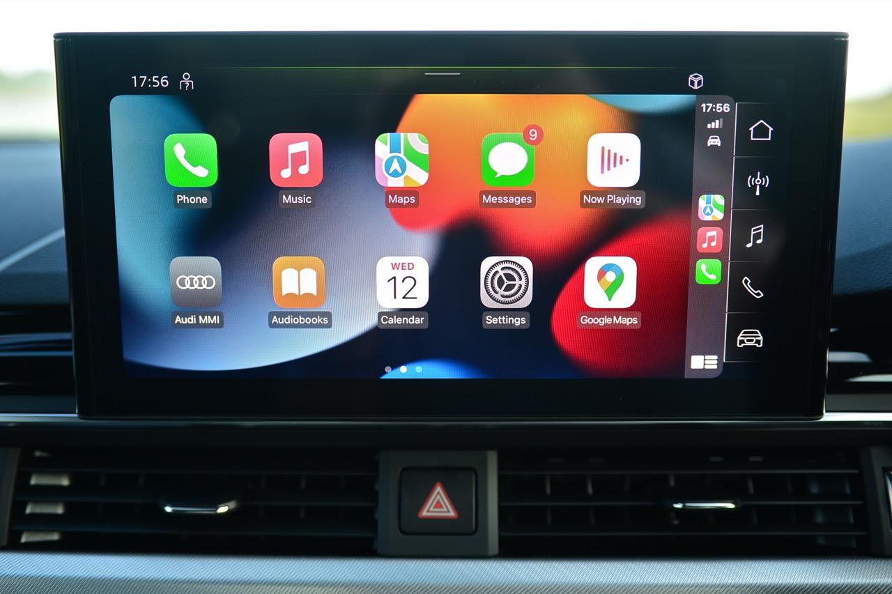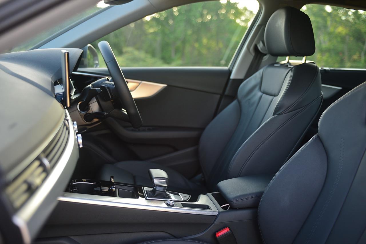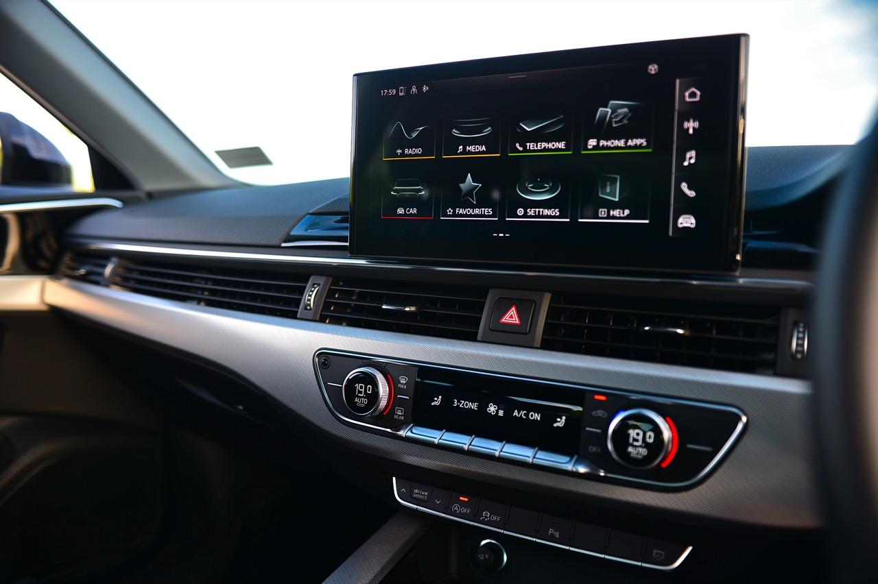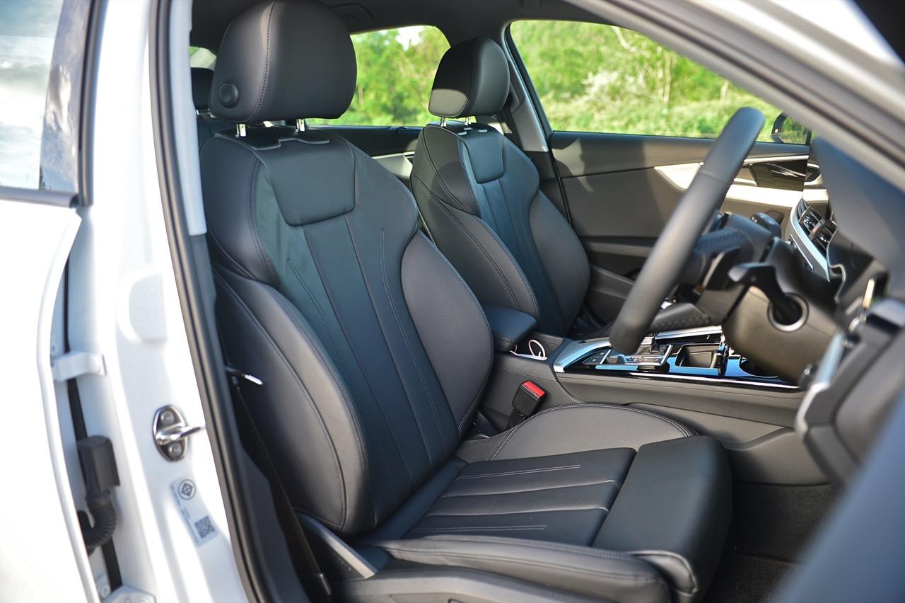 ภายในของ A4 Facelift มีการปรับปรุงเพื่อยกระดับความทันสมัย กราฟิกของระบบสาระบันเทิงที่ได้รับการปรับเปลี่ยนนั้นเหมือนกับพี่น้องสี่ห่วงยุคใหม่ปี 2023 เมนูใช้งานแยกย่อย จัดวางอย่างมีเหตุผล จอภาพมาตรวัด ขนาด 12.3 นิ้ว เวอร์ชันล่าสุด ปรับเปลี่ยนการแสดงผลได้อย่างหลากหลาย คุณภาพของวัสดุที่สัมผัสได้และงานประกอบทั่วทั้งห้องโดยสารนั้นอยู่ในระดับสูงอย่างน่าพึงพอใจเมื่อเทียบกับราคา 2.6 ล้าน A4 รุ่นปรับปรุง Connect กับฟังก์ชั่นออนไลน์ที่นิยมใช้งานกันในยุคนี้ แดชบอร์ดคอนโซลเน้นเหลี่ยมมุมที่ลงตัว ตัดขอบด้วยพลาสติกสีดำเงากับชิ้นงานอัลลอยสีเงิน ชุดควบคุมระบบปรับอากาศที่คุ้นเคย พร้อมระบบแอร์แบบสามโซน (รวมช่องแอร์และการปรับตั้งอุณหภูมิของเบาะผู้โดยสารตอนหลัง S Line iCon Black จัดเบาะไฟฟ้าคู่หน้าแบบสปอร์ต เบาะคนขับมีหน่วยความจำเพื่อเพิ่มความสะดวกในการใช้งาน เบาะหลังแบบสามที่นั่งแต่นั่งสองคนจะสบายตัวมากกว่า พื้นที่เหนือศีรษะและพื้นที่วางขาของเบาะหลังมีพอเพียง สำหรับช่องเชื่อมต่อ USB ให้มาทั้ง Type A และ C