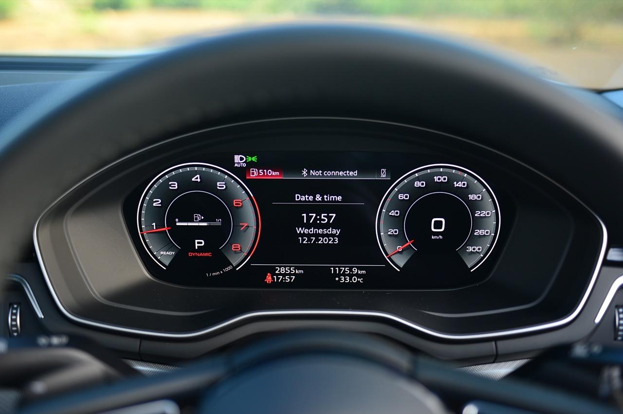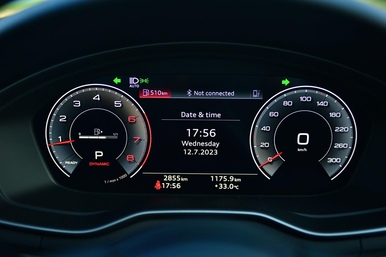 Audi A4 40TFSI S Line iCon Black สีขาว glacier white metallic มีห้องโดยสารที่ค่อนข้างเงียบและเป็นมิตร ความทันสมัยและรูปแบบแนวๆ ของงานตกแต่งภายในที่เป็นเอกเทศแตกต่างจากตราใบพัดหรือตราดาวอย่างชัดเจน เป็นห้องโดยสารที่เน้นความประณีตบรรจงในแบบที่ไม่เคยเกิดขึ้นมาก่อน ยกเว้น Audi R8 เครื่องยนต์ทำงานสุภาพเรียบร้อยเงียบๆ เบาๆ ในรอบต่ำและพร้อมที่จะโวยวายทันทีที่คุณปรับโหมดไปสู่ Dynamic แก่นแท้ของรถคันนี้คือการทำความเร็ว การทรงตัวและความสามารถหลังพวงมาลัยที่ไม่เป็นรองใคร A4 40TFSI ทำอัตราสิ้นเปลืองเชื้อเพลิงในโหมดสูงสุด Dynamic ตลอด 7 วันของการทดสอบที่ 9.4 กิโลเมตรต่อลิตร