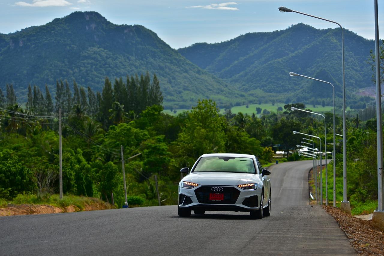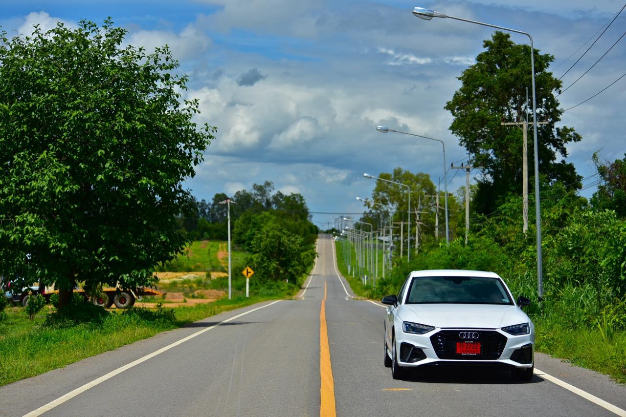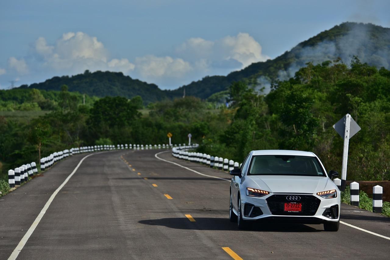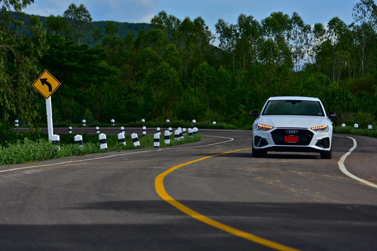 ขับออกทางไกลเพื่อทดสอบประสิทธิภาพ จากกรุงเทพฯ ไปยังหลังเขื่อนปราณบุรี โดยใช้เส้นทาง หนองหญ้าปล้อง ป่าละอู A4 ในโหมด Dynamic เป็น ซีดานที่กระชับรัดกุมและผ่อนคลายแม้จะขับเร็วจี๋ ระบบส่งกำลังพร้อมจะปลดปล่อยอัตราเร่งออกมาให้สัมผัส หากมีถนนที่โล่งมากพอ Dynamic Mode ปรับสภาพการควบคุมให้เปลี่ยนจากรถซีดานบ้านๆ เป็นรถสปอร์ตซีดานที่ตอบสนองได้ในแบบที่ควรจะเป็น ที่ความเร็วสูง A4 Facelift ทรงตัวได้อย่างเฉียบขาด จากช่วงล่างขั้นเทพที่แสดงออกถึงความมาดมั่นและเสถียรภาพของการเข้าโค้ง เป็นรถขับเคลื่อนล้อหน้าที่กลบอาการต่างๆ ของรถขับหน้าจนหมดสิ้น จุดนี้ถือว่าทำออกมาได้ดี