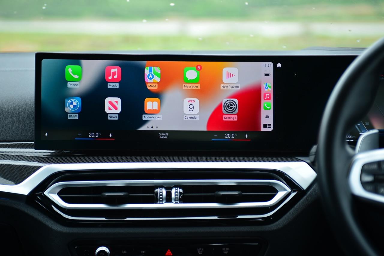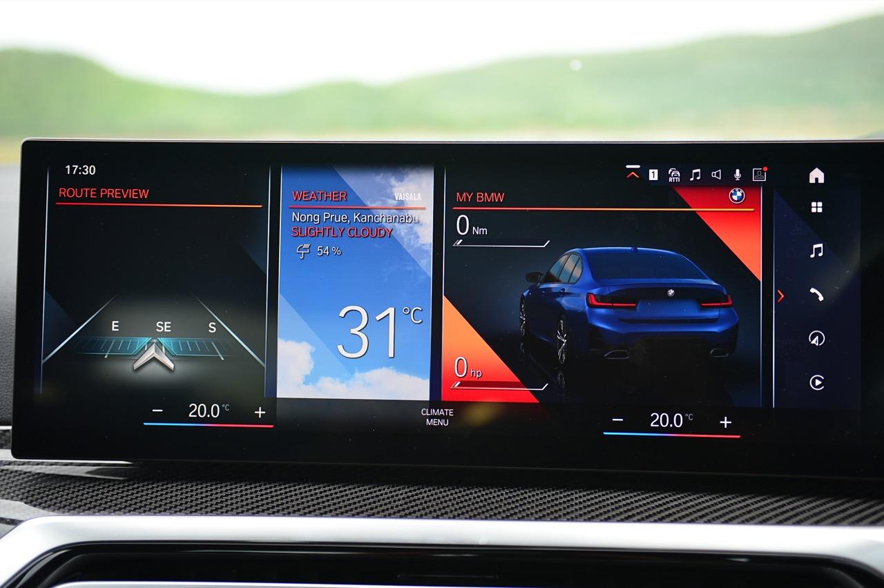 ปุ่มแอร์หายไป กลายเป็นการสั่งงานระบบปรับอากาศผ่านหน้าจอสัมผัส BMW ยังคงรักษาปุ่มควบคุม iDrive ไว้ใน Series-3 พร้อมด้วยปุ่มเมนูหลัก กับ AI ผู้ช่วยสั่งงานด้วยเสียงที่เจ้าของรถต้องเจื้อยแจ้วคำว่า “Hey BMW” อินโฟเทนเมนท์เชื่อมต่อ Apple CarPlay/Android Auto แบบไร้สาย ระบบนำทางด้วยดาวเทียมที่ละเอียดคมชัด พร้อมข้อมูลการจราจรแบบเรียลไทม์ วิทยุดิจิตอล บริการ BMW ConnectedDrive อำนวยความสะดวกในการอัปเดตซอฟต์แวร์แบบ over-the-air (OTA) และที่ดีงามสุดๆ ก็คือ ระบบเสียงพร้อมลำโพงคุณภาพสูง 16 ตำแหน่งรอบห้องโดยสารของ harman/kardon นั้นยังคงสุดยอดเหมือนเดิม เป็นชุดเครื่องเสียงติดรถยนต์ที่มีพลังขับเหลือเฟือ ซัฟวูฟเฟอร์ส่งเสียงดังกระหึ่ม เสียงเบส กลาง แหลม ที่คมชัดหนักแน่น มีให้ครบสำหรับการรับฟังดนตรีขณะเดินทาง