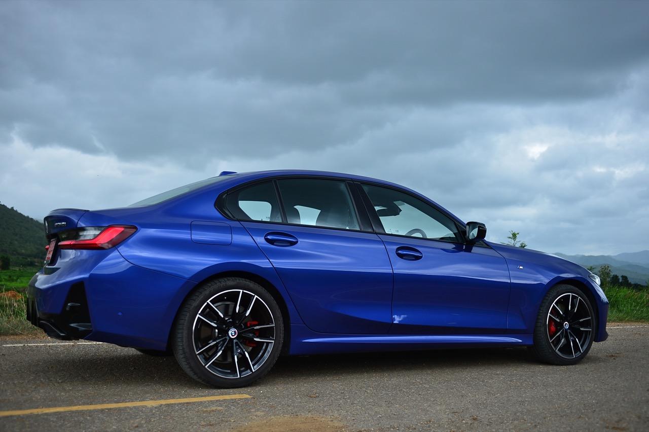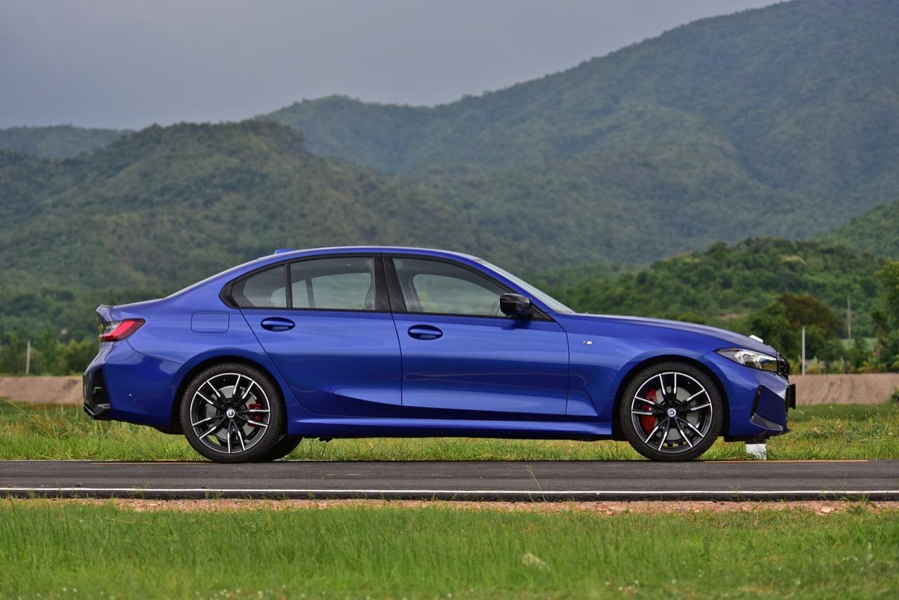 Series- 3 ที่ผ่านการปรับโฉมครั้งล่าสุด ได้กลายเป็นแรงกระตุ้นในวงจรชีวิตที่ยาวนานของซีดานรุ่นขายดีในตำนานที่ BMW เรียกว่า Life Cycle Impulse สำหรับ Series-3 รุ่นปี 2023 ตกแต่งด้วยอุปกรณ์ M Sport ใช้องค์ประกอบของการออกแบบด้านหน้าที่มีการปรับเปลี่ยนใหม่หมด โดยไม่เสียเอกลักษณ์ของ Series-3 G20 กระจังหน้าพลาสติกดำเงา มาพร้อมระบบเปิดปิดอัตโนมัติ โดยเฉพาะช่องรับอากาศตรงกลางด้านล่าง ออกแบบให้มีขนาดที่ใหญ่ขึ้น ท่อระบายความร้อนของเบรกด้านนอกถูกล้อมรอบด้วยชิ้นส่วนแอร์โรไดนามิก กันชนหลังมีแผงดิฟฟิวเซอร์ที่ดูดิบๆ ซึ่งไม่สามารถใช้งานได้จริง แต่ทำให้กันชนกับส่วนท้ายดูดุดันมากขึ้น ล้อ M ขอบ 19 นิ้ว แบบสิบก้านคู่ ห่อรัดด้วยยาง P Zero แบบต่างไซส์หน้าเล็กหลังใหญ่ เบรก M คาร์ลิปเปอร์สีแดงแบบ 4 พอต เบรกหลังแบบซิงเกิ้ลพอต ที่สะดุดตาในบริเวณส่วนท้ายก็คือ ครีบสีดำเล็กๆ ที่ติดอยู่กับขอบของฝาท้ายเพื่อความสวยงามอย่างเดียว โดยไม่มีผลต่อระบบอากาศพลศาสตร์ของรถ