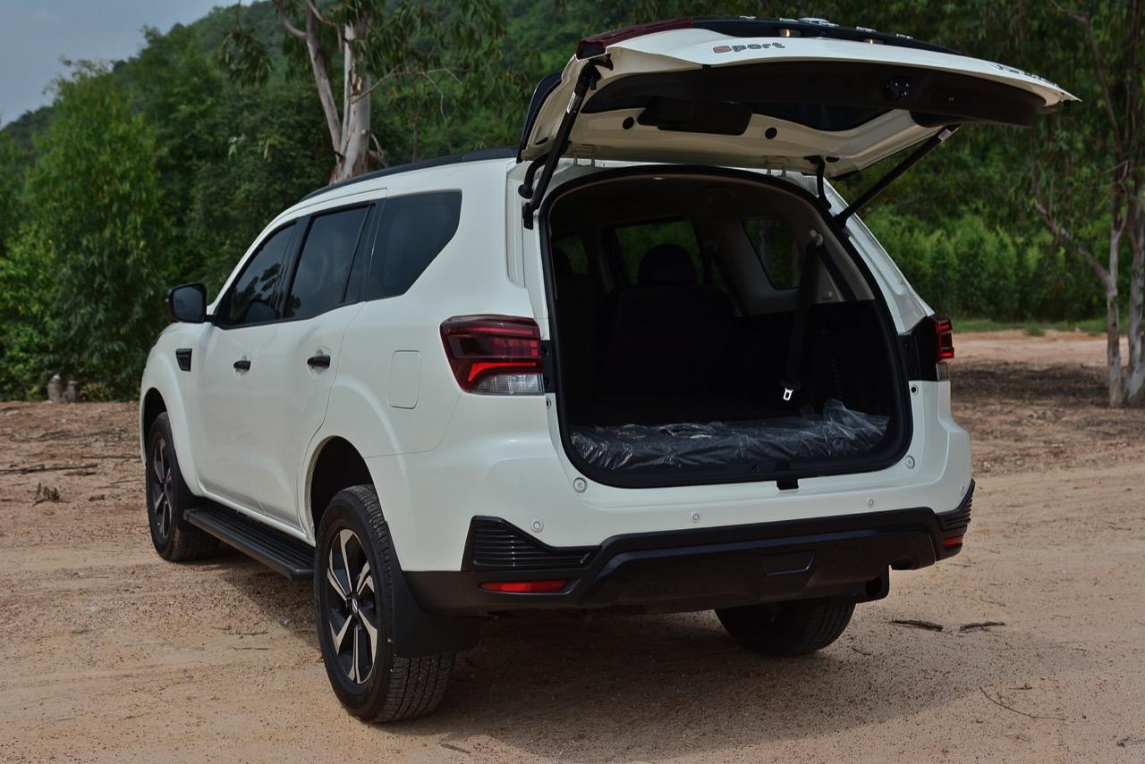 มิติตัวถัง ยาว 4,890 มิลลิเมตร กว้าง 1,865 มิลลิเมตร สูง 1,865 มิลลิเมตร ความยาวฐานล้อ 2,850 มิลลิเมตร ระยะความสูงใต้ท้องรถ 225 มิลลิเมตร รัศมีวงเลี้ยวแคบสุด 5.7 เมตร บั้นท้ายสไตล์รถอเนกประสงค์ PPV มีชิ้นส่วนที่ถูกออกแบบใหม่หมดเพื่อความลงตัว ไล่จากสปอยเลอร์บนหลังคา ไปจนถึงชายกันชนด้านล่าง ฝาท้ายเพิ่มความหรูโดยใช้วัสดุโครเมียม ชิ้นส่วนสีเงินเข้ามาตกแต่ง ไฟท้ายลดความสูงลงเล็กน้อย เพิ่มความกว้างมากขึ้น เป็น ไฟ LED แบบ Light Guide เส้นคู่ ไฟเบรกแบบ LED ล้ออัลลอยลายใหม่ขนาด 18 นิ้ว ออกแบบให้สอดคล้องกับดีไซน์ภายนอก ล้อใช้สีทูโทนแบบปัดเงา ยาง Bridgestone Dueler H/T ไซส์ 255/60R18 108H