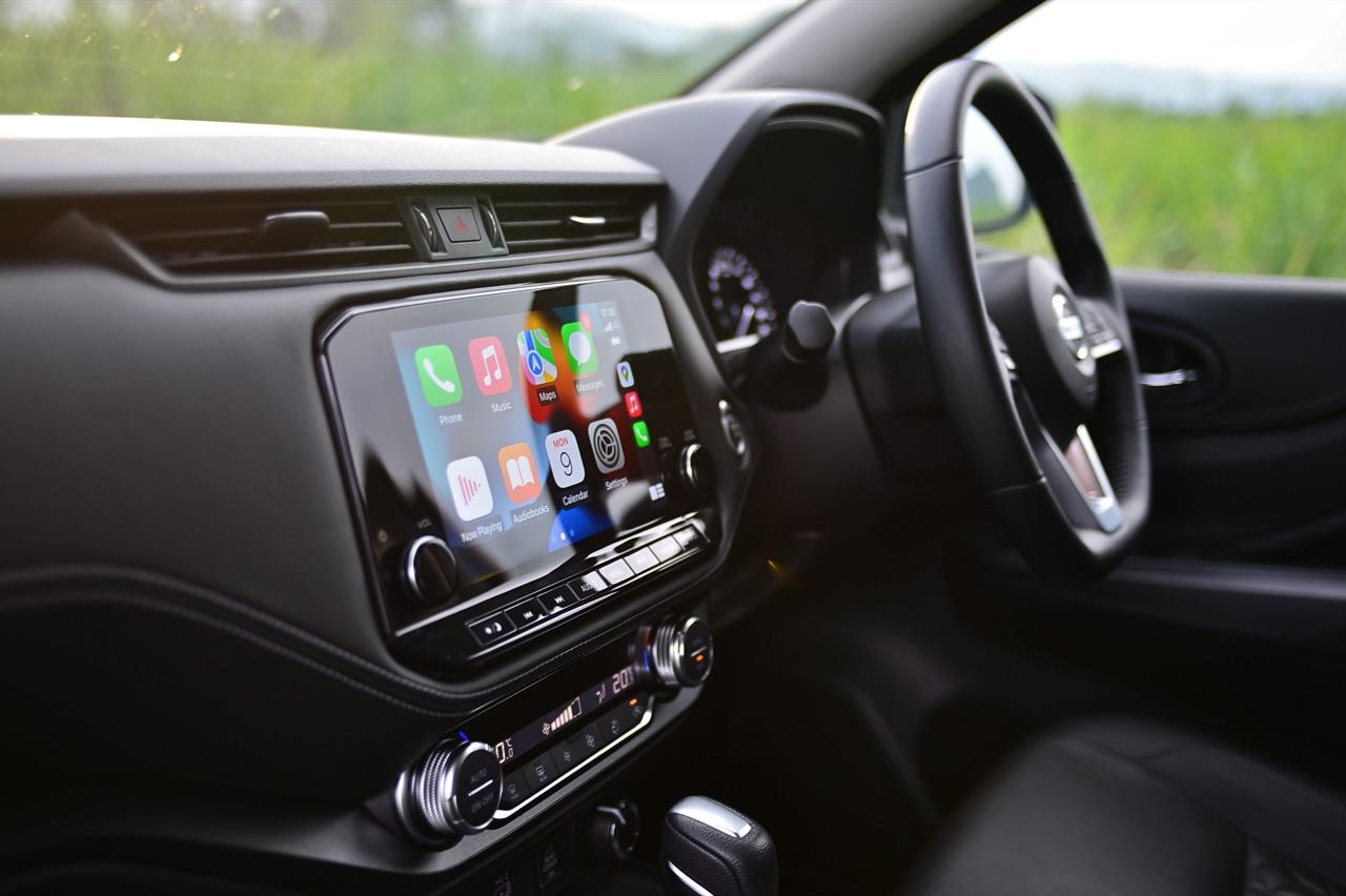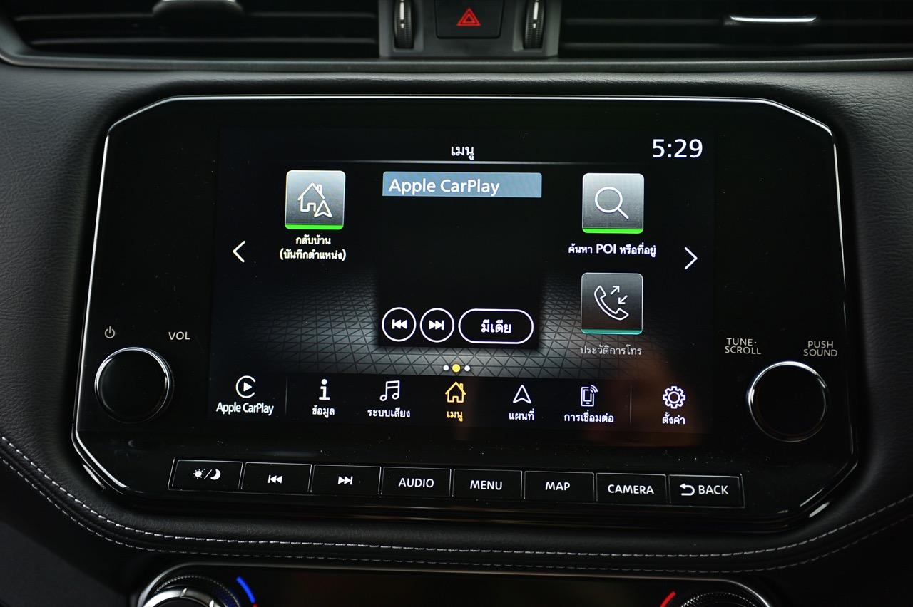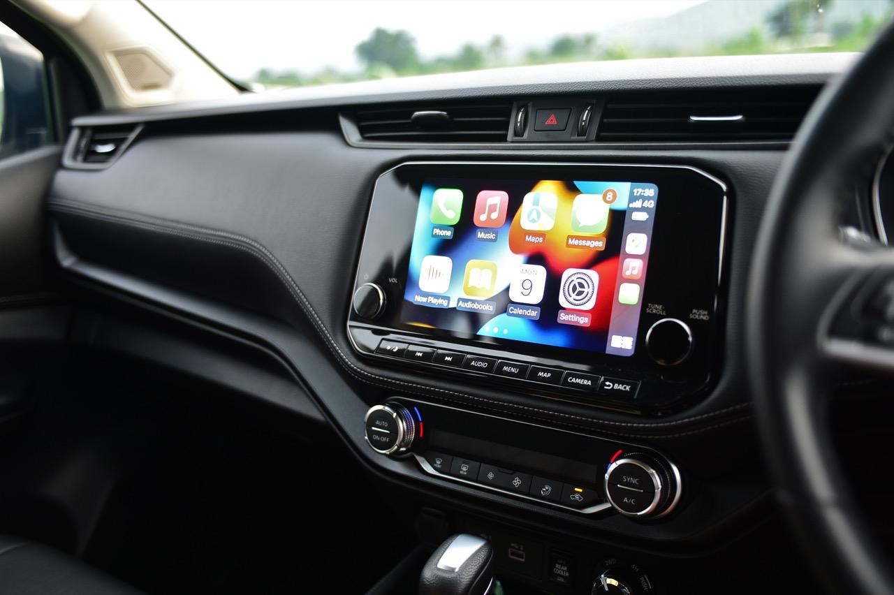 การเชื่อมต่อ Apple CarPlay แบบไร้สาย (Wireless Apple CarPlay) เพิ่มความสะดวกอย่างปลอดภัยตลอดการขับขี่ สามารถใช้งาน Apple CarPlay ผ่านบลูทูธได้โดยไม่จำเป็นต้องต่อสายชาร์จอีกต่อไป ให้อิสระสำหรับผู้โดยสาร ไม่ว่าจะนั่งอยู่ตำแหน่งใดก็ใช้งานได้โดยไม่ต้องวางโทรศัพท์ไว้ด้านหน้า ใช้งานแอปพลิเคชันและเข้าถึงความบันเทิงต่างๆ ในโทรศัพท์ผ่านหน้าจอสัมผัสขนาด 9 นิ้ว NissanConnect เชื่อมต่อสมาร์ทโฟนกับ Apple CarPlay และ Android Auto รองรับการใช้แอปพลิเคชันในโทรศัพท์ ผ่านหน้าจอสัมผัสระบบเครื่องเสียง Display Audio ใหม่ขนาด 9 นิ้ว ลดแสงสะท้อนของหน้าจอ หน้าจอแบบใหม่ความละเอียดสูงกว่าเดิม ระดับ WXGA (1024x768) ระบบนำทาง (Navigation System) และระบบสั่งงานด้วยเสียงอัจฉริยะ (Voice Recognition)