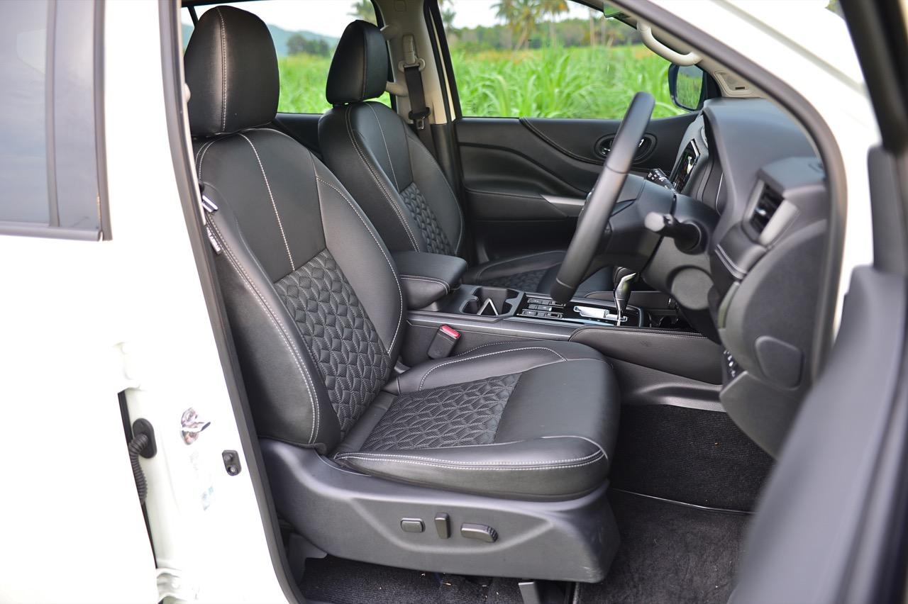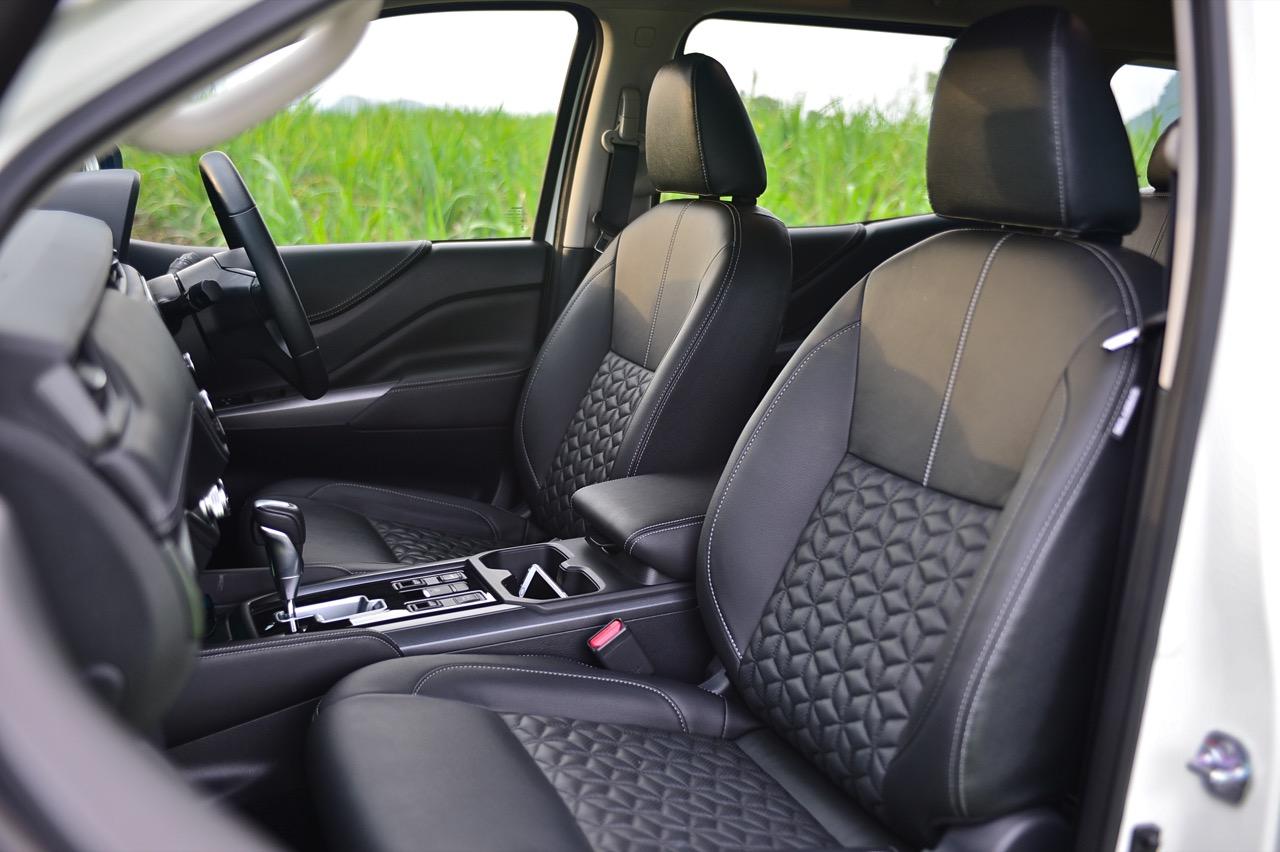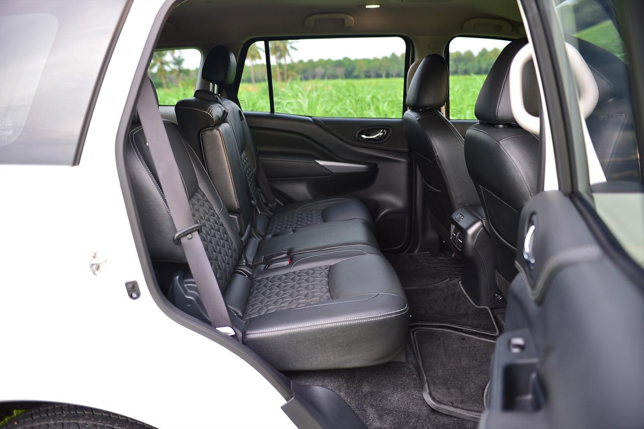 พวงมาลัยช่วงล่างที่ปรับมาให้ดีกว่าเดิมทำให้ Dynamic ของรถดีขึ้น บวกกับความอเนกประสงค์ของห้องโดยสารแบบ 7 ที่นั่ง ที่ตกแต่งมาให้ใหม่ทั้งหมด ทำให้ Terra ใหม่นั้นดูดีขึ้น เป็นความตั้งใจของคนใน Nissan ที่ต้องการเอาชนะรถคู่แข่ง ด้วยอุปกรณ์ที่เหนือกว่า ในราคาที่ถูกกว่า รถคันทดสอบสีแดง และมีภายในที่ใช้โทนสีดำสลับสีแดง เพื่อเพิ่มความหรูหราน่าใช้งาน เบาะคนขับปรับไฟฟ้า ส่วนเบาะคนนั่ง ยังใช้เบาะปรับมือเหมือนเดิม ถ้าเป็นไฟฟ้าคู่หน้ามาจากโรงงานก็จะดีกว่านี้มากใน Terra รุ่นท็อปสุด ซึ่งเบาะหน้านั้น ควรจะเป็นไฟฟ้าทั้งหมดได้แล้ว เบาะตัดเย็บอย่างสวยงาม เดินตะเข็บด้วยด้ายสีแดง แดชบอร์ดคอนโซลแบบใหม่ สีทูโทน หุ้มไวนิลสีแดงบริเวณกึ่งกลางของคอนโซล ส่วนหน้าจอมอนิเตอร์ขนาด 11 นิ้ว มีกรอบพลาสติกสีดำเงาขนาดใหญ่หุ้มจอภาพเพื่อทำให้ดูเหมือนจอนั้นมีขนาดที่ใหญ่ผิดปกติ ชุดปรับอุณหภูมิดิจิทัลแบบแยกโซนทำออกมาดูหรูหราใช้ได้ ส่วนซุ้มคันเกียร์ก็อุดมไปด้วยพลาสติกเกรดกลาง ที่มีทั้งสีเงิน และสีดำเงา หัวเกียร์พลาสติกหุ้มไวนิลจับถนัดมือใช้ได้ เมื่อผลักคันเกียร์ไปทางซ้าย เกียร์ออโต้ 7 สปีด ก็จะเข้าสู่โหมดเกียร์แมนนวล โดยใช้การโยกคันเกียร์ ขึ้น-ลง เพื่อ ลด หรือเพิ่ม อัตราทดด้วยตัวคนขับเอง Terra ใหม่ ยังมีปุ่มเบรกมือไฟฟ้า ปุ่มใช้งานเมื่อขับขึ้น-ลง ทางลาดชัน ในระบบช่วยออกตัวบนทางลาดชัน Hill Start Assist (HSA) และระบบควบคุมความเร็วขณะลงทางลาดชัน Hill Descent Control (HDC) ปุ่มสองตำแหน่งที่อยู่บนสุดก็คือ ปุ่มพับเบาะแบบ one touch ของเบาะหลัง มีเอาไว้กดสั่งพับเบาะแถวสองทั้งสองฝั่ง เผื่อคนแถว 3 ลงจากรถได้ง่ายขึ้น ตอนแรกเห็นปุ่มนี้ก็งงและไม่กล้ากดอยู่เหมือนกัน เพราะไม่แน่ใจว่ามันคือปุ่มอะไร ส่วนปุ่มซ้ายมือด้านล่าง นั่นก็คือปุ่ม diff lock สั่งล็อกล้อหลังเมื่อลุยทางโหดนั่นเอง