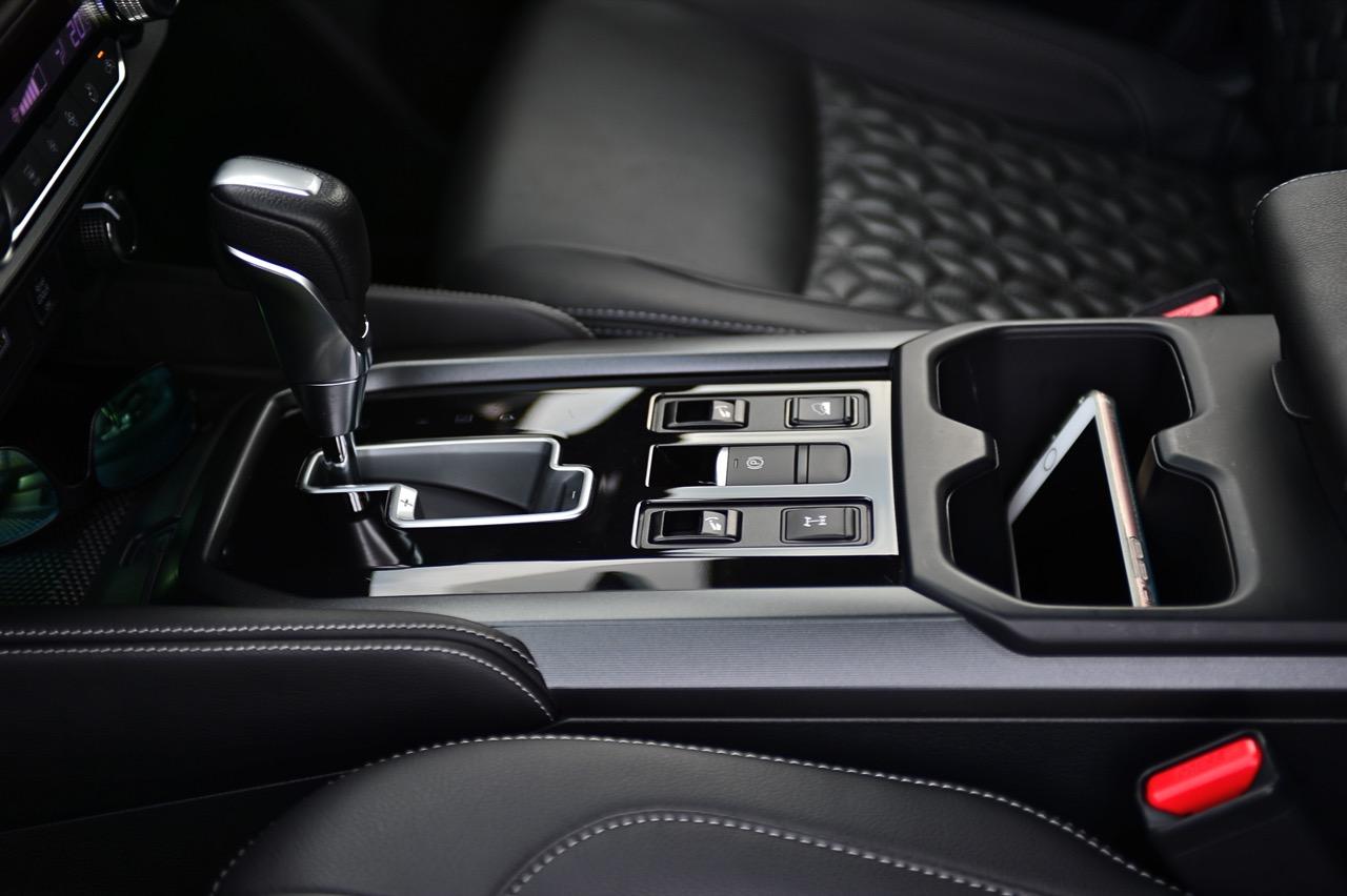 คอนโซลกลางบริเวณซุ้มเกียร์ดีไซน์ใหม่ และเปลี่ยนมาใช้เบรกมือไฟฟ้า (เฉพาะรุ่น VL 2WD และ VL 4WD) เพิ่มพื้นที่ใช้สอยบริเวณคอนโซลกลาง รวมถึงสามารถเพิ่มพื้นที่ที่วางแขนพร้อมช่องเก็บของที่มีขนาดใหญ่ขึ้น ฝาประตูท้ายเปิด-ปิด ด้วยระบบไฟฟ้า พร้อมเซนเซอร์ด้านใต้กันชนหลัง (Auto Lift Gate)* เพื่อความสะดวกในการเปิด-ปิด เพียงแค่ยื่นเท้าเข้าหาบริเวณกึ่งกลางของกันชน โดยไม่ต้องสัมผัสสวิตช์ที่ประตู และมีระบบป้องกันการหนีบเพื่อความปลอดภัยของผู้ใช้งาน