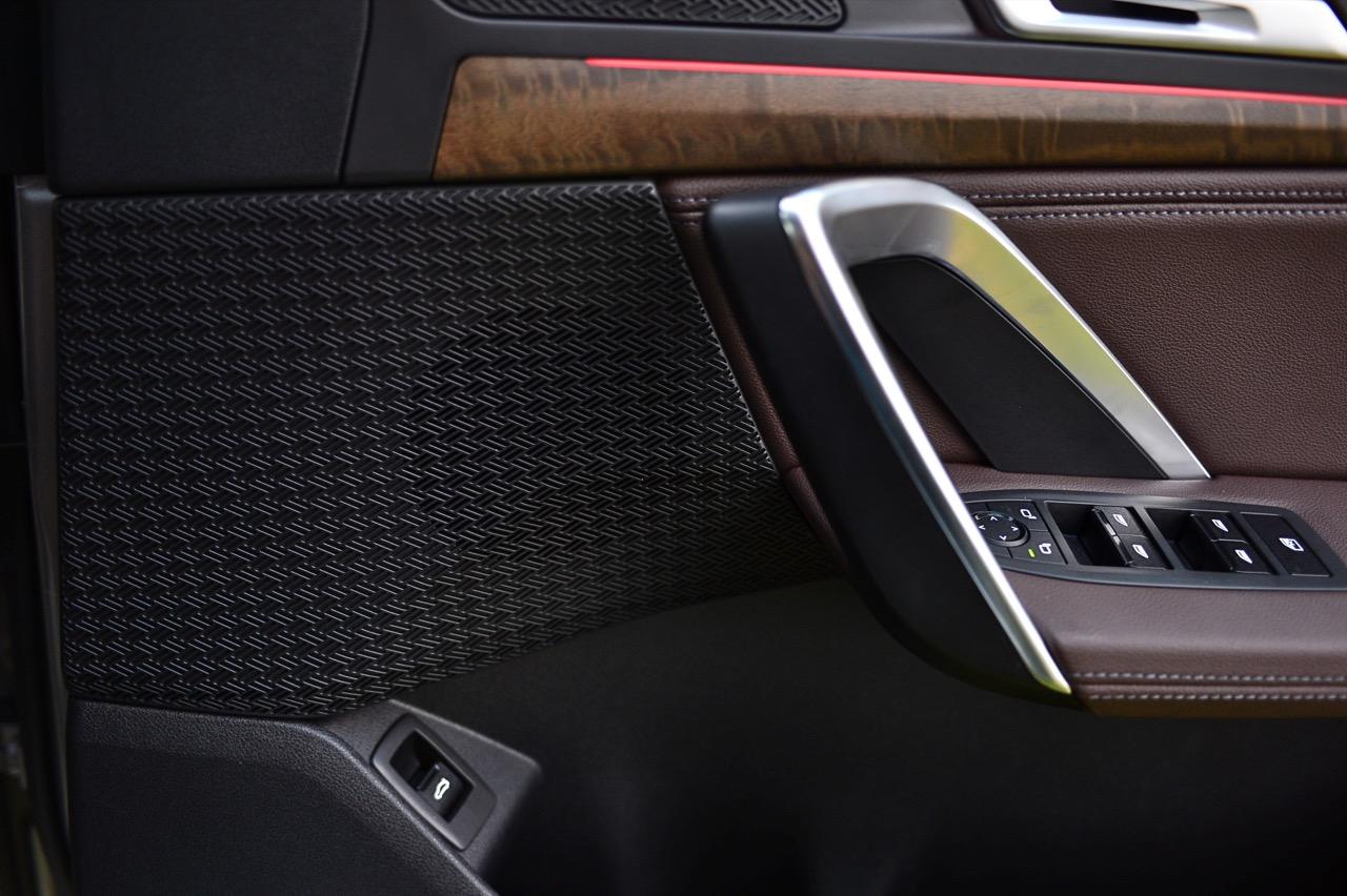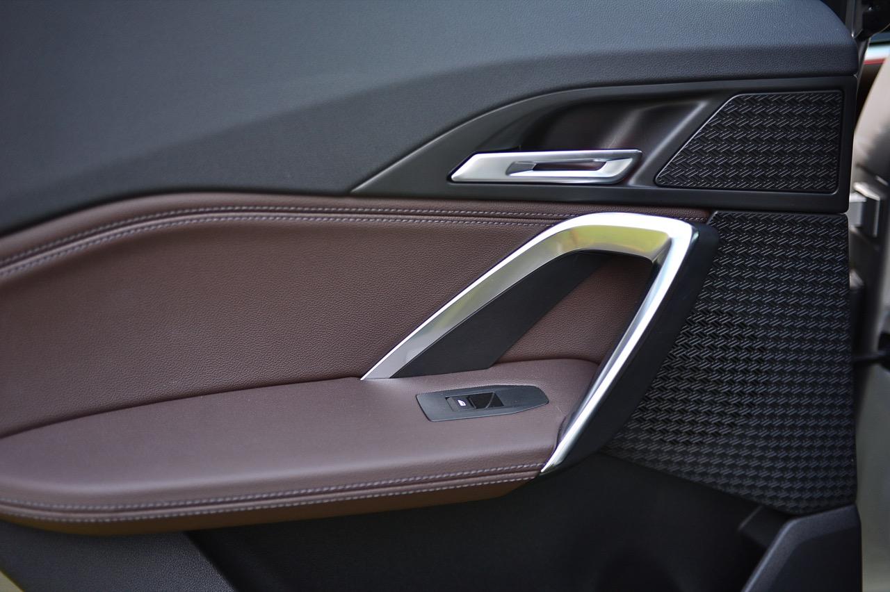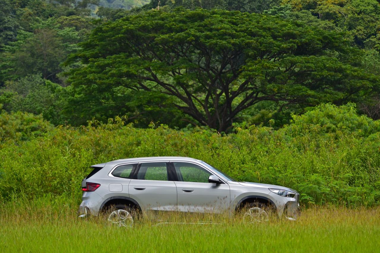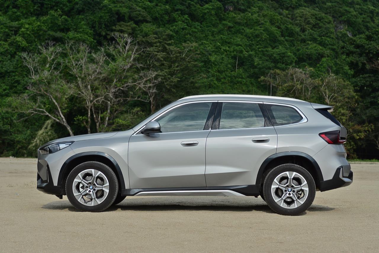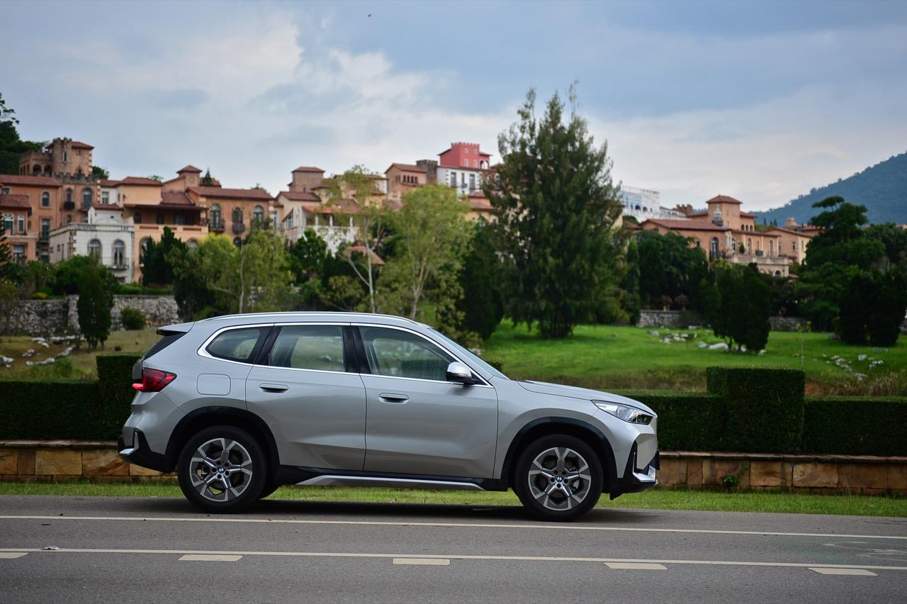 ตัวถังด้านข้างมีเส้นสายที่ค่อนข้างสมบูรณ์แบบ เชื่อมโยงส่วนหน้าของรถให้กลมกลืนกับแนวด้านข้าง ซุ้มล้อพลาสติกกันกระแทกสีดำเงา เสาหน้ามีองศาความลาดเอียงที่ลงตัว ผืนหลังคาค่อยๆ ลดระดับลงไปยังส่วนท้าย แรคหลังคาสีเงิน กรอบตกแต่งกระจกบานประตูสีเงิน กระจกมองข้างมีไฟเลี้ยว LED ในตัว มือจับที่เปิดประตูแบบใหม่ แบนราบไปกับตัวถัง เส้นสายตัวถังด้านข้าง ลากจากแก้มข้าง ผ่านบานประตูไปจนถึงขอบของไฟท้าย ชายล่างของบานประตูมีเส้นที่เอียงขึ้นไปจนถึงบานประตูด้านหลัง พลาสติกสีเงินสลับสีเทาตกแต่งที่ชายล่างของบานประตูทั้งสอง ล้ออัลลอยลายสวย ขอบ 18 นิ้ว ห่อรัดด้วยยาง Continental Ecocontact 6 ไซส์ 225/55 R 18 ในทางวิศวกรรม X1 ใหม่ มีวิวัฒนาการของแพลตฟอร์มเดียวกันกับรถ X1 โมเดลที่แล้ว ซึ่งใช้งานร่วมกันใน BMW และ Minis แบบเครื่องยนต์ขวาง