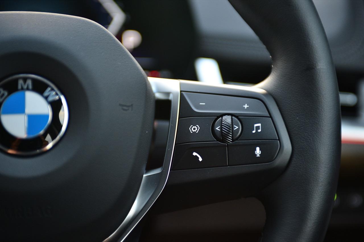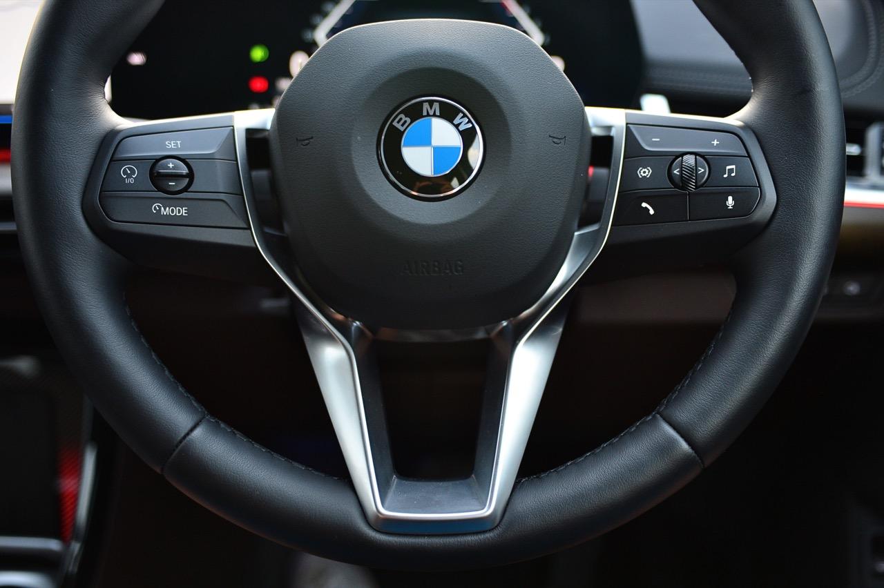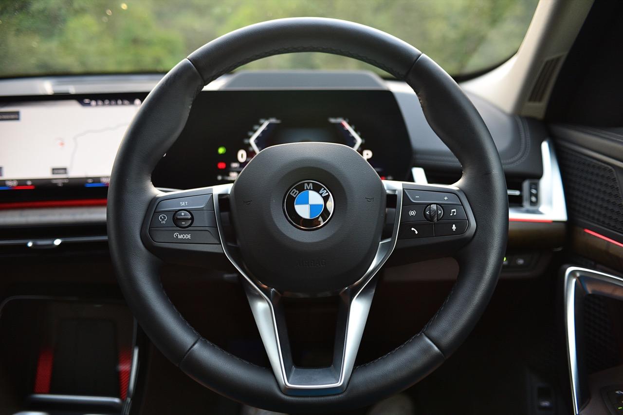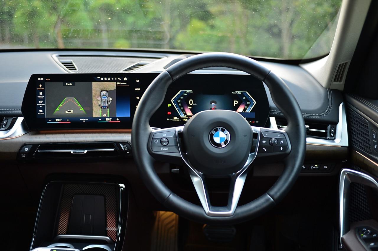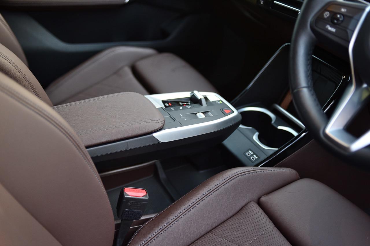 พวงมาลัยหุ้มหนังแท้แบบสามก้าน เป็นพวงมาลัยแบบใหม่ที่เริ่มใช้ใน X1 U11 พวงมาลัยปรับได้สี่ทิศทาง น่าเสียดายที่ไม่มีแป้นเปลี่ยนเกียร์ Paddle Shift เหมือนรุ่นท็อป M Sport จุดที่แปลกตาและถือเป็นของใหม่ใน X1 U11 ก็คือ ที่วางแขนแบบลอยตัวที่ดูดีและใช้งานได้จริง การออกแบบภายในใหม่หมดทำให้ X1 U11 ไม่มีอุโมงค์ตรงกลาง เพื่อเพิ่มพื้นที่จัดเก็บในคอนโซลกลางให้มากกว่าเดิม แผงซุ้มเกียร์เปลี่ยนไปเป็นคันเกียร์อันเล็กๆ เหมือนกับ Series-3 LCI มันดูไม่ค่อยจะเข้ากับรูปแบบของรถซึ่งมีคันเกียร์มานานแสนนาน การเปลี่ยนไปเป็นสวิตช์คันเกียร์สั้นกุดนั้นง่ายต่อการใช้งาน แต่ไม่สวยงามเหมือนอย่างที่เคยทำออกมาขาย ปุ่มและสวิตช์ปรับตั้งต่างๆ บริเวณซุ้มคันเกียร์ ประกอบไปด้วย ปุ่มปรับโหมดการขับเคลื่อน ปุ่ม Auto Brake Hold ปุ่มควบคุมระบบจอดรถอัตโนมัติ สวิตช์ไฟฉุกเฉิน และปุ่มหมุนเพื่อเพิ่มหรือลดเสียงของลำโพง