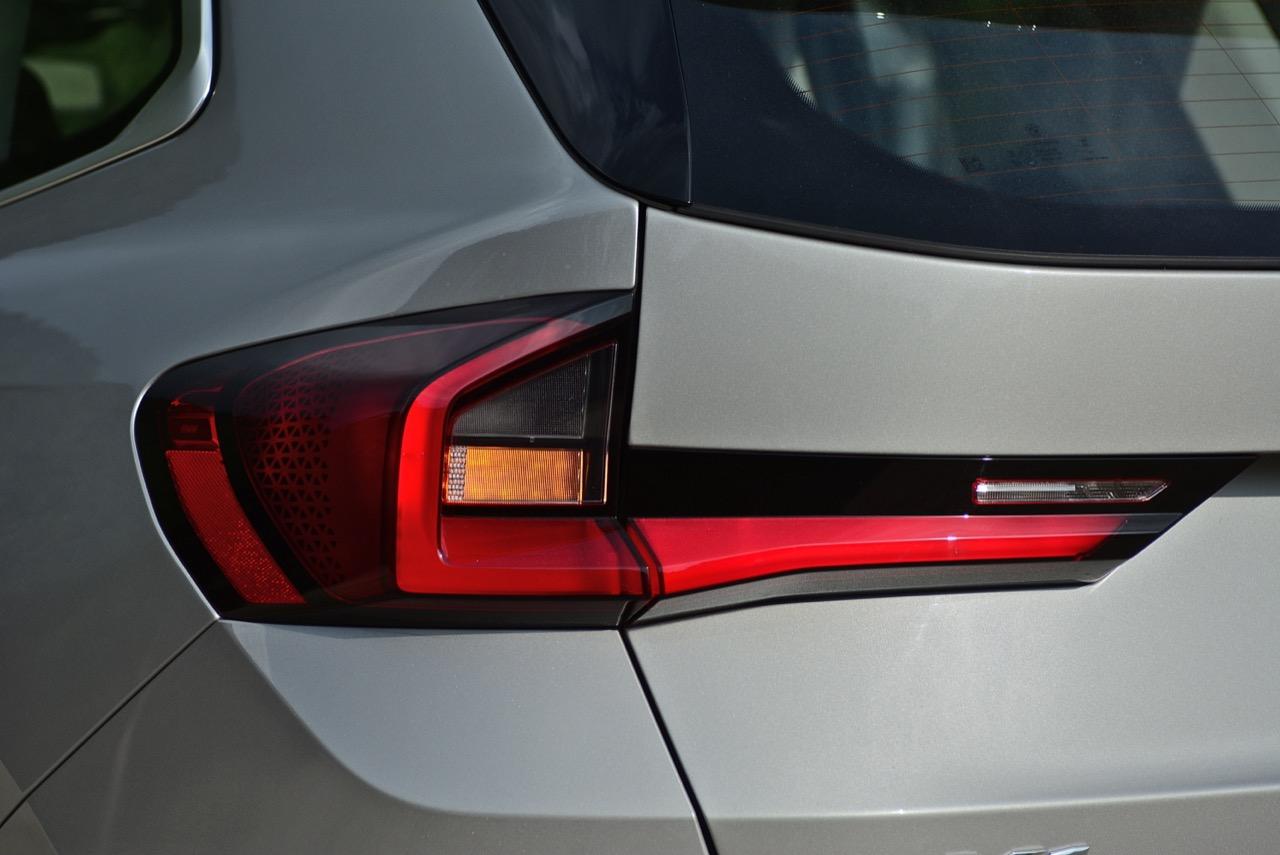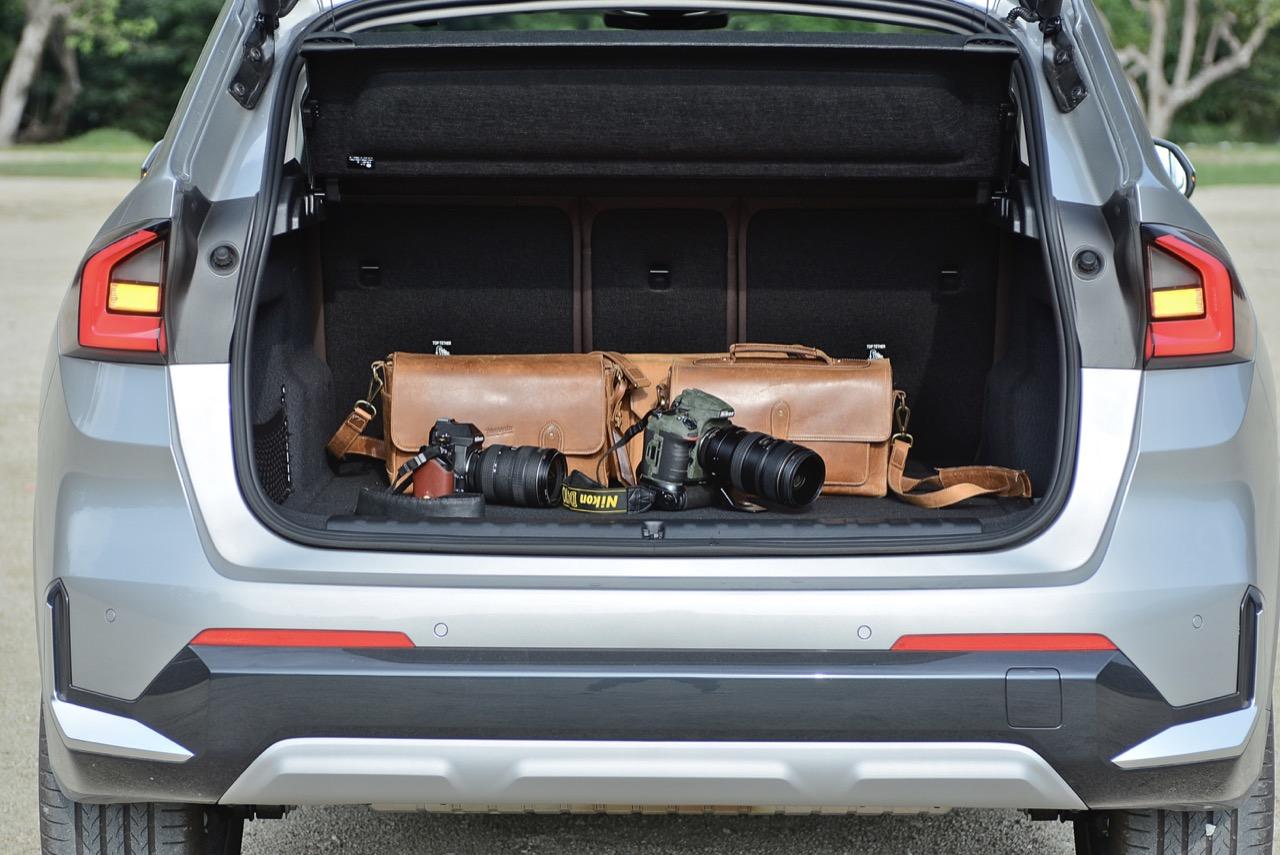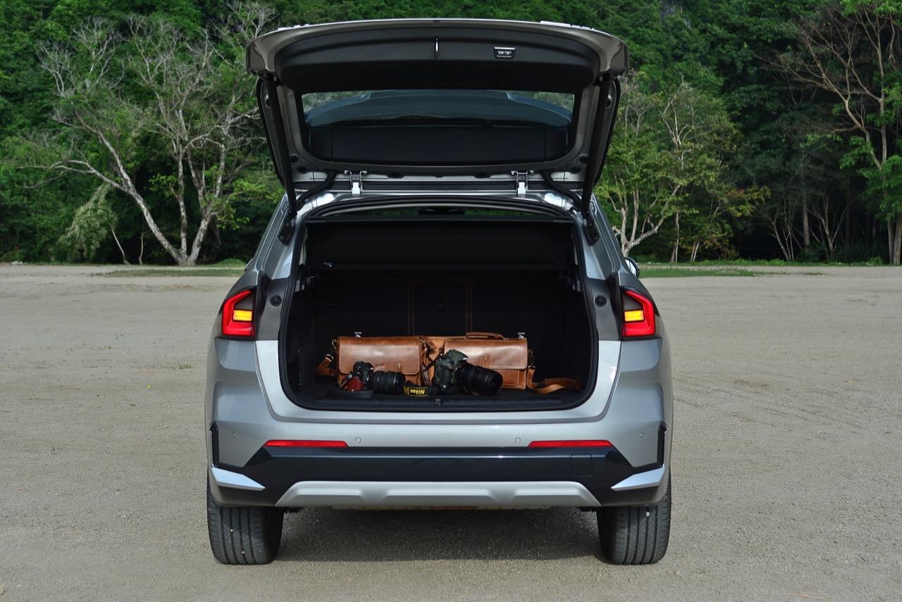 บั้นท้ายออกแบบได้อย่างเฉียบคมและทำให้รถดูสปอร์ตมากยิ่งขึ้นด้วยไฟท้าย LED แบบใหม่ กันชนหลังเล่นเหลี่ยมมุม ตกแต่งขอบของกันชนหลังด้วยพลาสติกโครเมียม พลาสติกสะท้อนแสงมัลติรีเฟคเตอร์ เซนเซอร์ท้ายสี่จุด ฝาท้ายไฟฟ้า ไฟเบรกดวงที่สาม ติดตั้งอยู่บนสปอยเลอร์ครอบกรอบกระจกบานฝาท้าย เสาอากาศครีบฉลามหายไป แทนที่ด้วยเสาอากาศแบบใหม่รูปทรงคล้ายพีระมิด กระจกบานฝาท้ายมาพร้อมกับใบปัดน้ำฝนด้านหลัง มิติตัวถังของ BMW X1 X Line SDrive 20i มีขนาดความยาว 4,500 มิลลิเมตร กว้าง 1,845 มิลลิเมตร สูง 1,642 มิลลิเมตร ความยาวฐานล้อ 2,692 มิลลิเมตร ระยะโอเวอร์แฮงค์หน้า 875 มิลลิเมตร ระยะโอเวอร์แฮงค์หลัง 933 มิลลิเมตร ความกว้างฐานล้อหน้า 1,592 มิลลิเมตร ความกว้างฐานล้อหลัง 1,593 มิลลิเมตร พื้นที่เก็บสัมภาระส่วนท้ายเมื่อไม่พับเบาะ 540 ลิตร และเพิ่มเป็น 1,600 ลิตร เมื่อพับเบาะหลัง น้ำหนักรถ 1,625 กิโลกรัม
